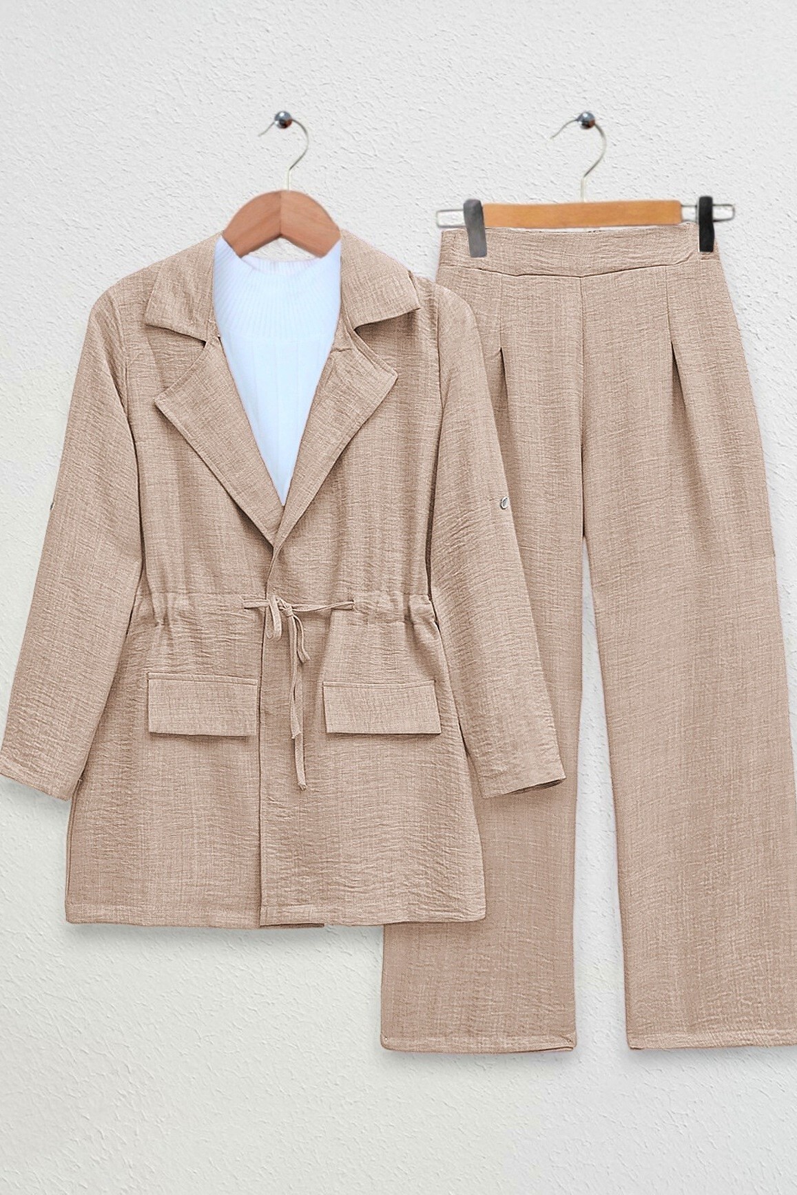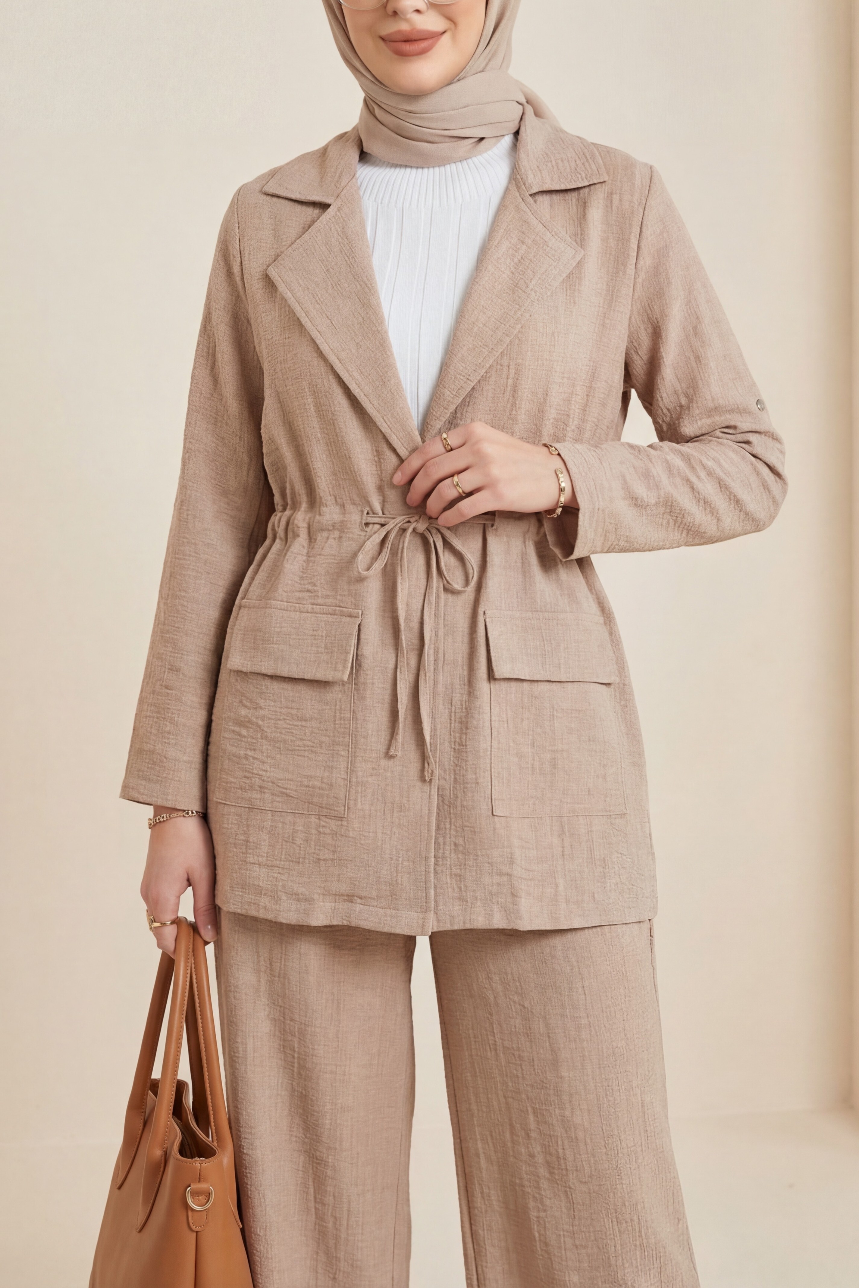 بدلة الكتان مع سترة بتفاصيل جسر النفق والجيوب المغطاة تقدم مظهرًا عصريًا وأنيقًا. تضيف تفاصيل جسر النفق والجيوب المغطاة في السترة لمسة من الرقي على التصميم، بينما يوفر قماش الكتان خفة وراحة، مما يجعله خيارًا مثاليًا. يوفر الراحة في الأجواء الحارة ويبرز أناقتك في نفس الوقت. مناسب للاستخدام اليومي والمناسبات الخاصة، يتيح لك هذا الزي الحصول على مظهر أنيق ومريح في آن واحد. اكتشف الأناقة العصرية مع بدلة الكتان مع سترة بتفاصيل جسر النفق والجيوب المغطاة!