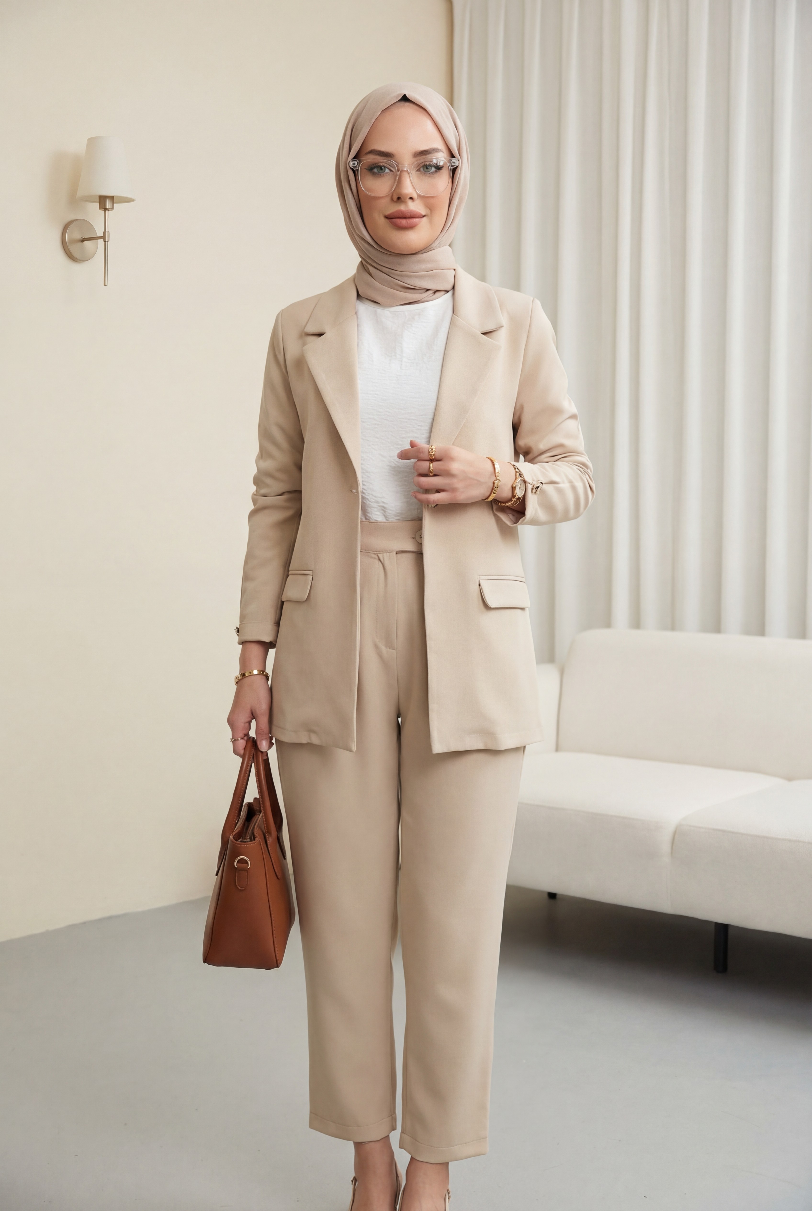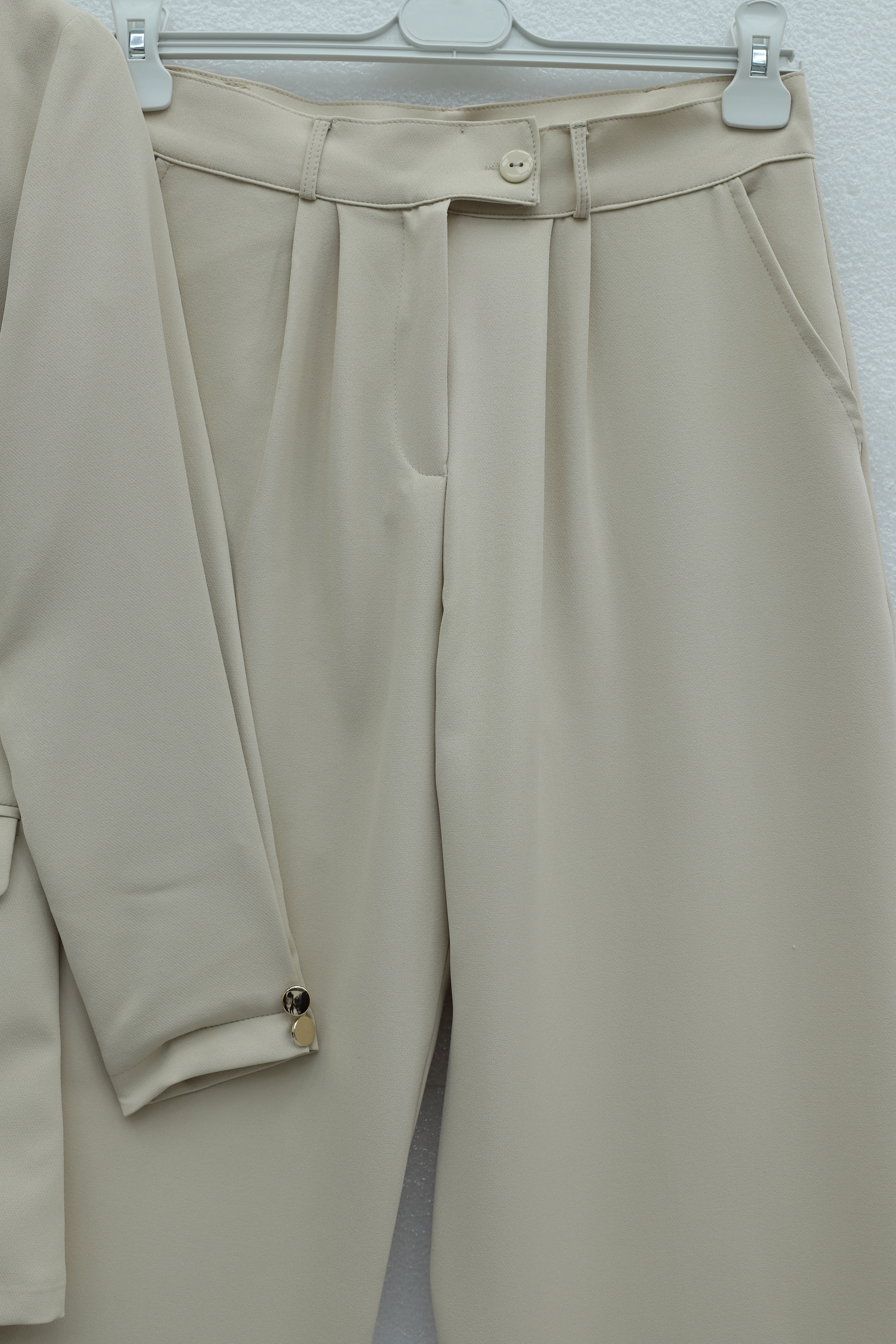 طقم جاكيت وبنطلون جينز بتفاصيل حجرية -كحلي