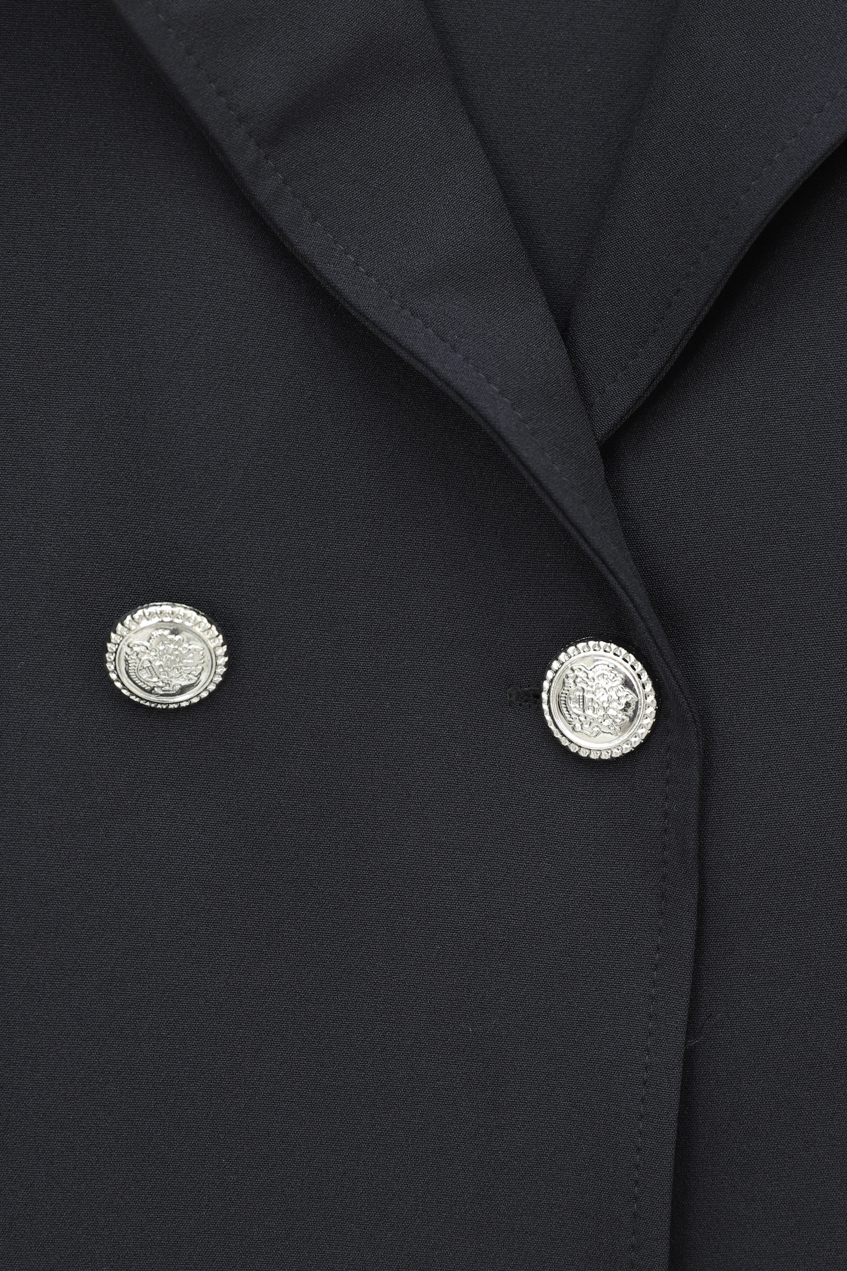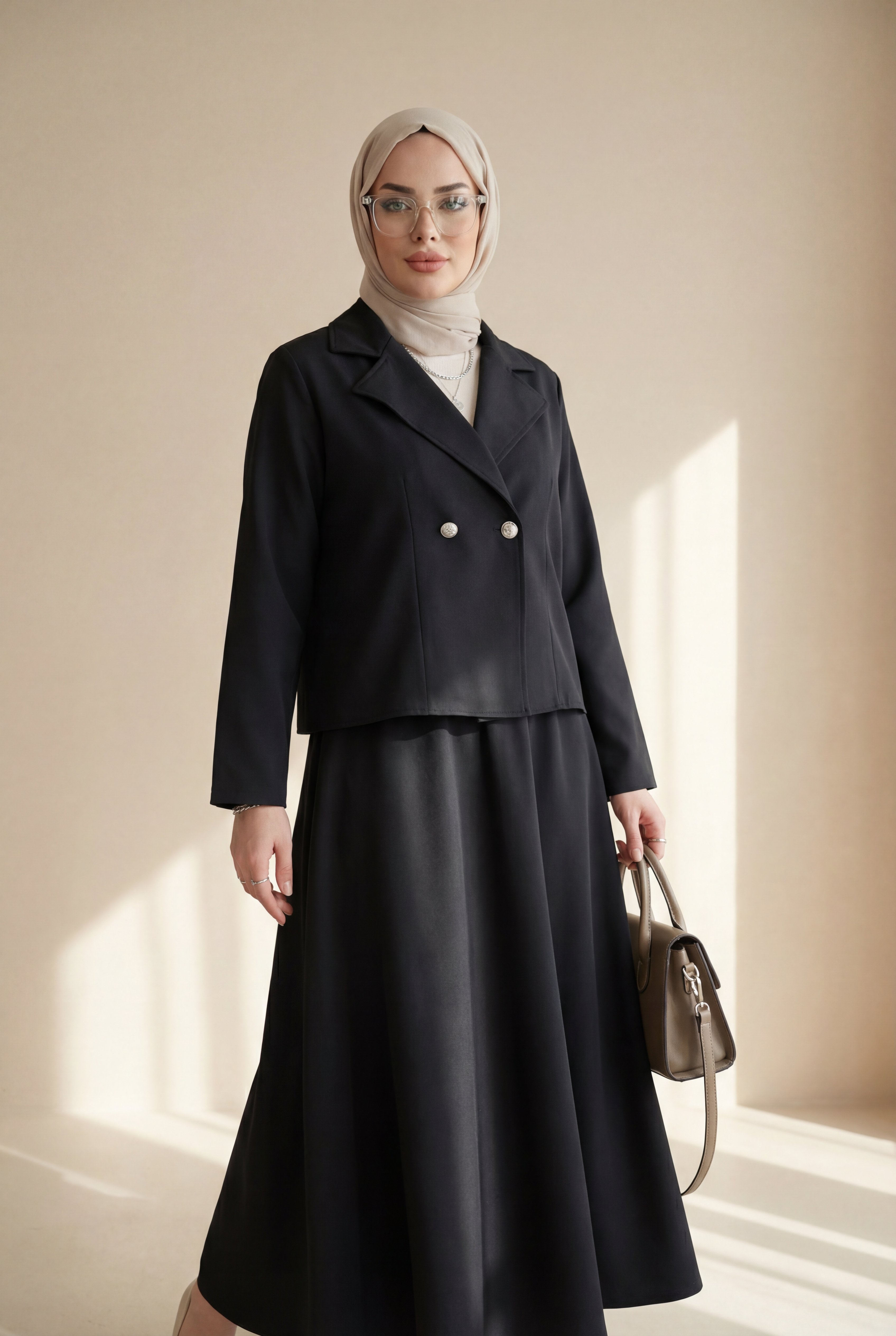 طقم سترة وتنورة بأزرار أمامية مزدوجة وصفين من الأزرار (كريب مزدوج). -أسود