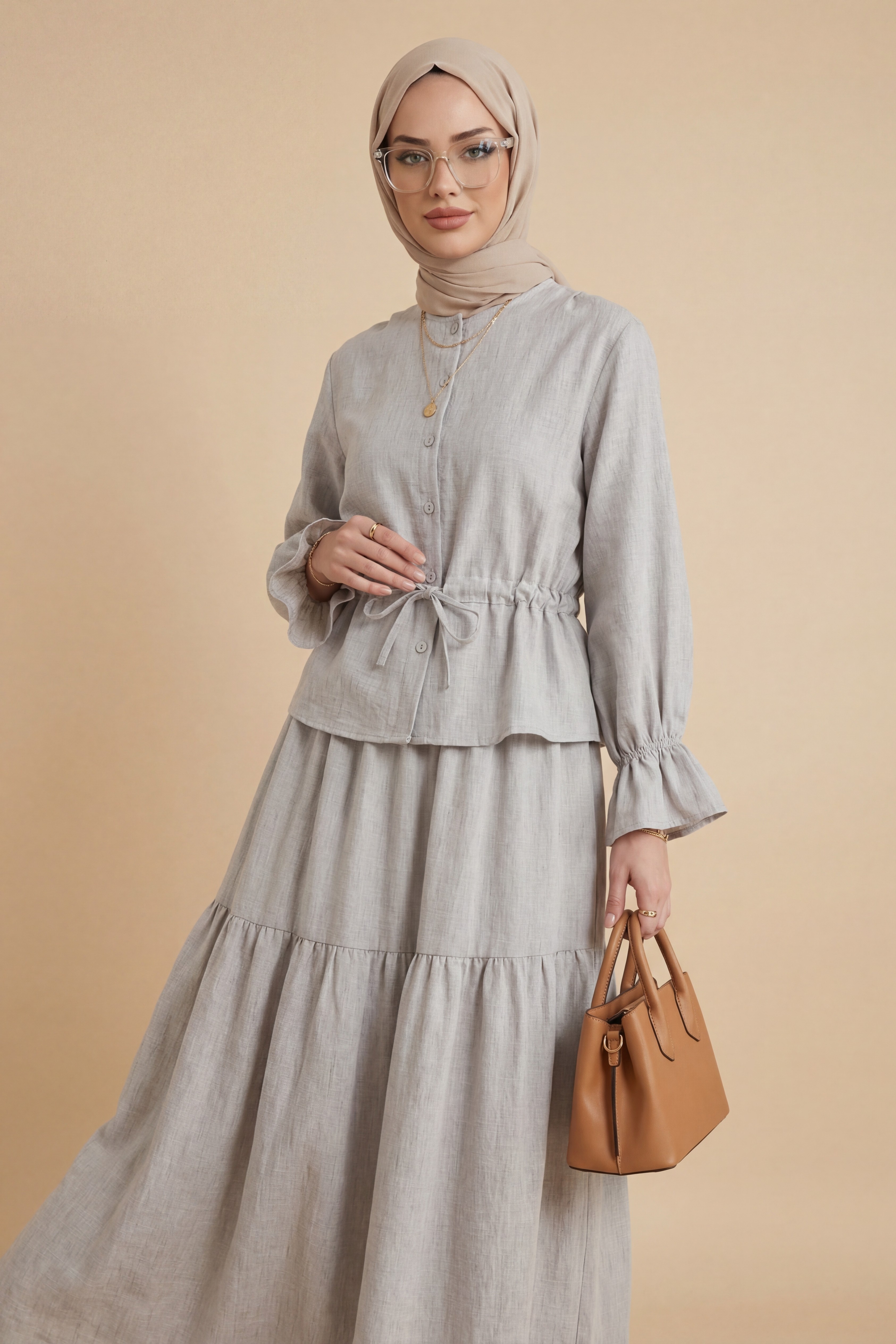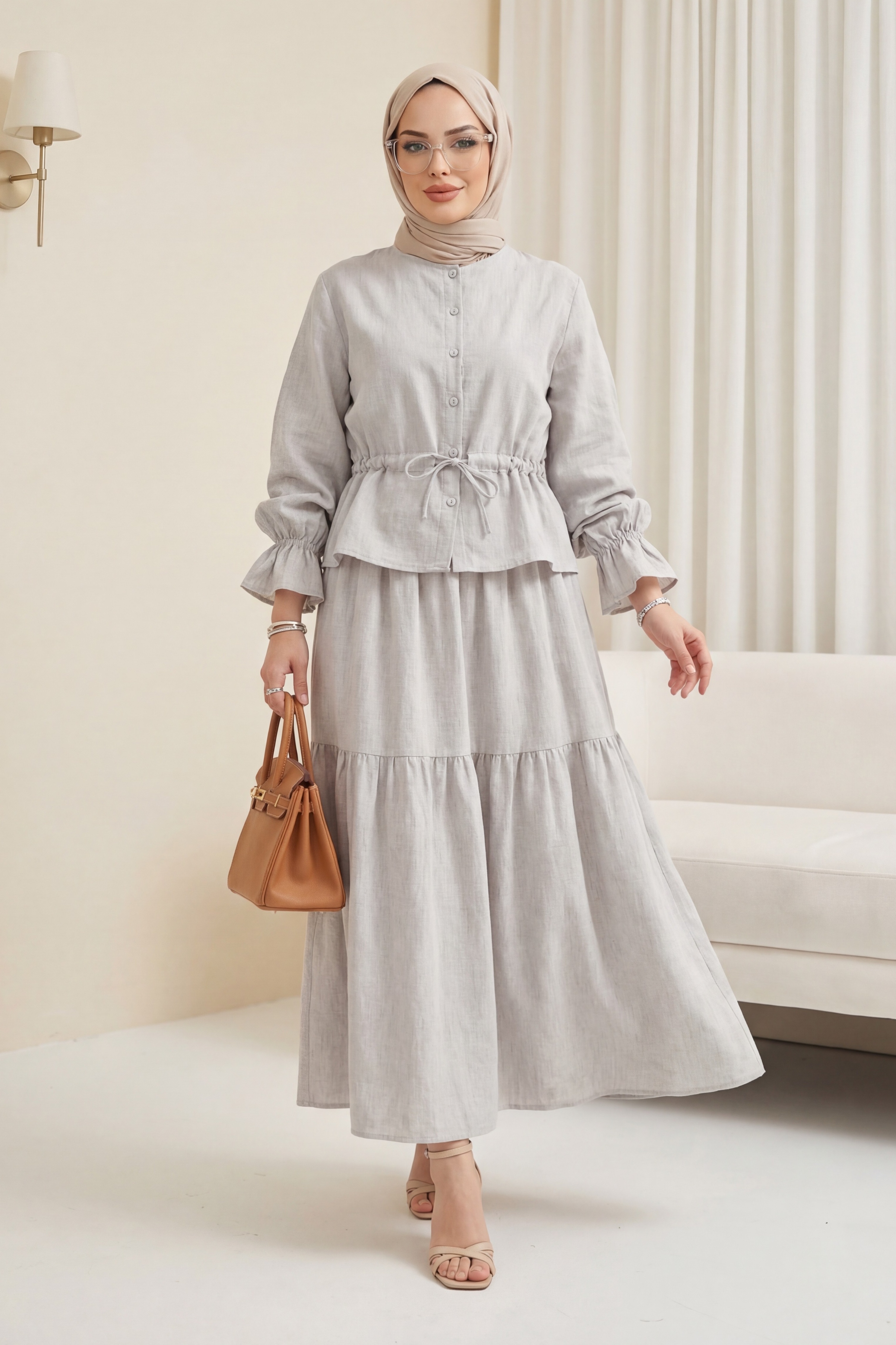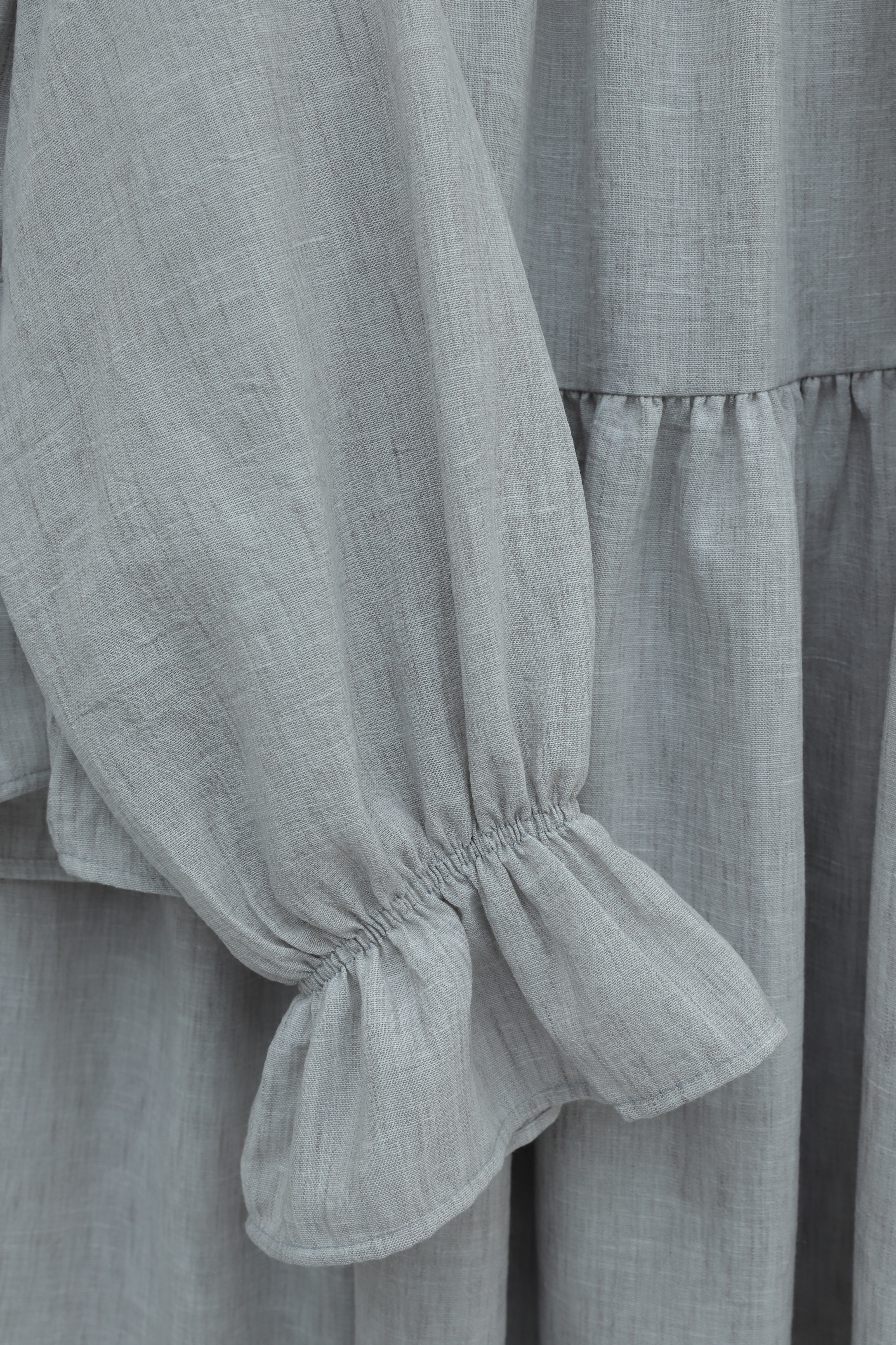 قميص بيضاوي الشكل ملفوف بأكمام الكفة -اللون الرمادي