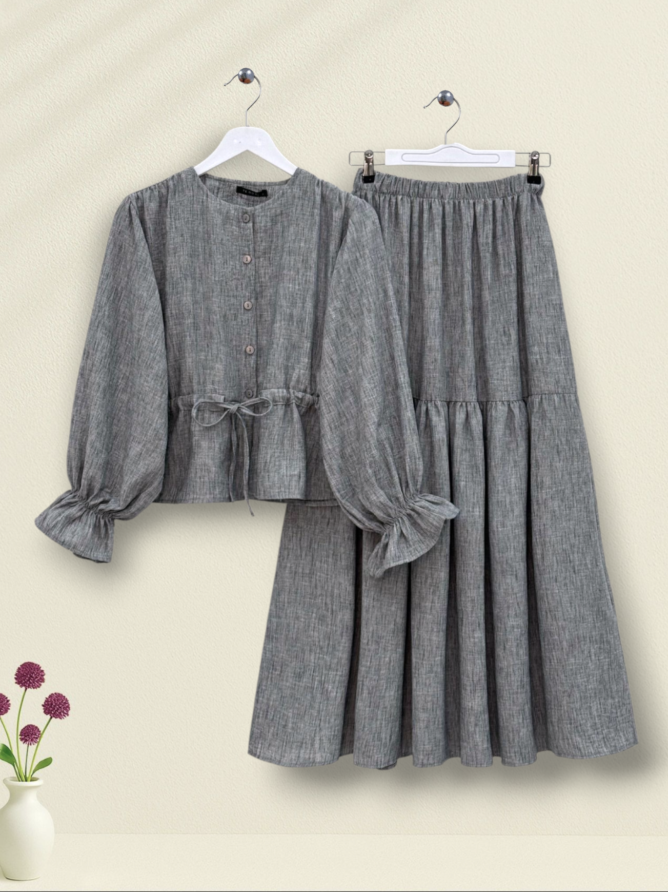 طقم قميص وبنطلون بأزرار علوية -أسود