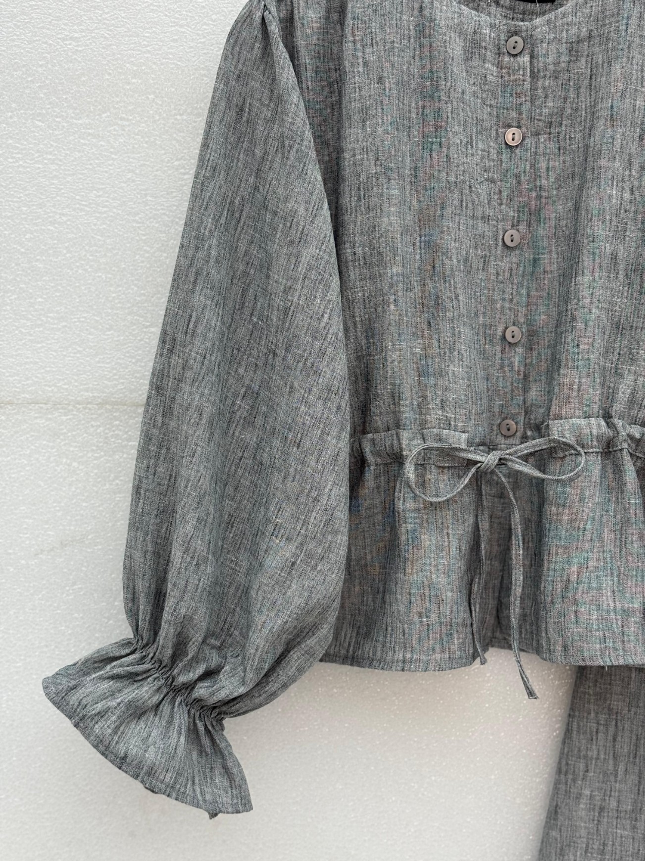 طقم كيمونو مع بنطال برباط أمامي مزدوج -اللون النيلي