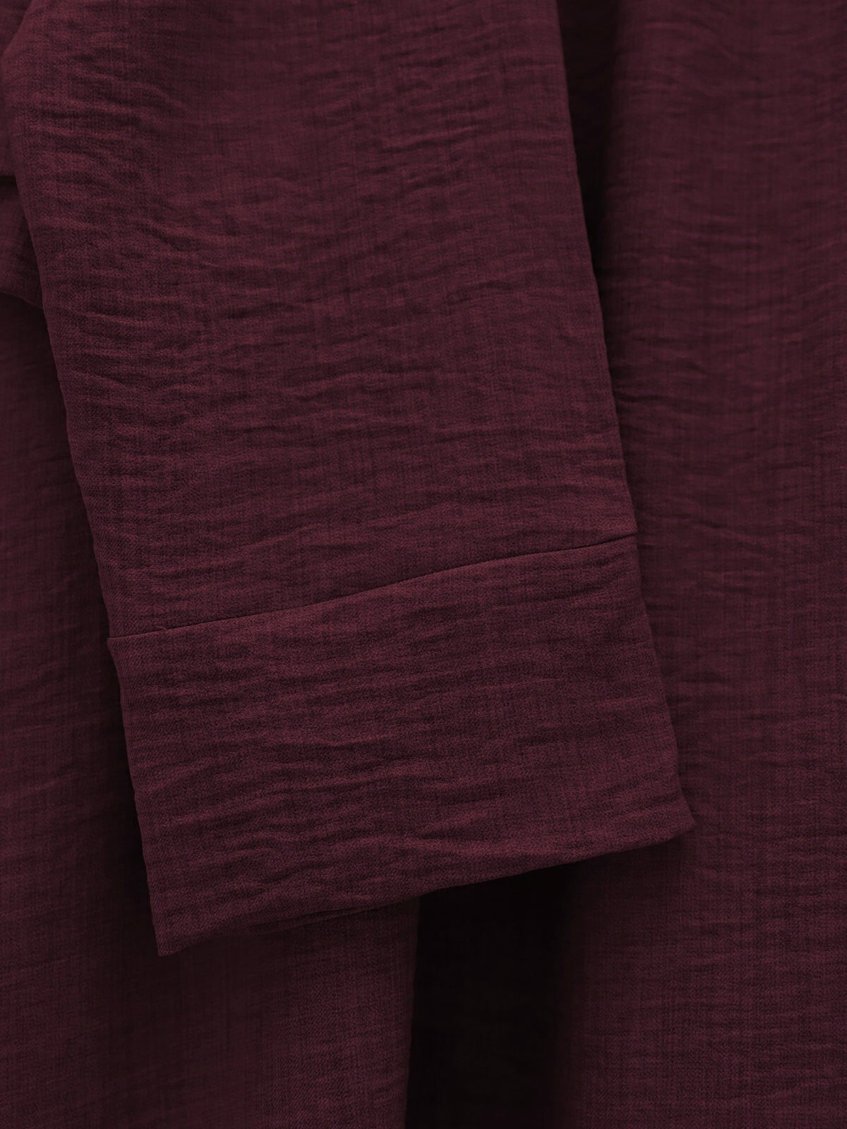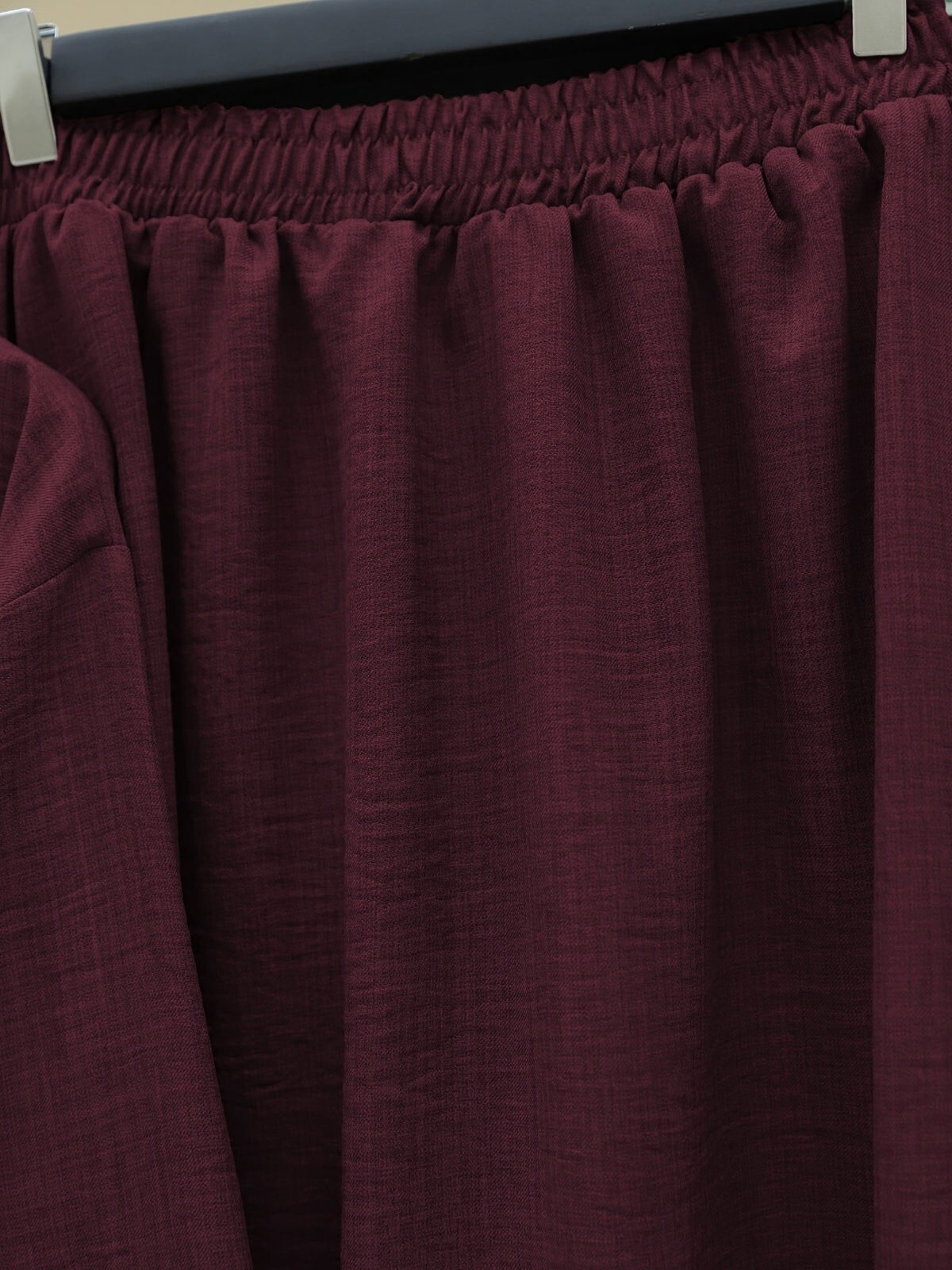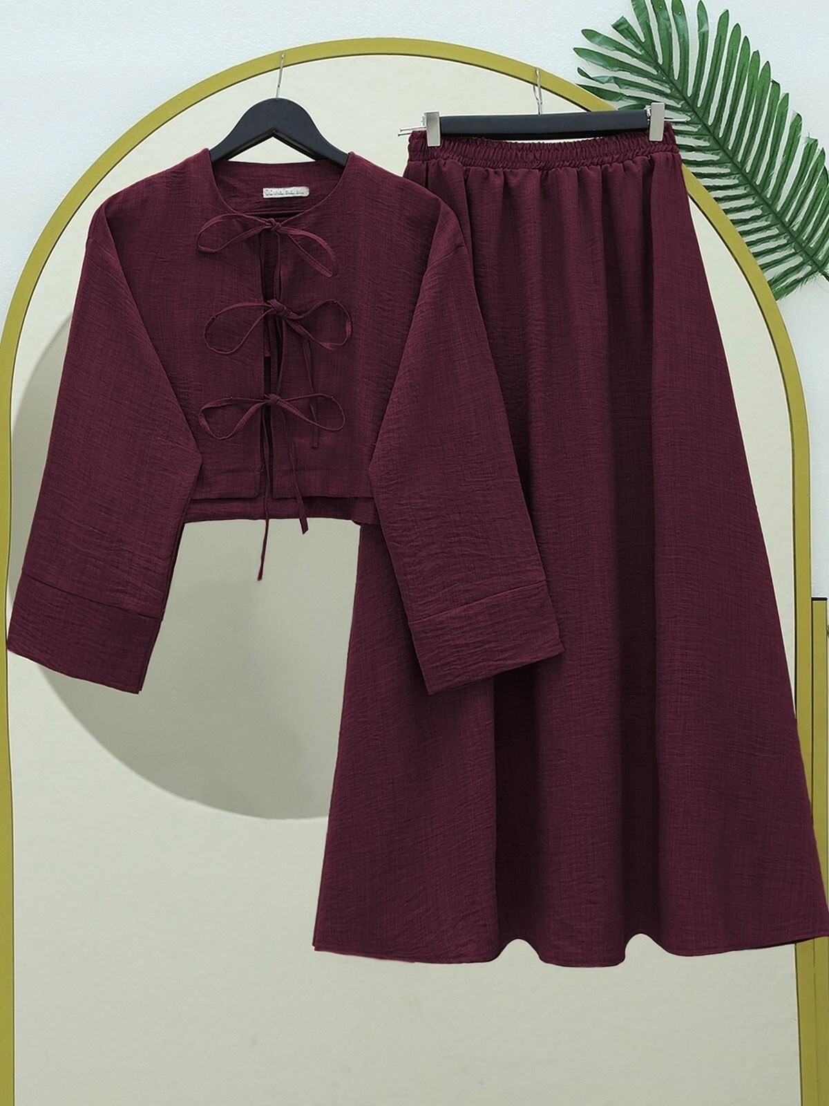 بدلة كتان بخصر مطاطي وتنورة برباط -بوردو