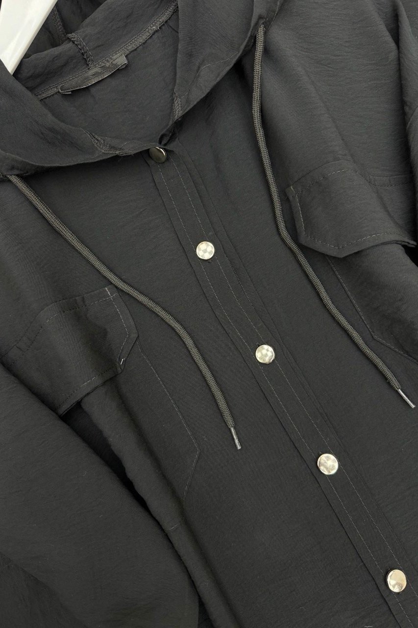 بدلة مزدوجة بقلنسوة بأزرار معدنيةv -أسود