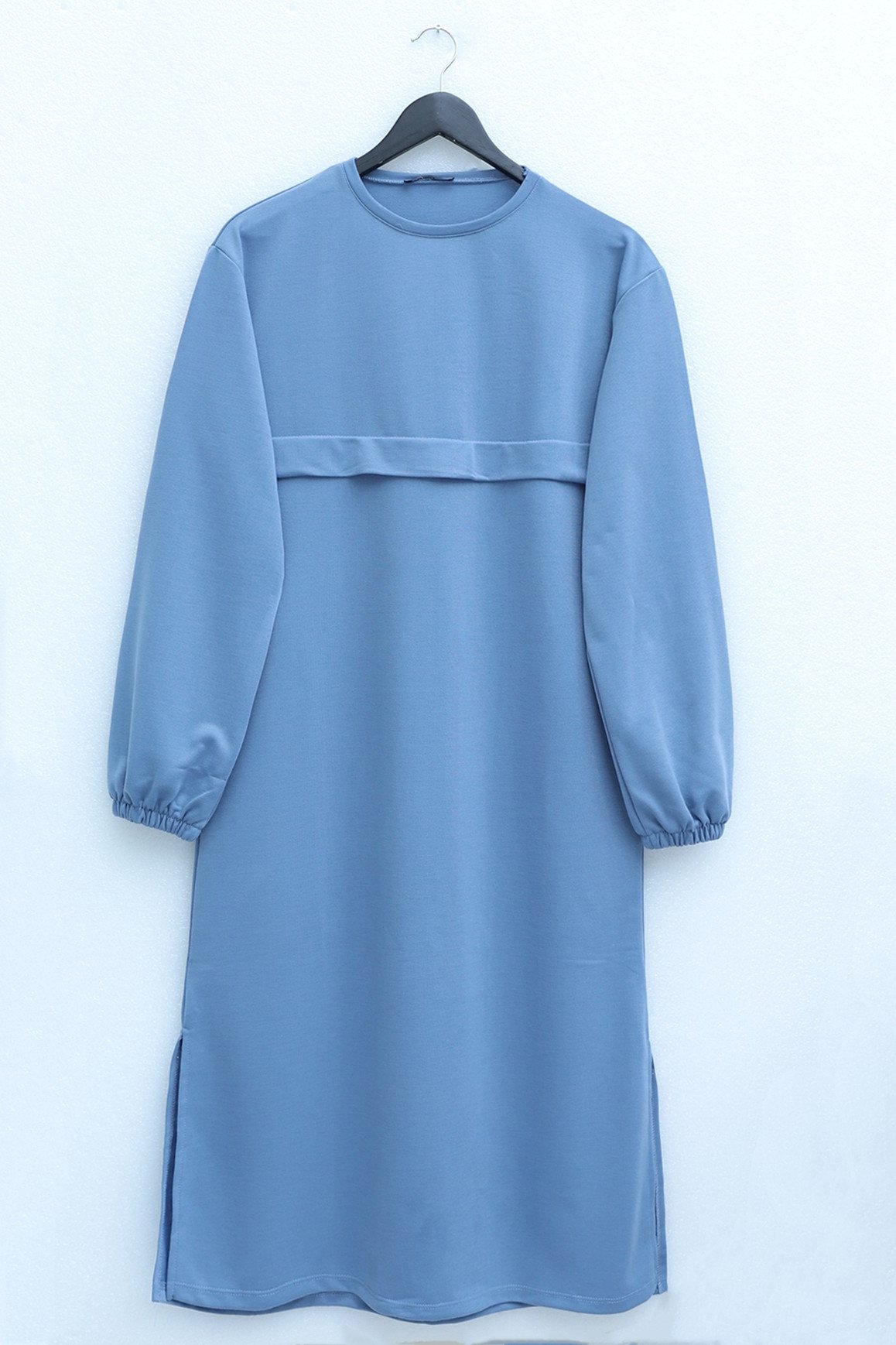 بدلة طويلة من القطن الممشط برقبة دائرية -ريشي