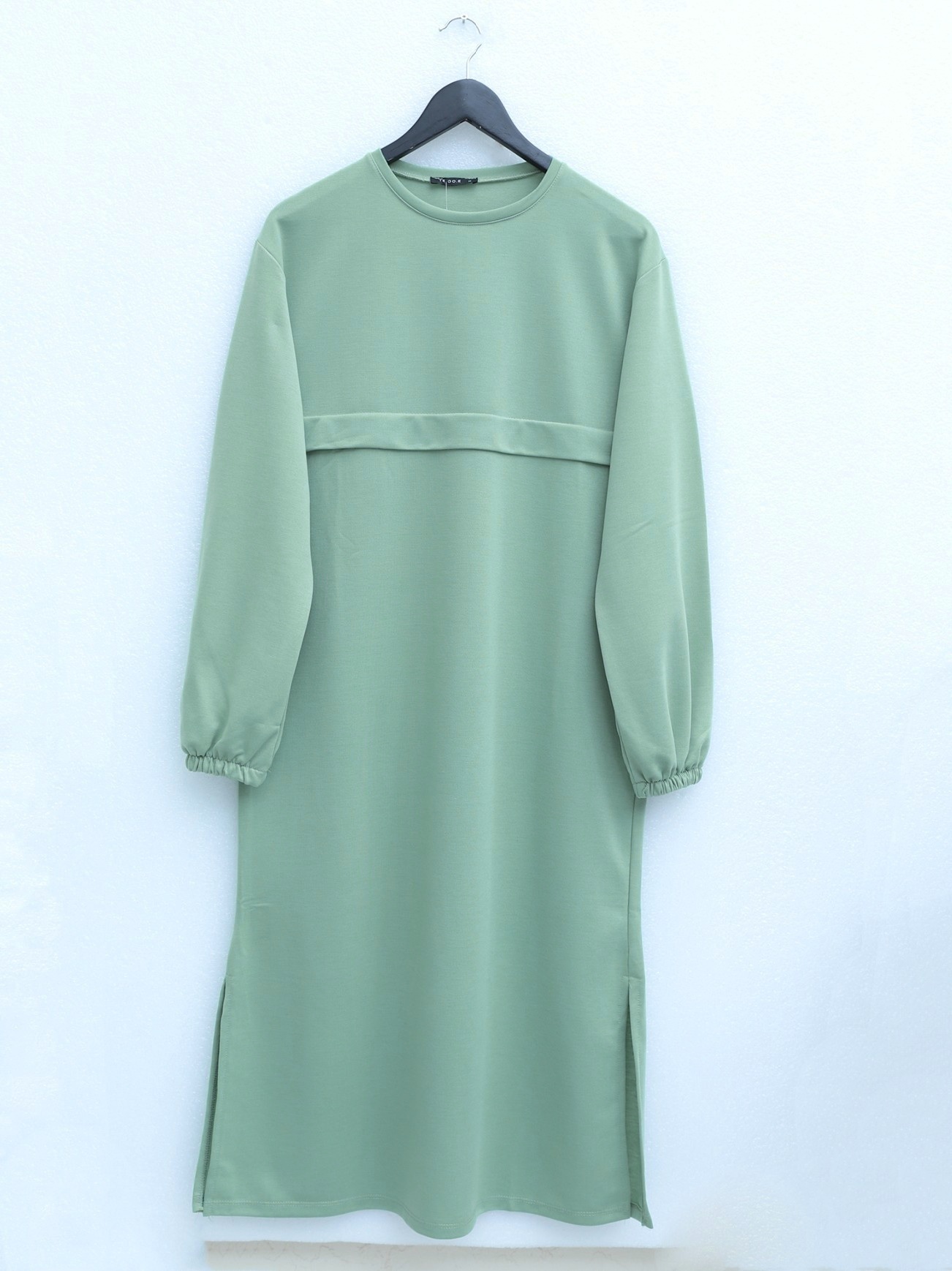 بدلة طويلة من القطن الممشط برقبة دائرية -بحري