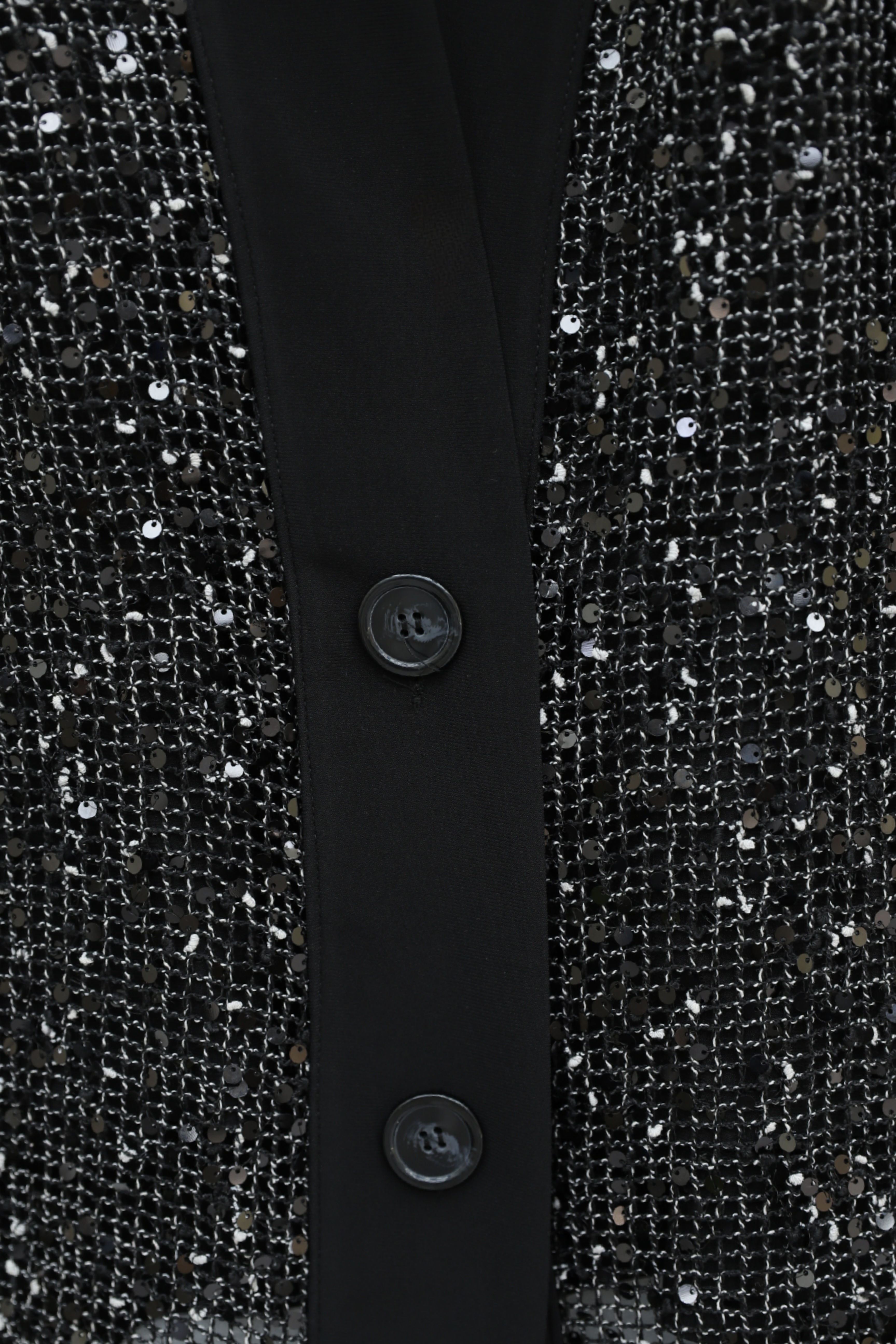 طقم سندي من 3 قطع مع كارديجان شبكي مزين بالترتر -أسود