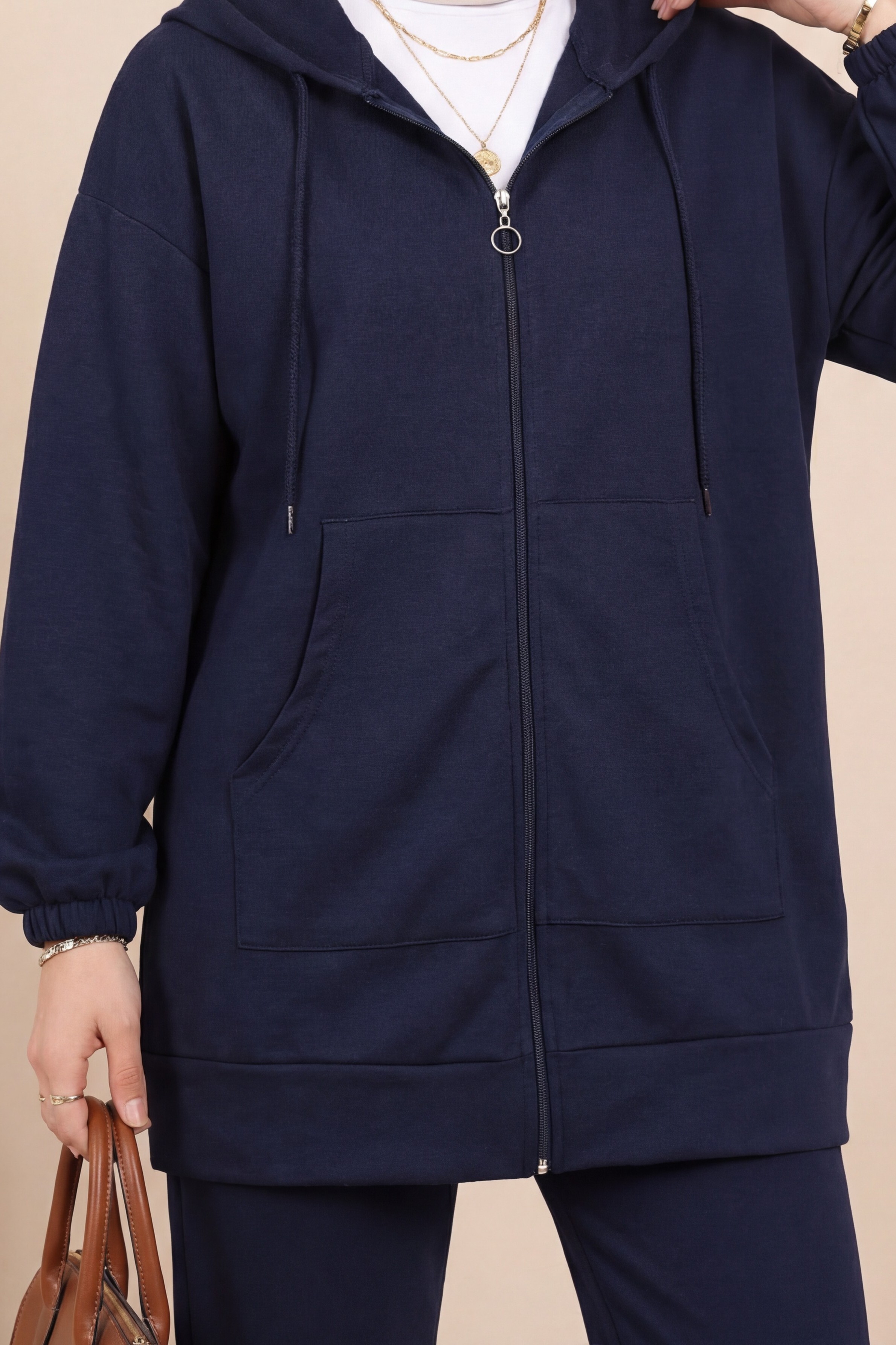 تحتوي السترة على سحاب أمامي، وغطاء للرأس، وجيبين، وأصفاد مطاطية؛ يعد موديل البدلة القطنية الممشطة ذات الأرجل الواسعة، مع الخصر المطاطي على البنطلون، من أكثر الموديلات رواجًا للموسم الجديد.