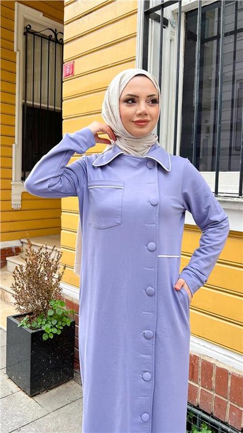 اسم المنتج: - عباية قطنية طويلة بياقة وجيوب وأزرار جانبية