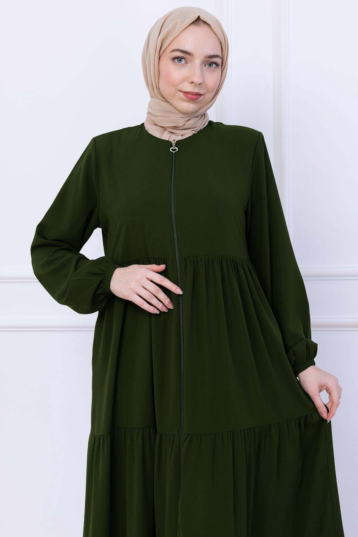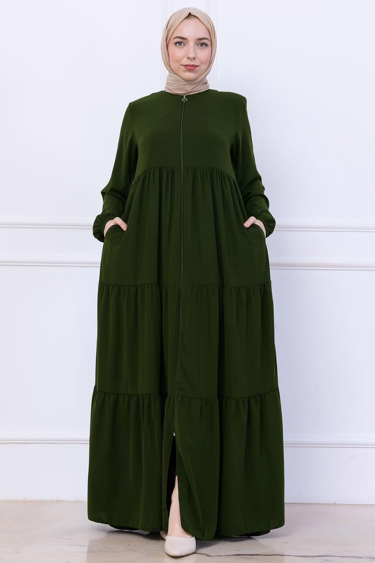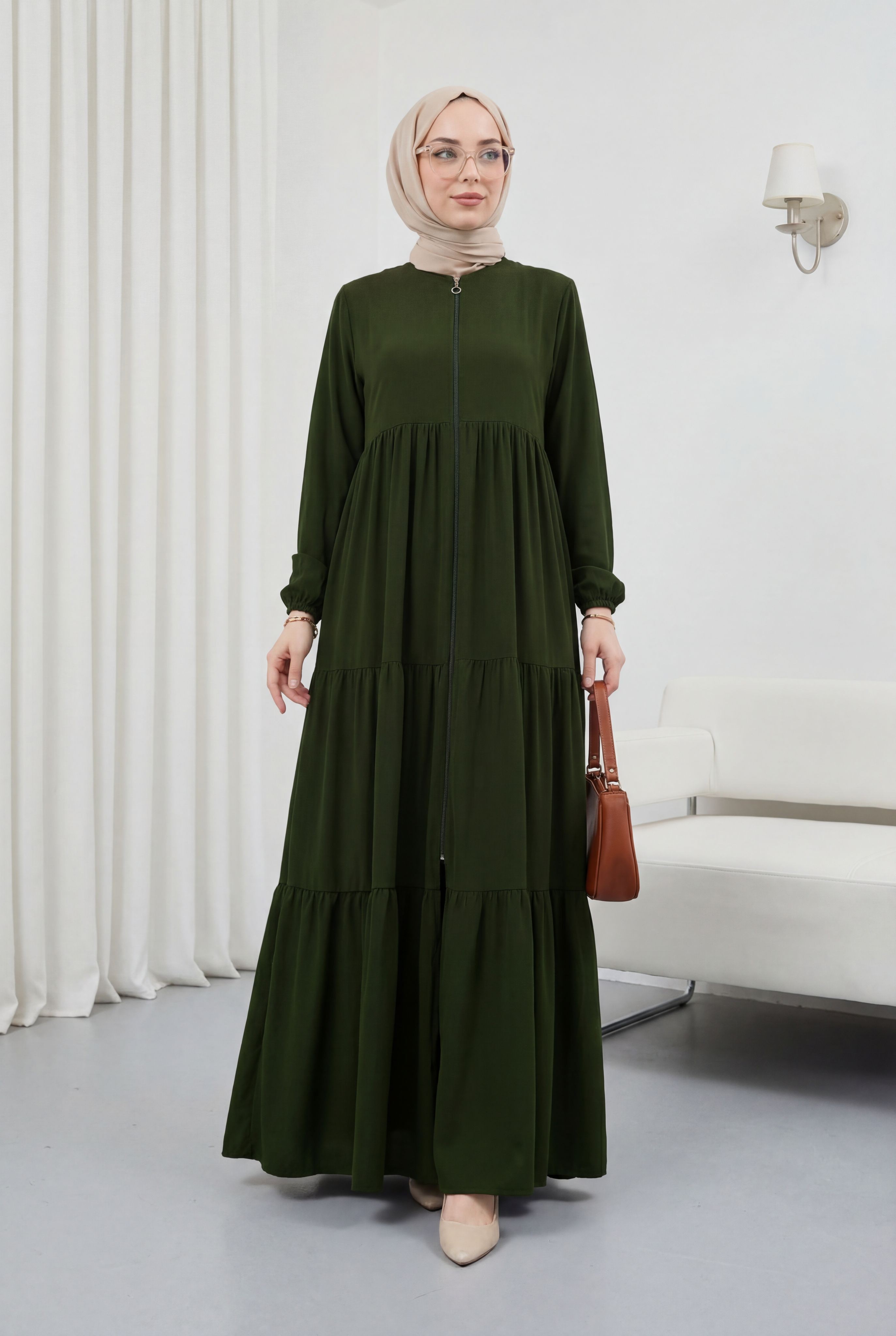 عباية كاكي متعددة الطبقات ومجمعة HM2735