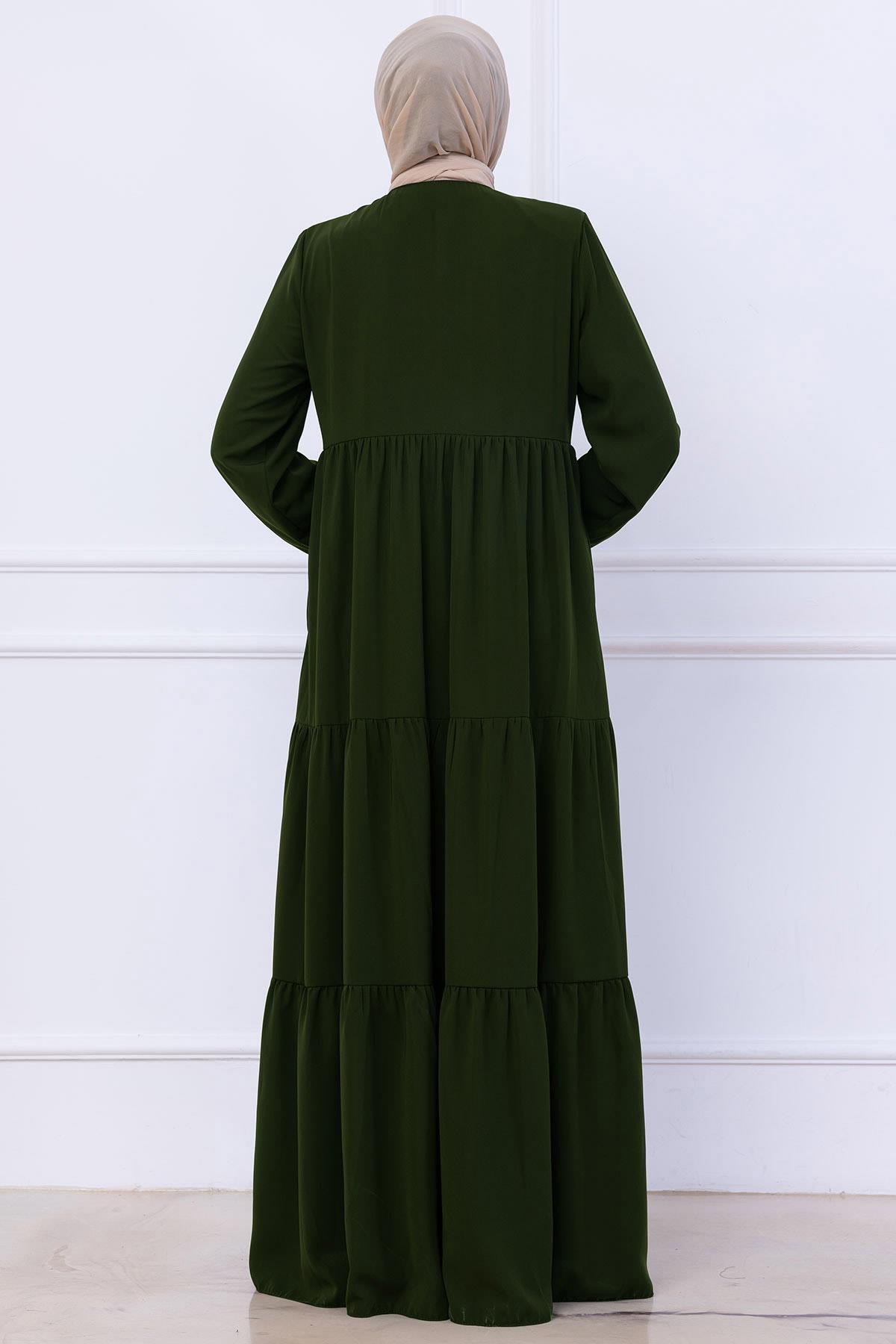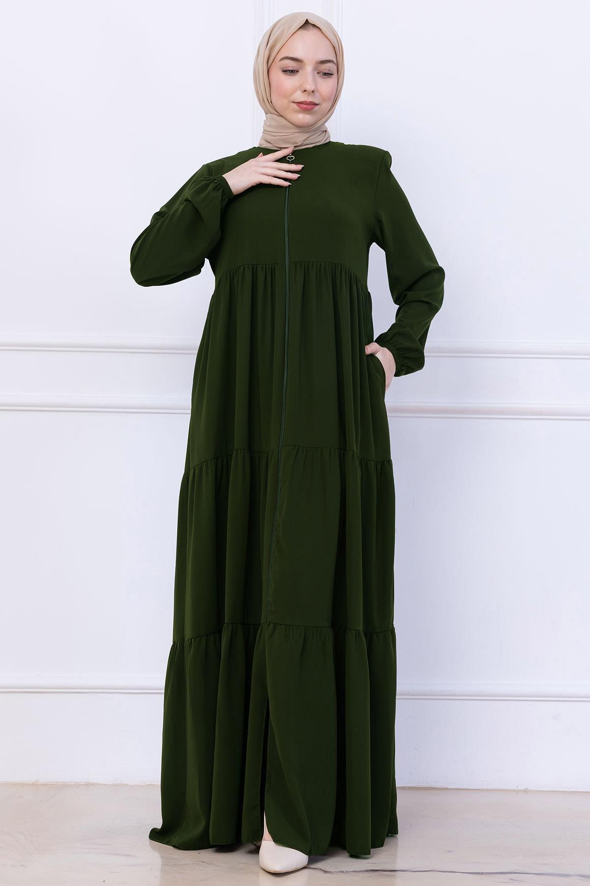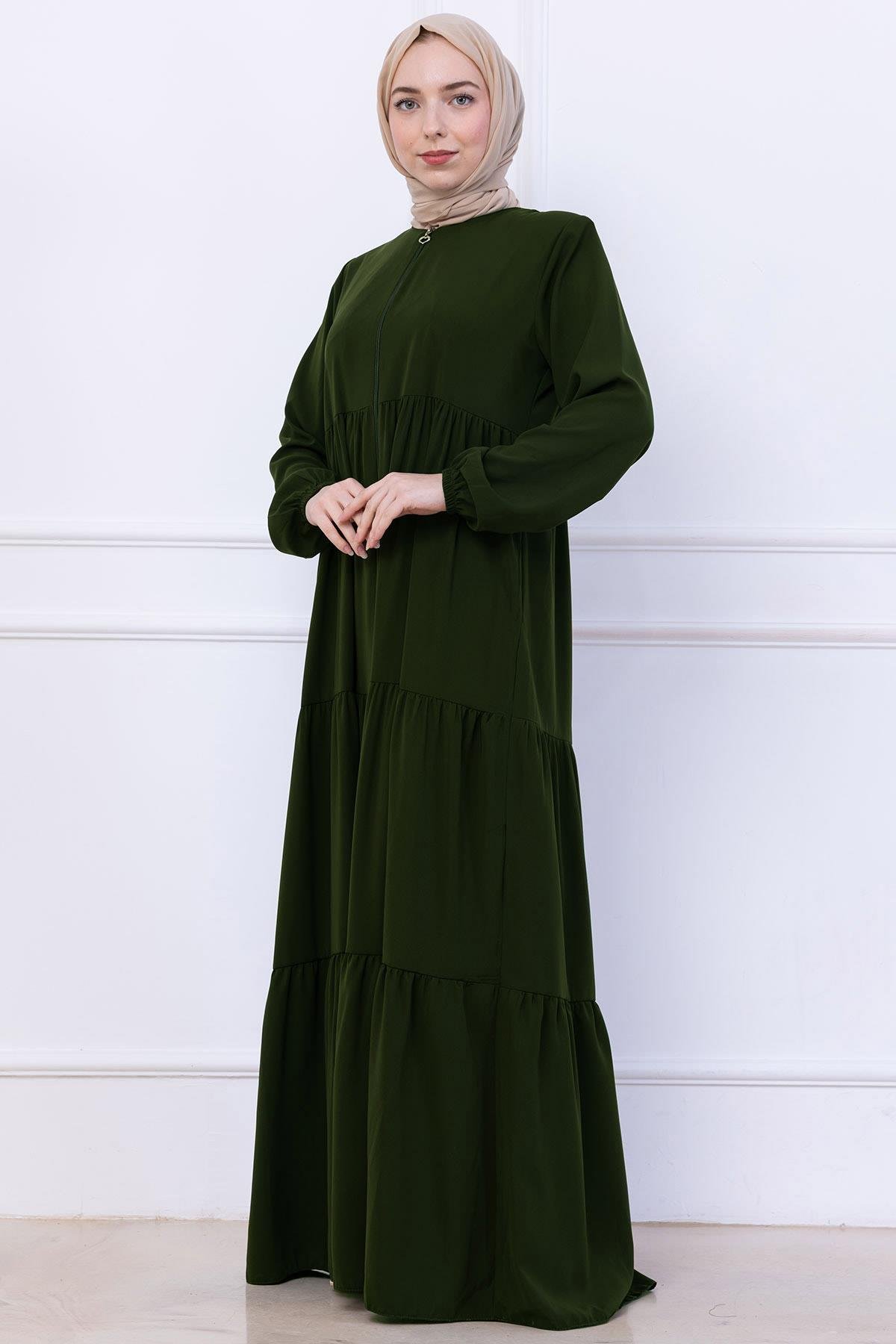 عباية كاكي متعددة الطبقات ومجمعة HM2735