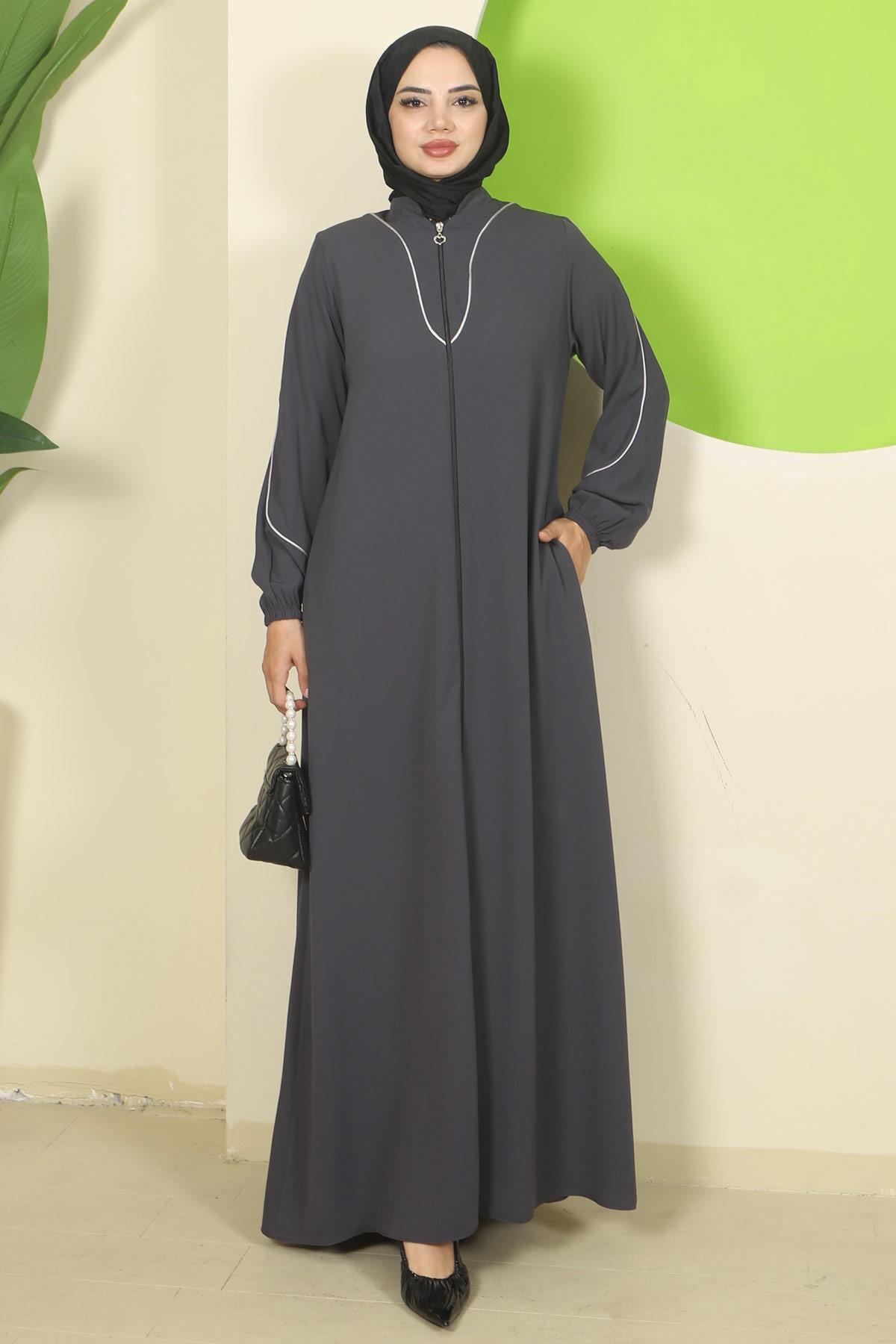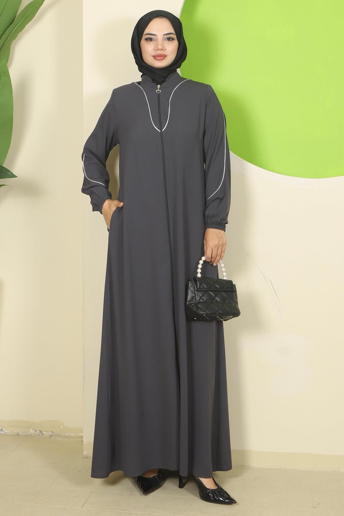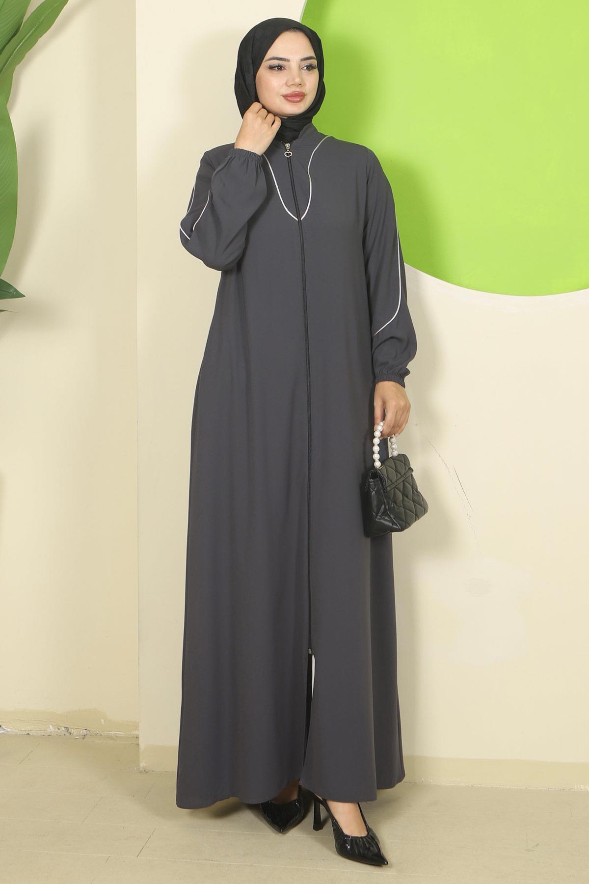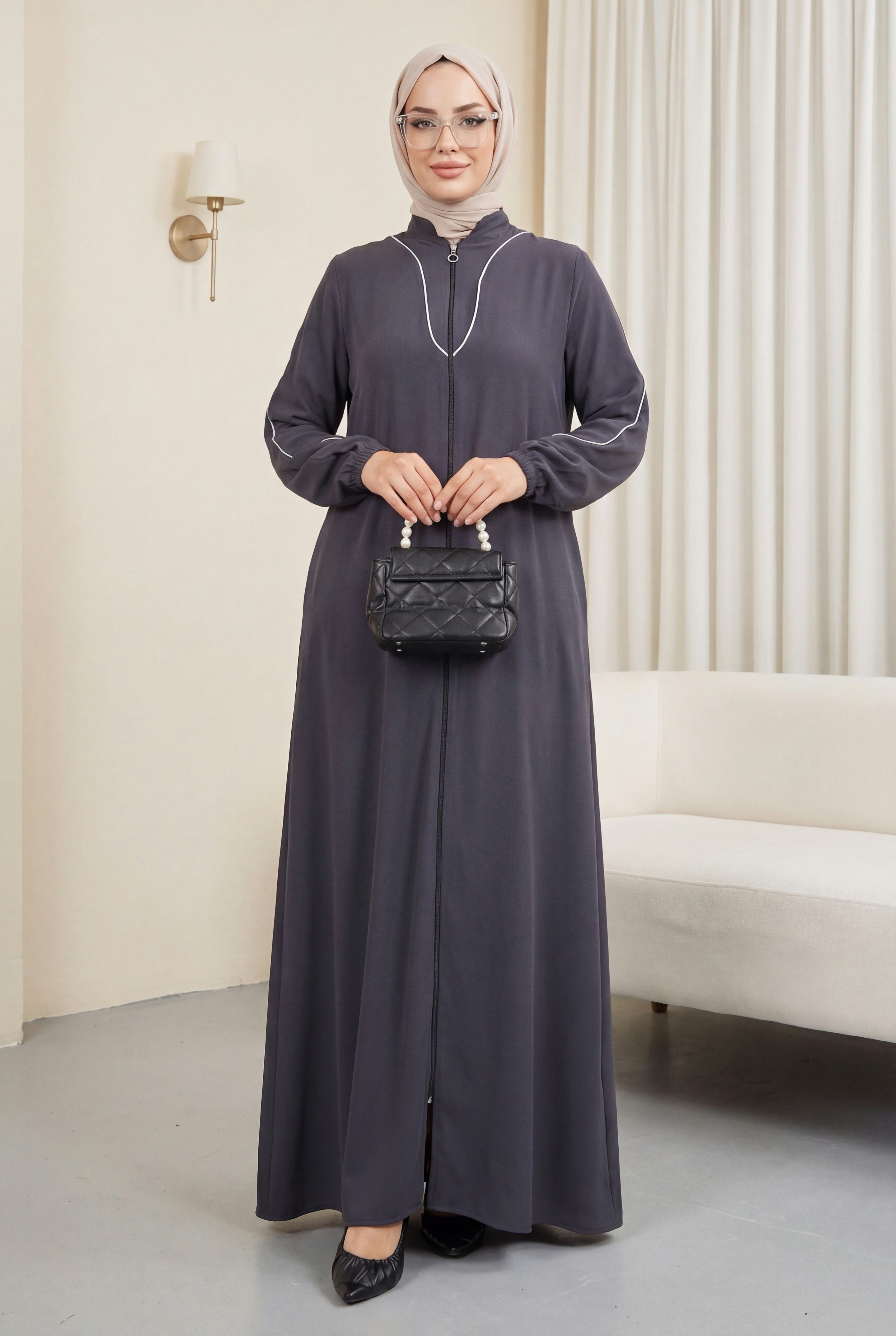 مميزات المنتج: عباية عالية الخصر بسحاب كامل، مزينة بتطريزات أنيقة على الأكمام والياقة. تتميز بكتفين مبطنتين، وجيوب جانبية، وأساور مطاطية، وهي بدون بطانة. قد يختلف اللون قليلاً بسبب ظروف التصوير.