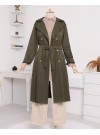 معطف طويل بحزام بياقة شال -خاكي