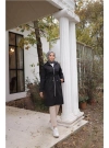 معطف طويل مزود بسحاب أمامي، وجيبين جانبيين، ورباط عند الخصر.