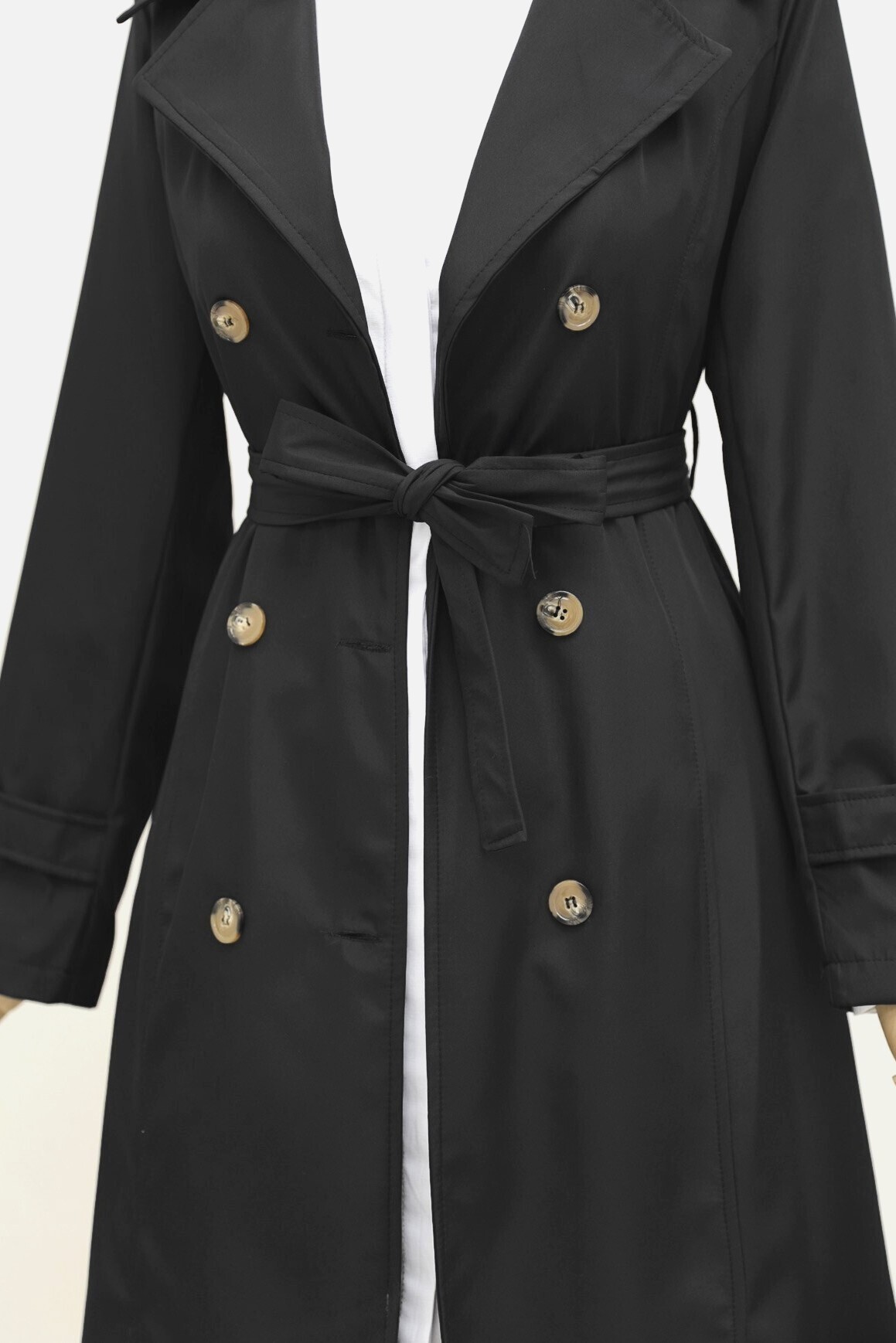 معطف واقٍ من المطر مبطن بحزام -أسود