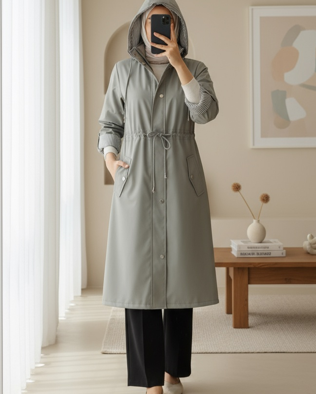 يعد نموذج معطف الترنش المبطن الخاص بنا مع سحاب أمامي وأربطة كبس وأكمام مطوية وغطاء للرأس قابل للفك ورباط الخصر وربطات العنق من أشهر الموديلات في الموسم الجديد.