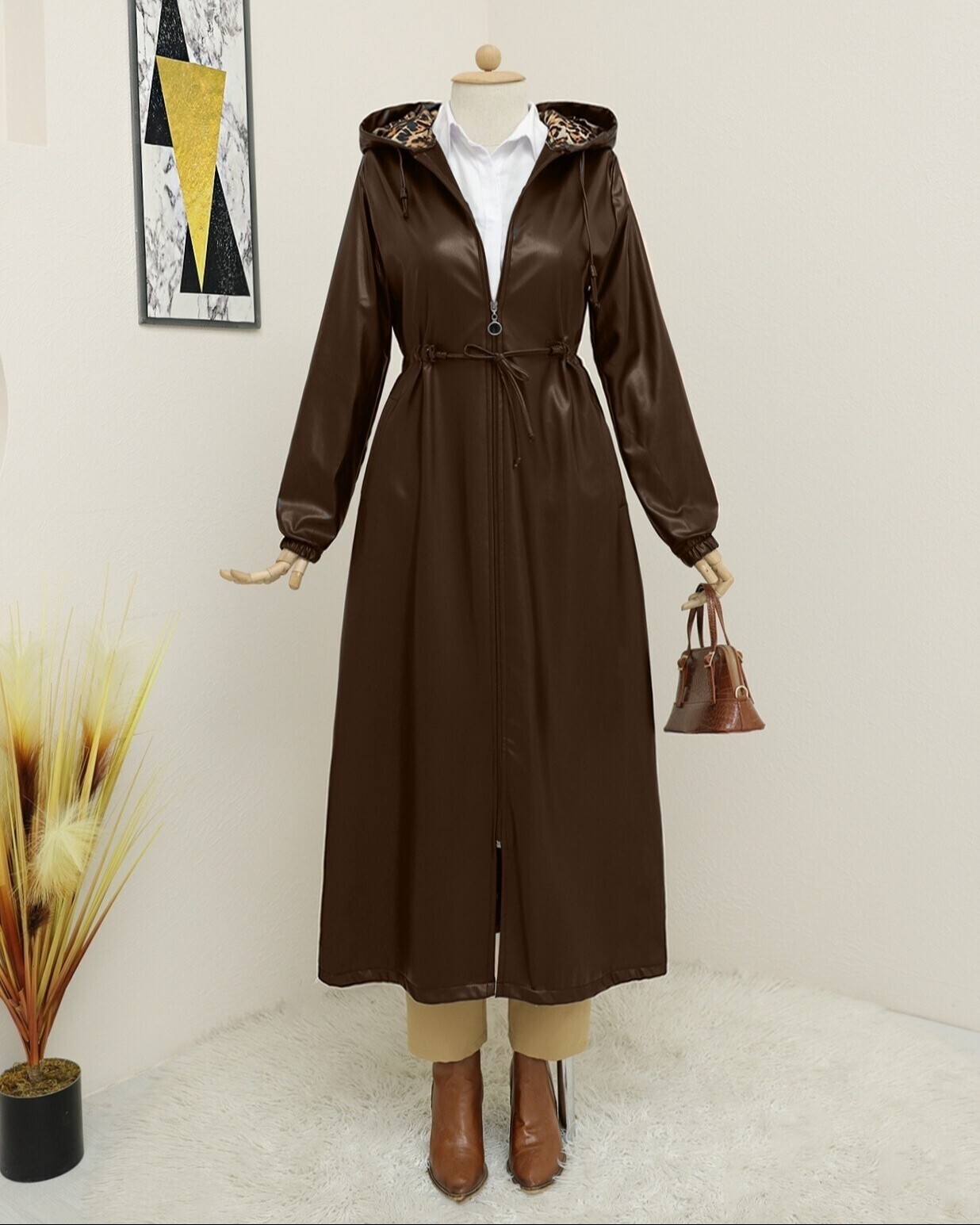 يعد نموذج المعطف الجلدي الخاص بنا، والذي يحتوي على سحاب أمامي، وغطاء للرأس، وجيبين، وخصر برباط ورباط، وأساور ذراع مطاطية وجزء داخلي مرتفع، من بين الموديلات الأكثر شعبية للموسم الجديد.