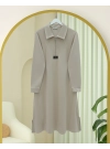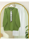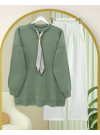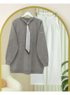 تونيك محبوك كاجوال برقبة دائرية وموشح -أصفر فاتح