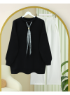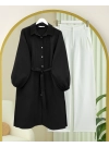تونيك طويل من الموسلين بأساور مطاطية وخصر برباط -أسود