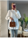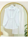 قميص من قماش البوبلين بتفاصيل ثنيات في الأمام والخلف وأزرار مخفية -أبيض
