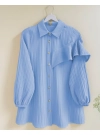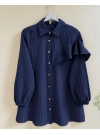 قميص من الكتان الخام بأكمام منتفخة مع شرابات غيبور -أصفر فاتح