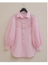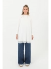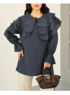 بلوزة نسائية بياقة عالية وتفاصيل من التول
