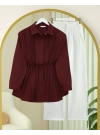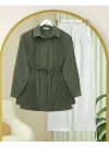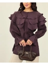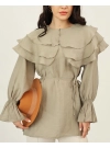 سترة طويلة بياقة عريضة متعددة الطبقات وأساور مطاطية ورباط عند الخصر وفتحة جانبية -لون الخوخ