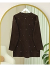 تونيك محبوك بنقشة البقلاوة وتفاصيل حجرية -بنى
