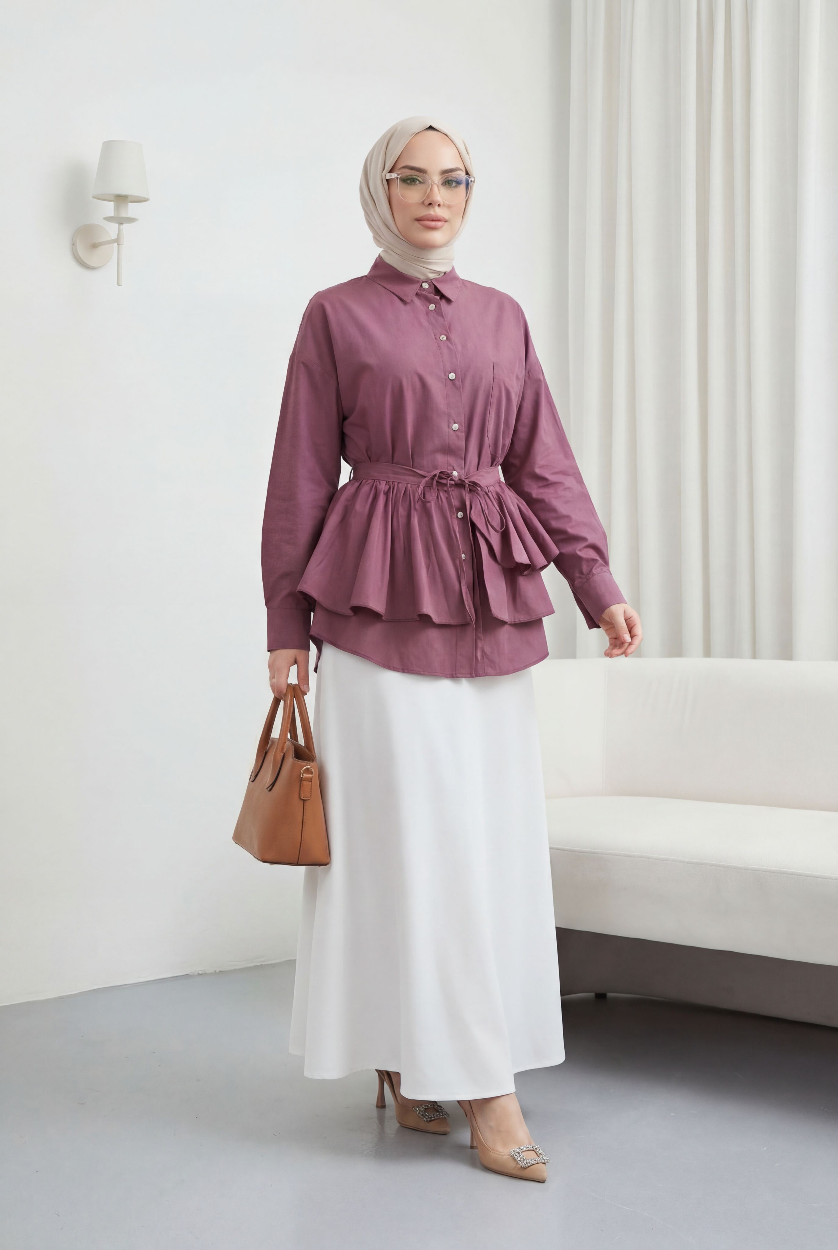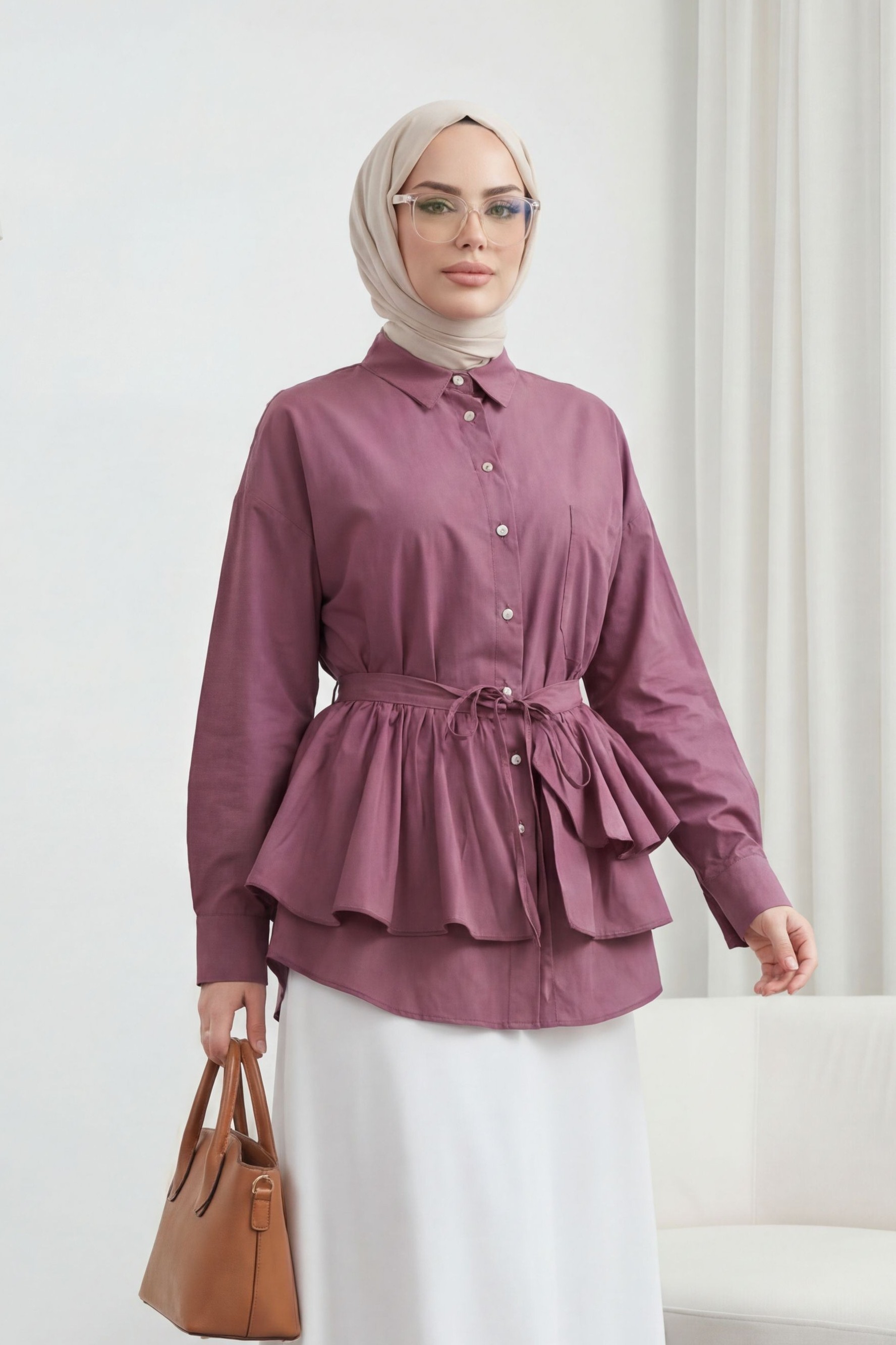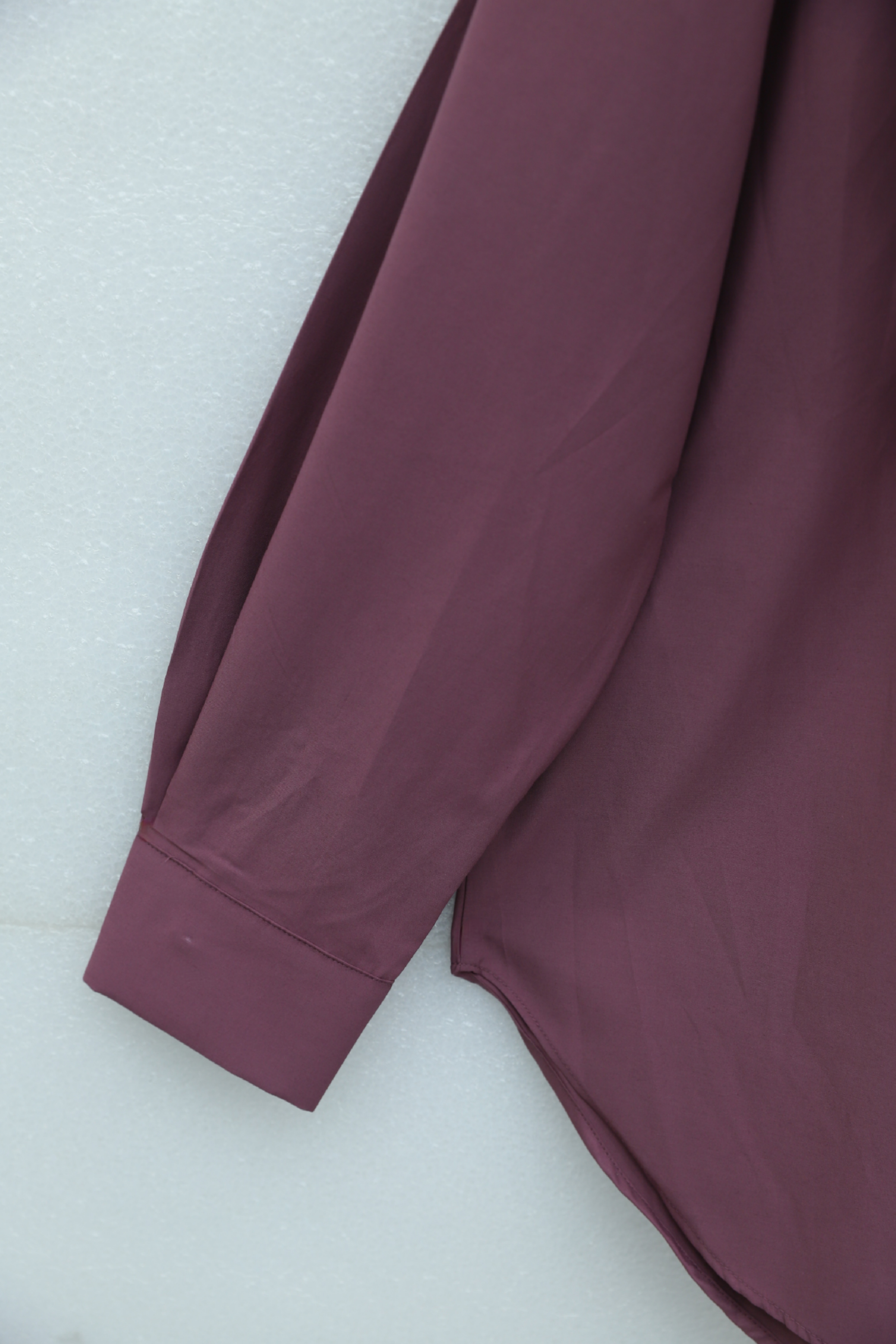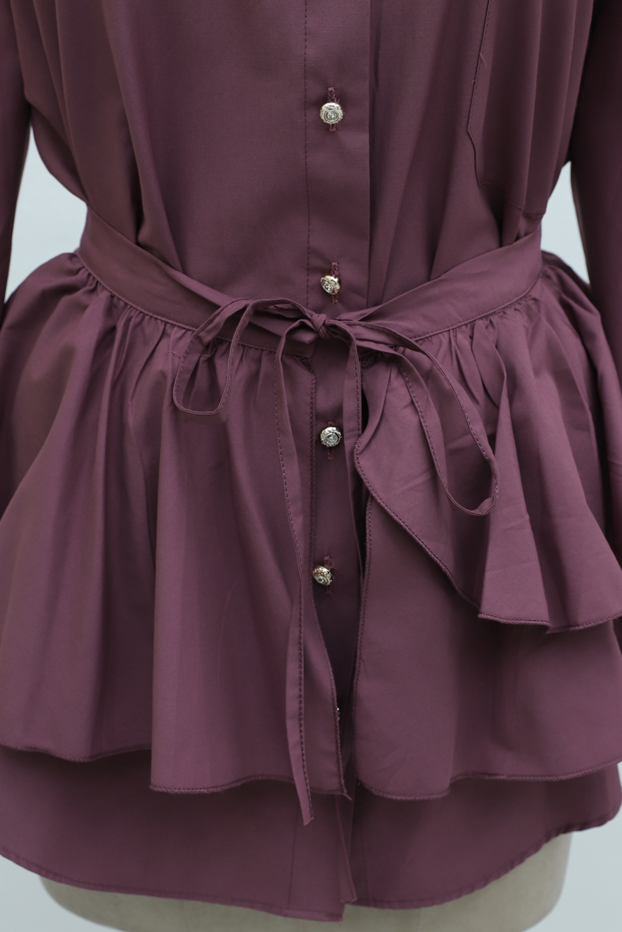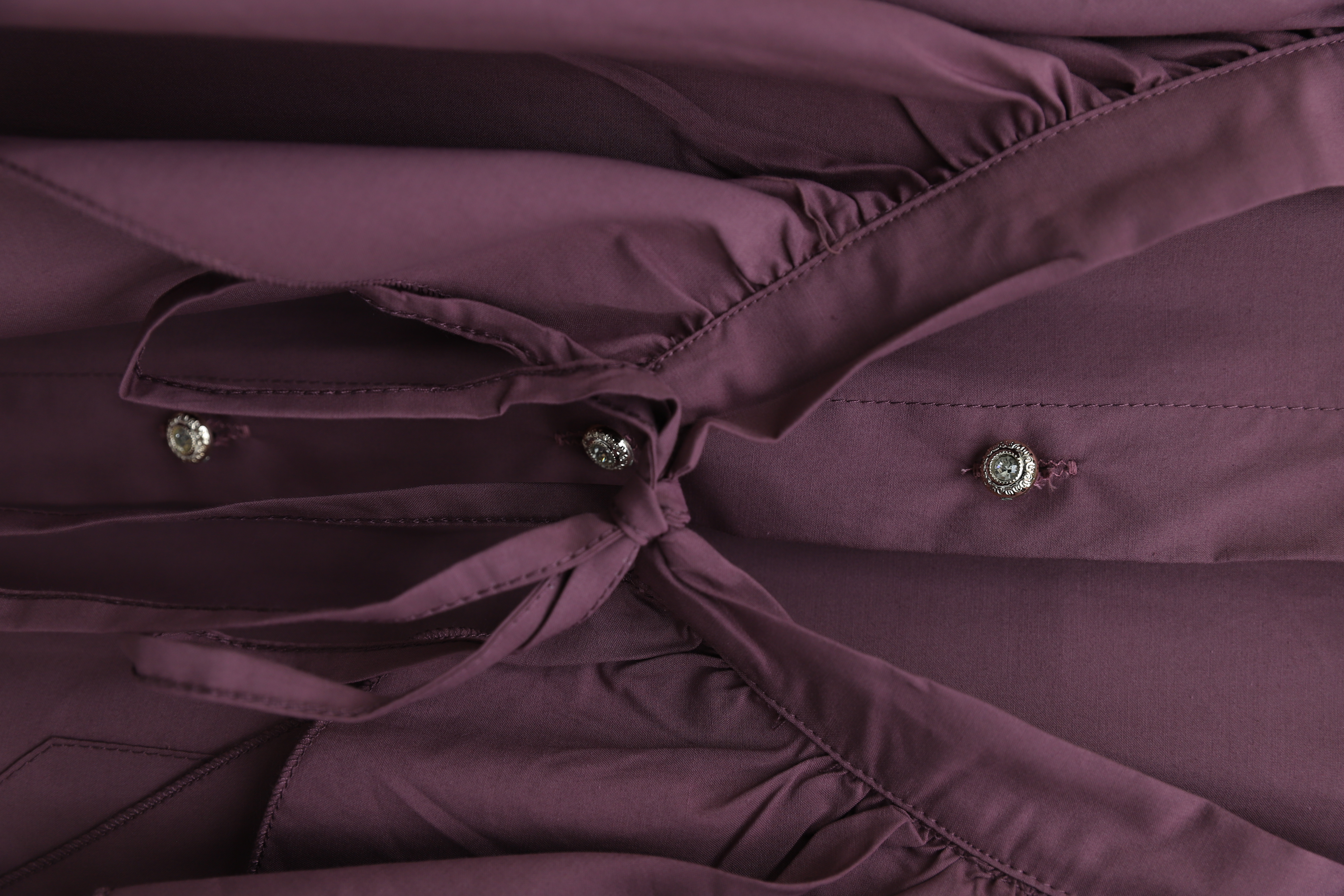 تونيك من قماش البوبلين بقصة بيضاوية مع تفاصيل على شكل كاب وإغلاق بأزرار -لون الكرز