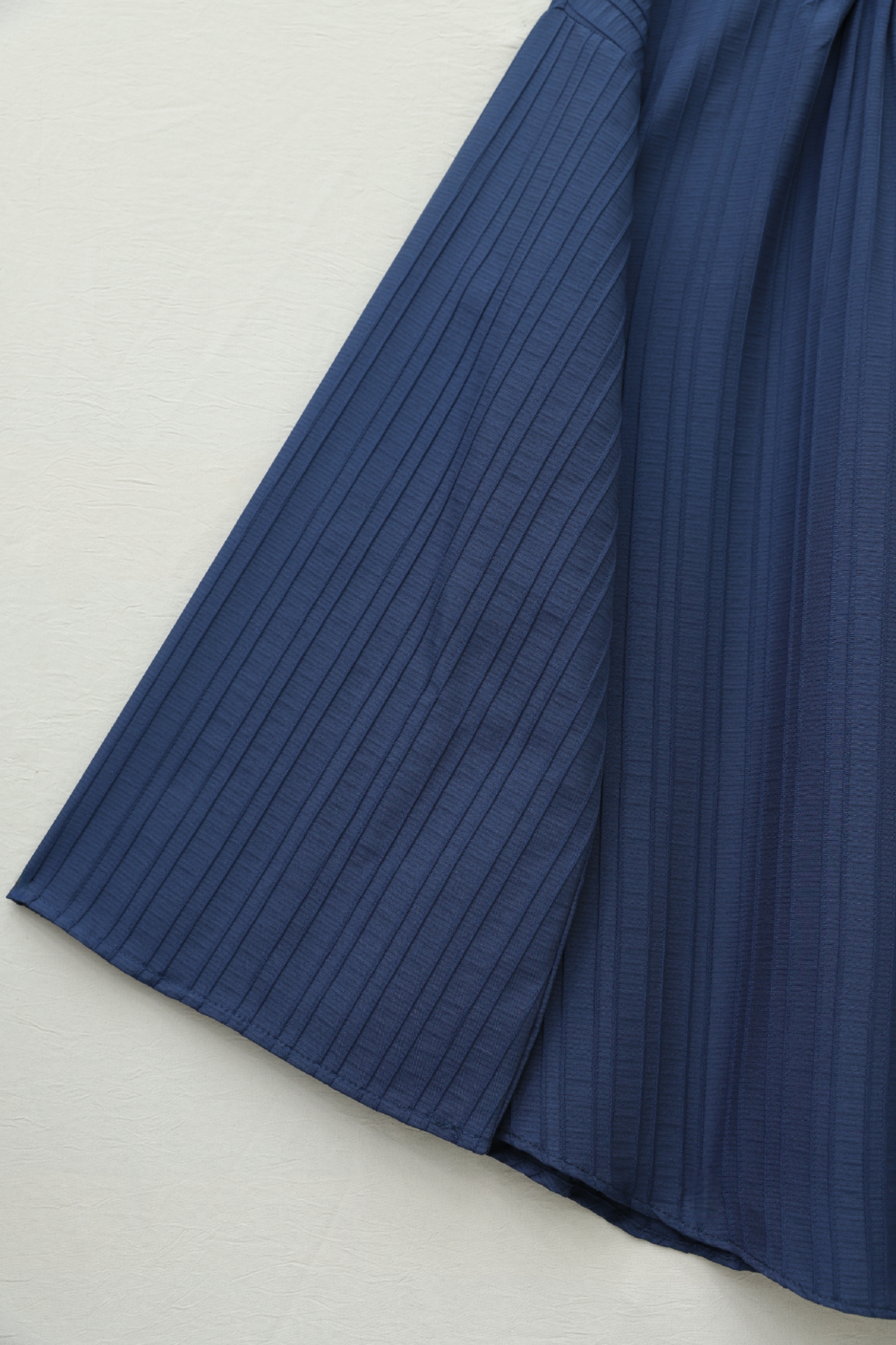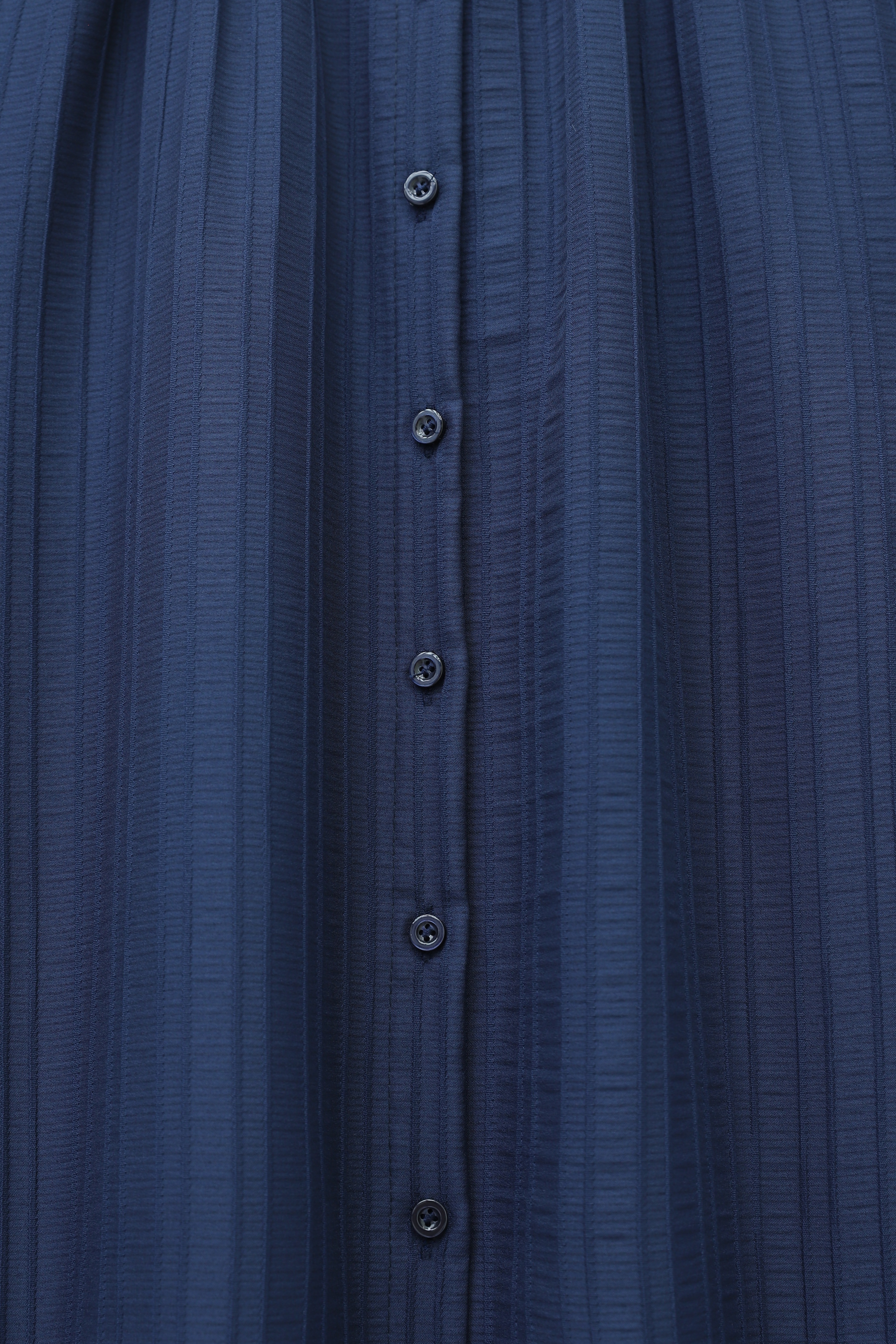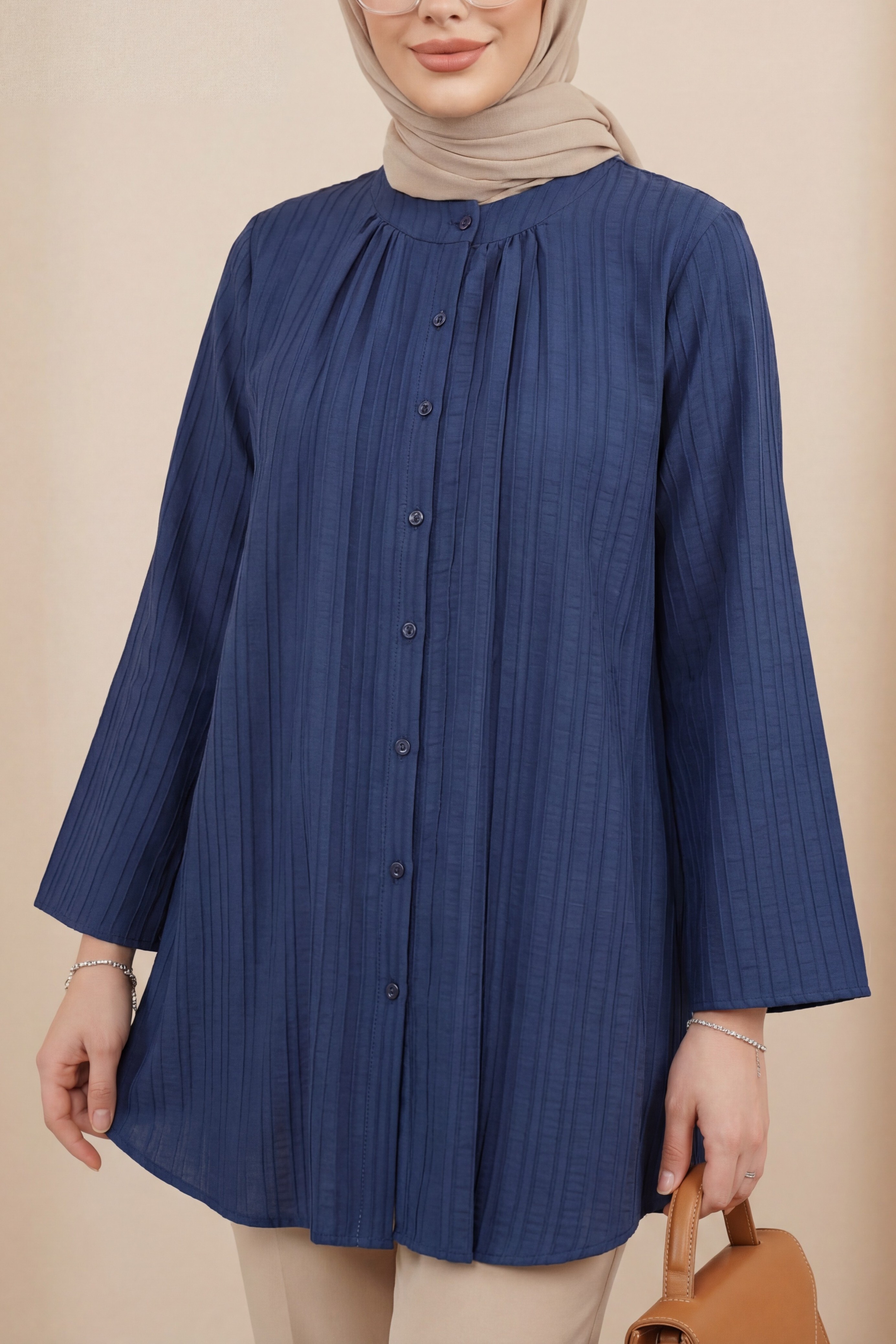 قميص مجعد ملائم مع ربطة خصر -بحري