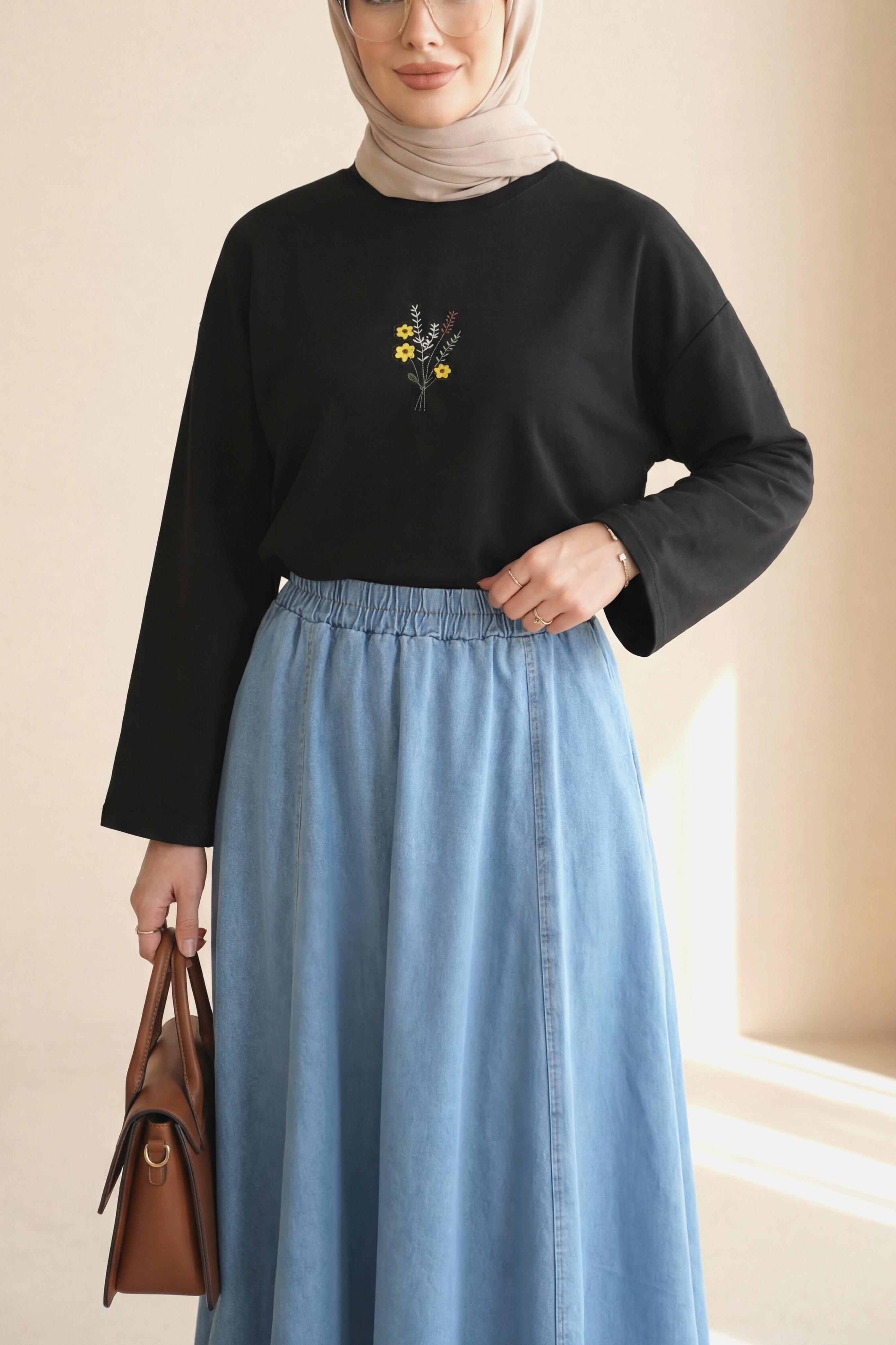 نمط العرقية تنورة قطعة اصطف فستان شيفون -كحلي