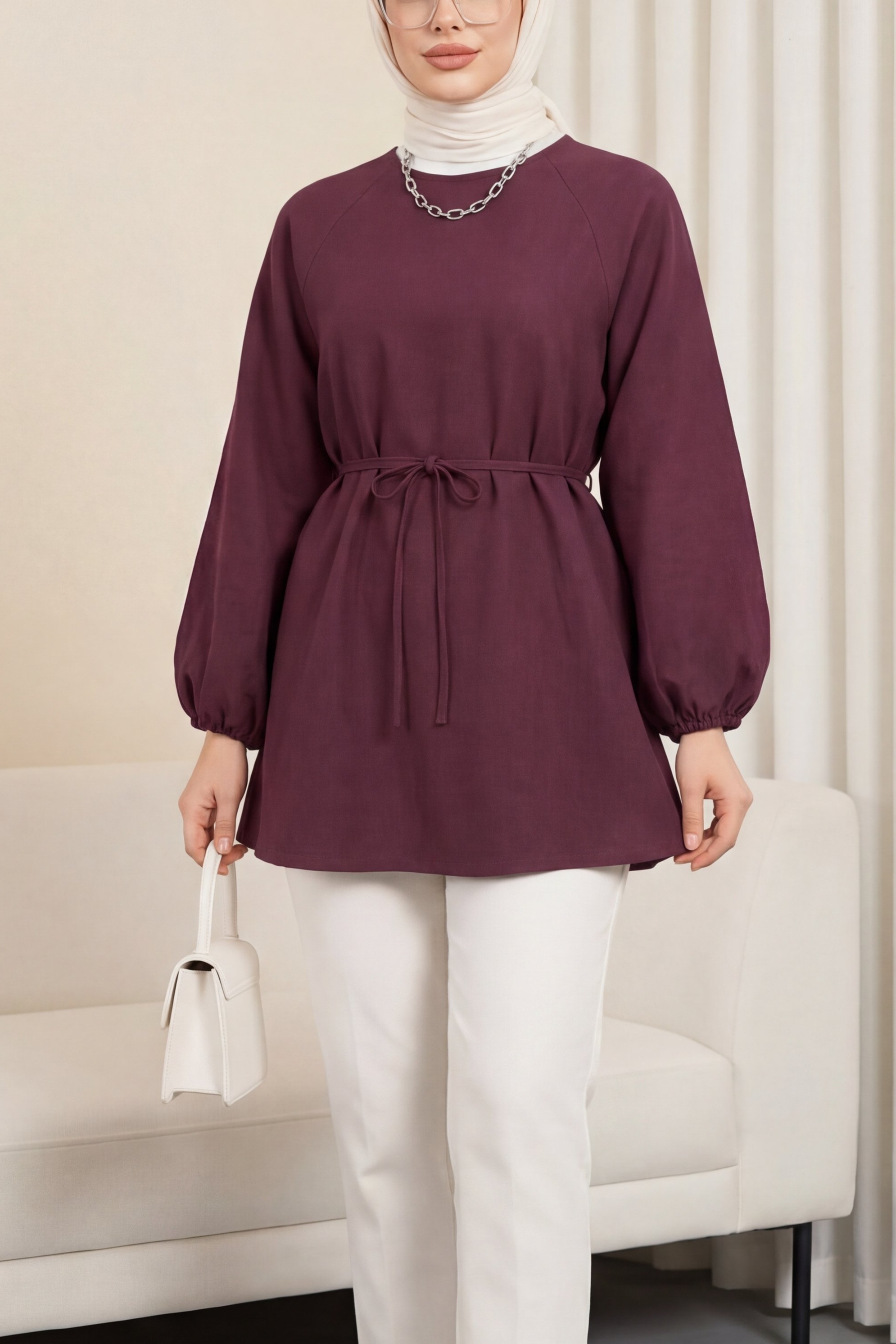 التونيك بياقة دائرية ومشد عند الخصر وأكمام بالون يقدم تصميمًا مريحًا وأنيقًا. يضيف مشد الخصر لمسة من الأناقة مع تشكيل الجسم، بينما تضيف الأكمام بالون لمسة عصرية. مثالي للاستخدام اليومي، يتيح لكِ هذا التونيك إنشاء إطلالة أنيقة وديناميكية مع العديد من التنسيقات.