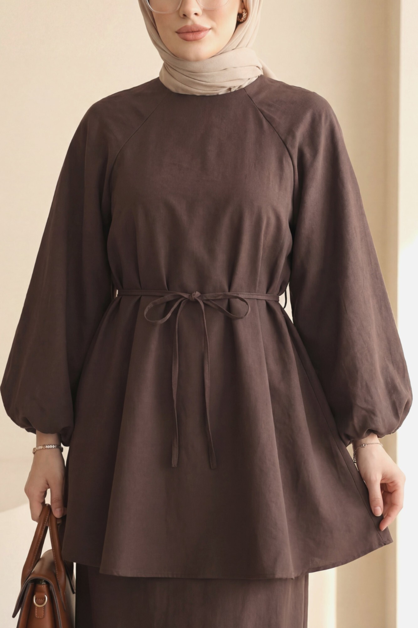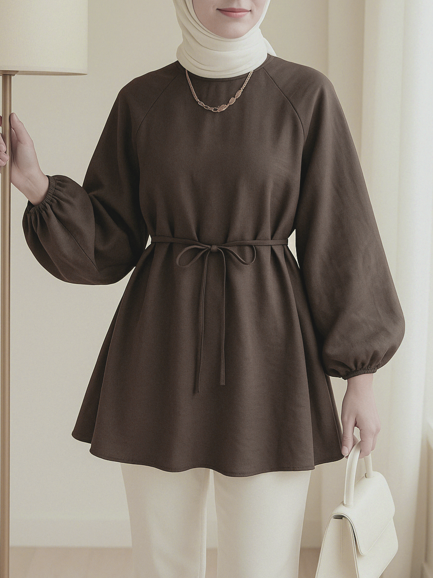 التونيك بياقة دائرية ومشد عند الخصر وأكمام بالون يقدم تصميمًا مريحًا وأنيقًا. يضيف مشد الخصر لمسة من الأناقة مع تشكيل الجسم، بينما تضيف الأكمام بالون لمسة عصرية. مثالي للاستخدام اليومي، يتيح لكِ هذا التونيك إنشاء إطلالة أنيقة وديناميكية مع العديد من التنسيقات.