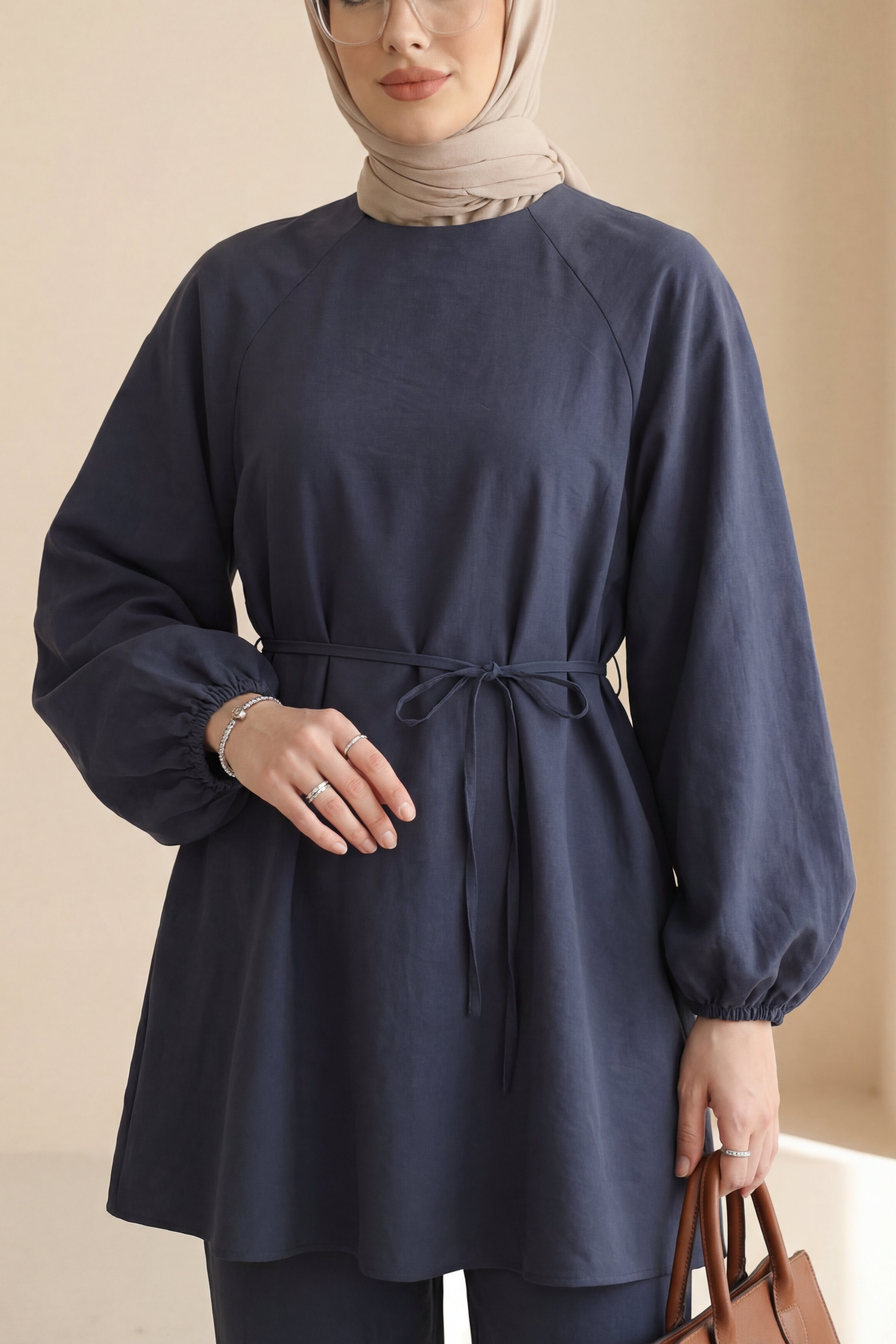 التونيك بياقة دائرية ومشد عند الخصر وأكمام بالون يقدم تصميمًا مريحًا وأنيقًا. يضيف مشد الخصر لمسة من الأناقة مع تشكيل الجسم، بينما تضيف الأكمام بالون لمسة عصرية. مثالي للاستخدام اليومي، يتيح لكِ هذا التونيك إنشاء إطلالة أنيقة وديناميكية مع العديد من التنسيقات.