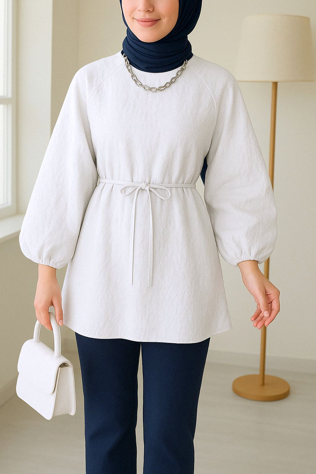 التونيك بياقة دائرية ومشد عند الخصر وأكمام بالون يقدم تصميمًا مريحًا وأنيقًا. يضيف مشد الخصر لمسة من الأناقة مع تشكيل الجسم، بينما تضيف الأكمام بالون لمسة عصرية. مثالي للاستخدام اليومي، يتيح لكِ هذا التونيك إنشاء إطلالة أنيقة وديناميكية مع العديد من التنسيقات.