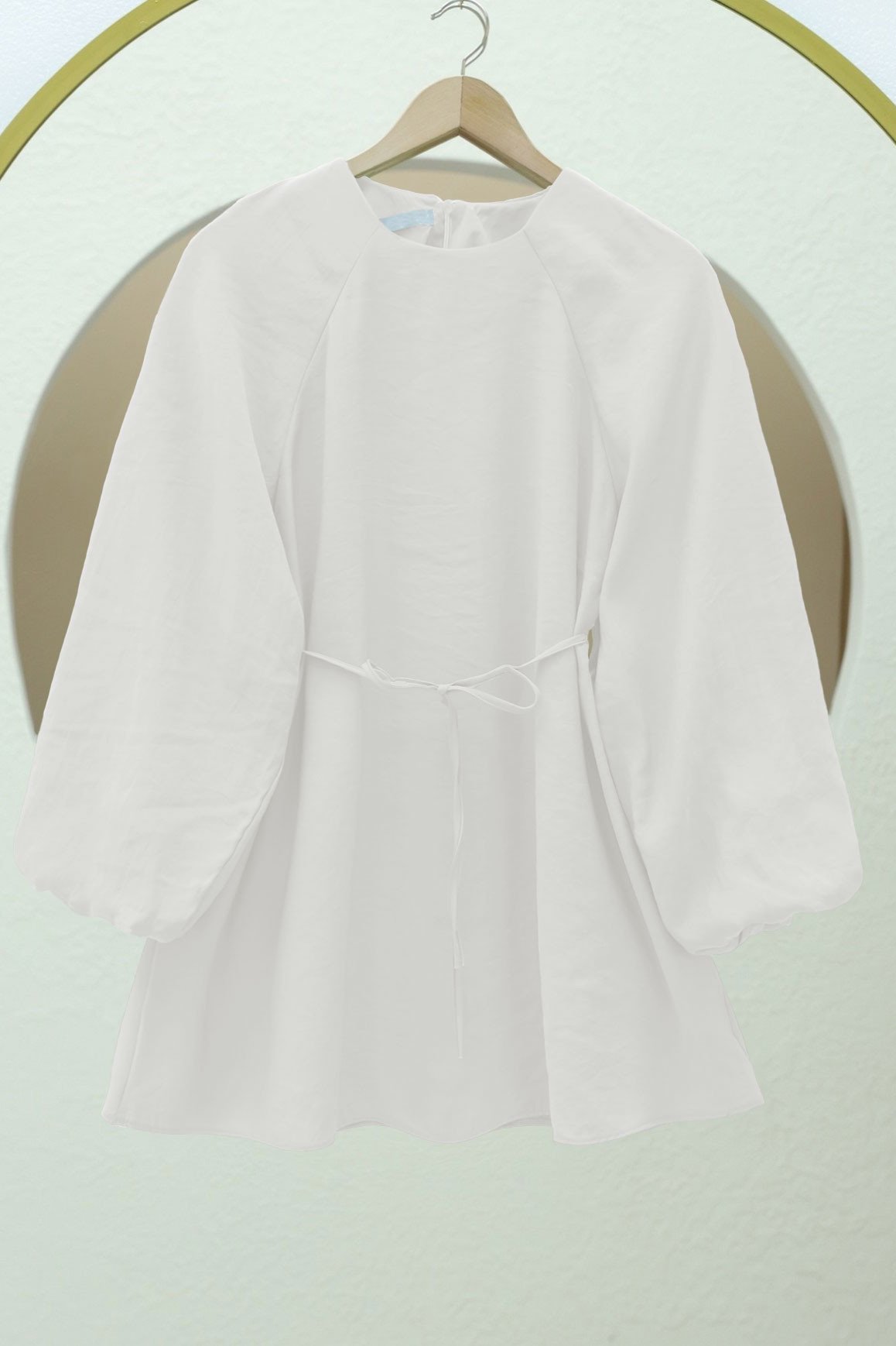 جولة الرقبة الخصر الدانتيل الأكمام سترة تونك -أبيض