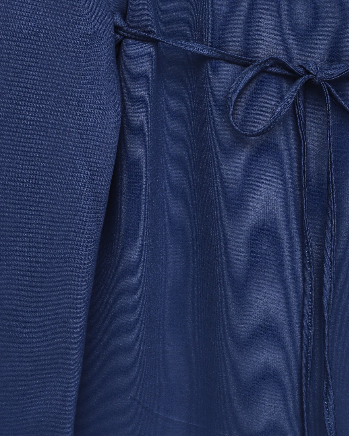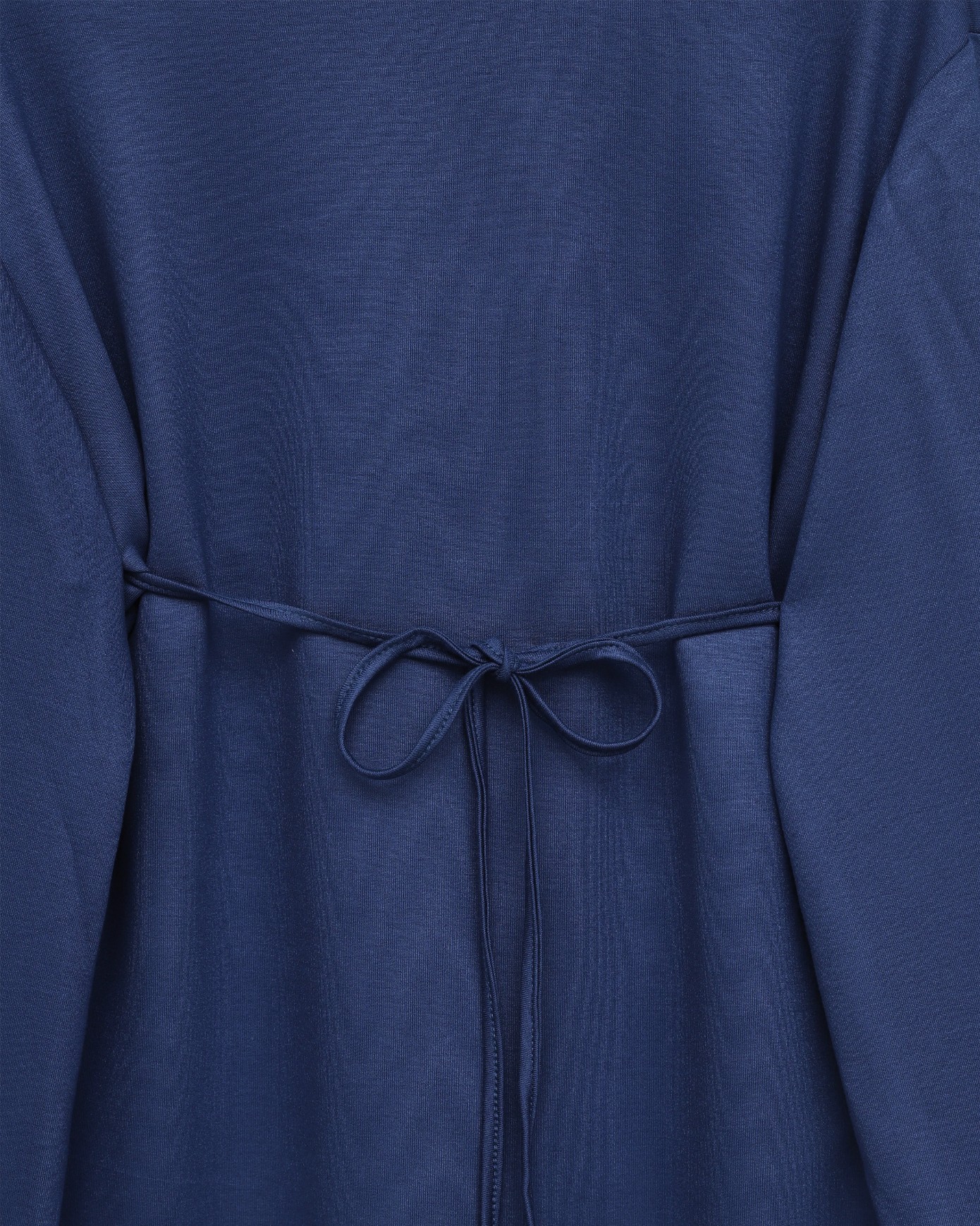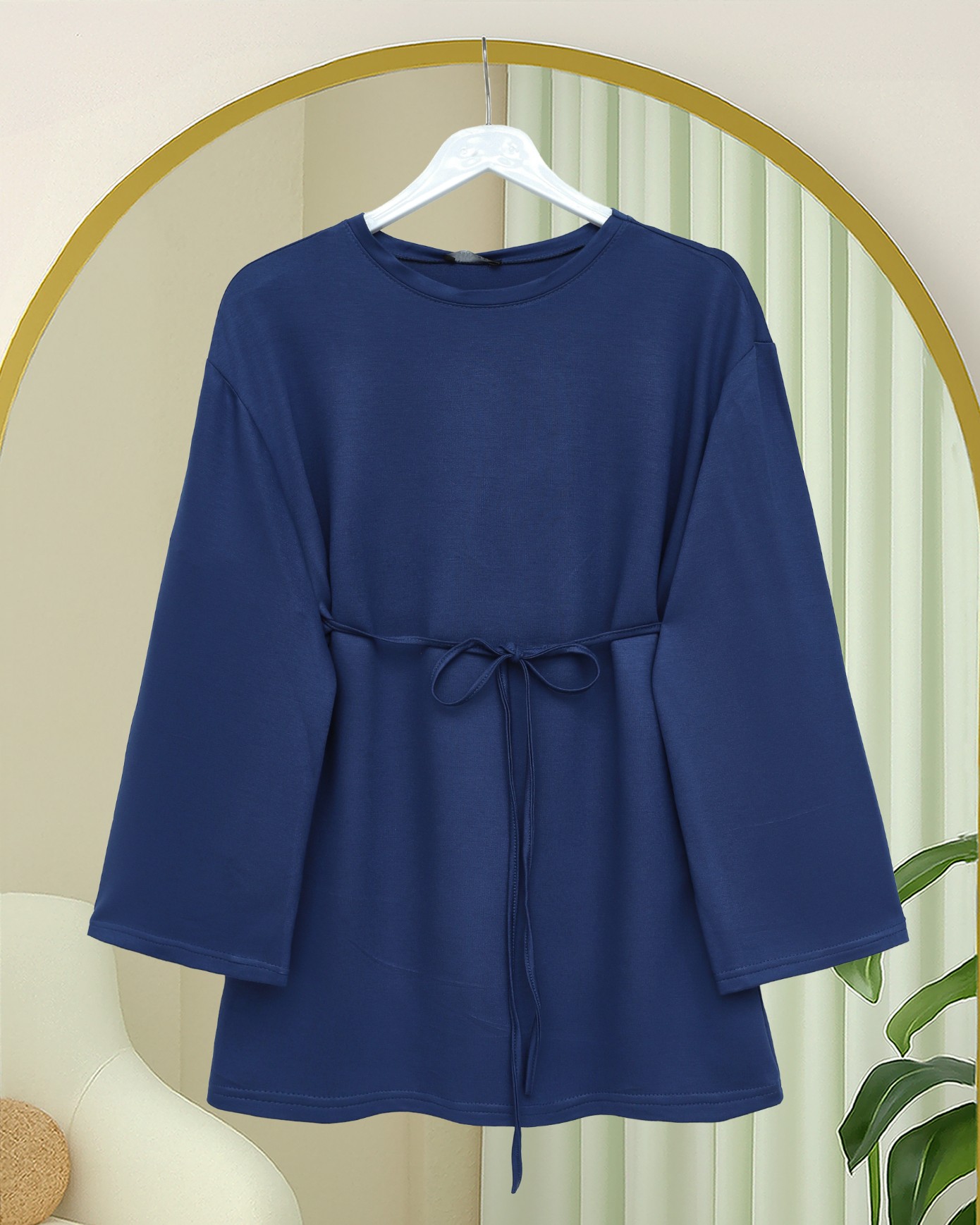 تونيك قطني ممشط برقبة دائرية وخصر مربوط -كحلي