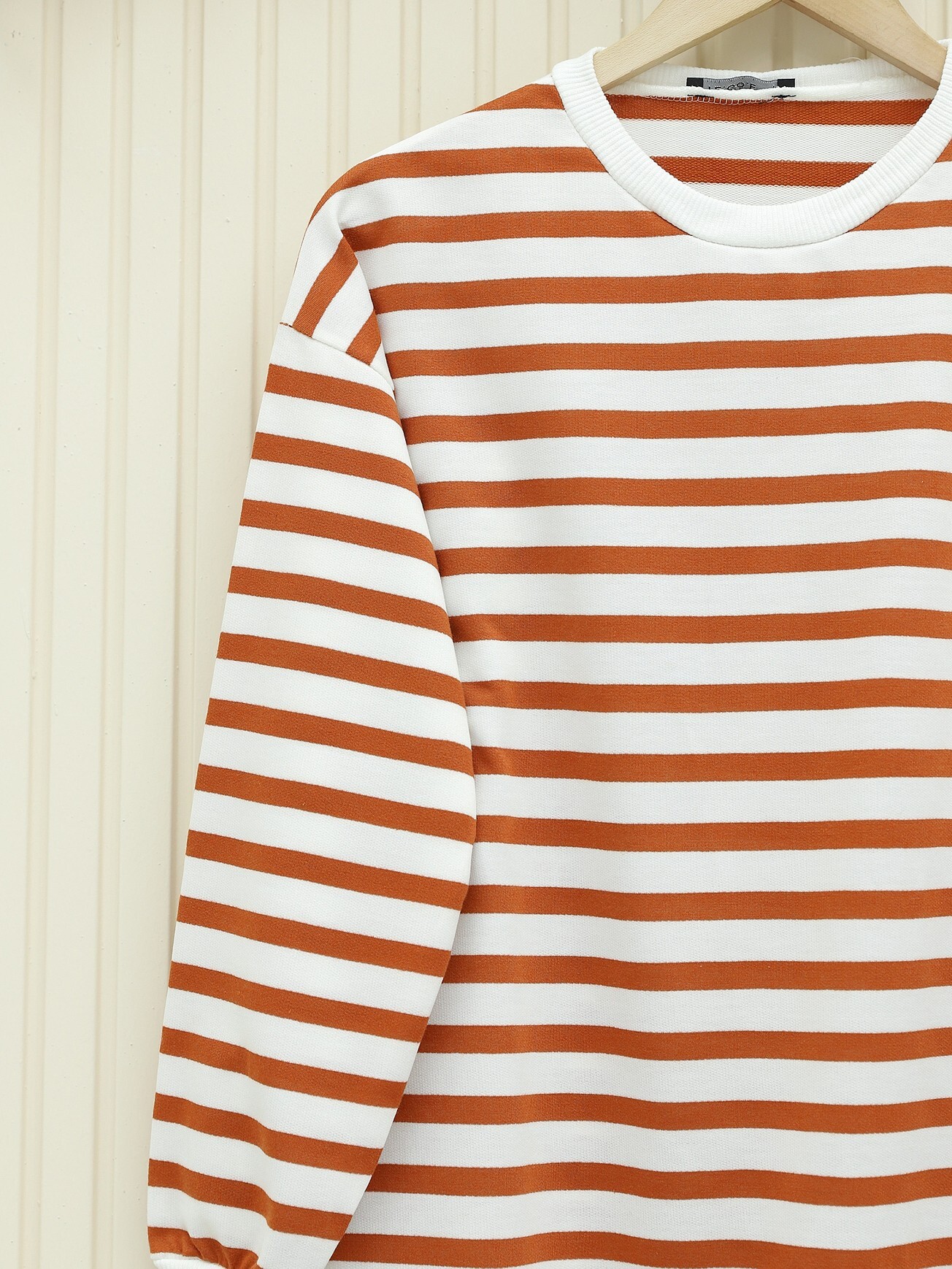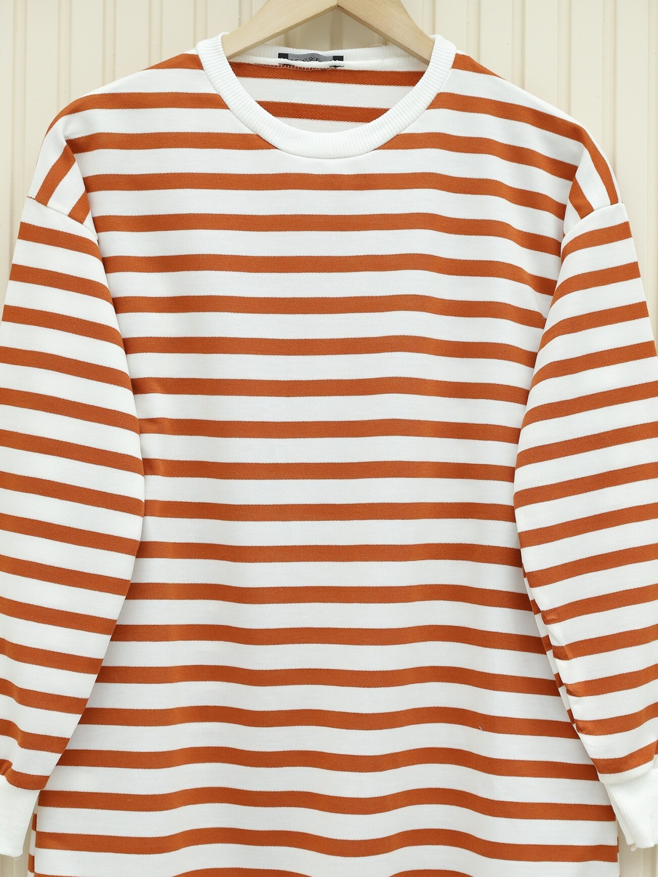 يعتبر موديل السترة ذات الرقبة الدائرية والمخططة والمزودة بتنورة مشقوقة من بين الموديلات الأكثر شعبية للموسم الجديد.