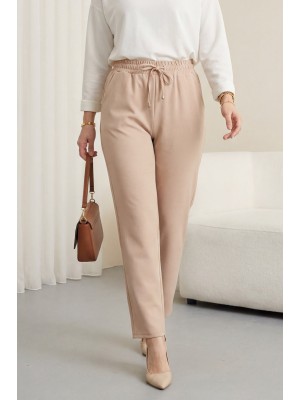 بنطلون بأرجل نحيفة مع دانتيل على الخصر -اللون البيج