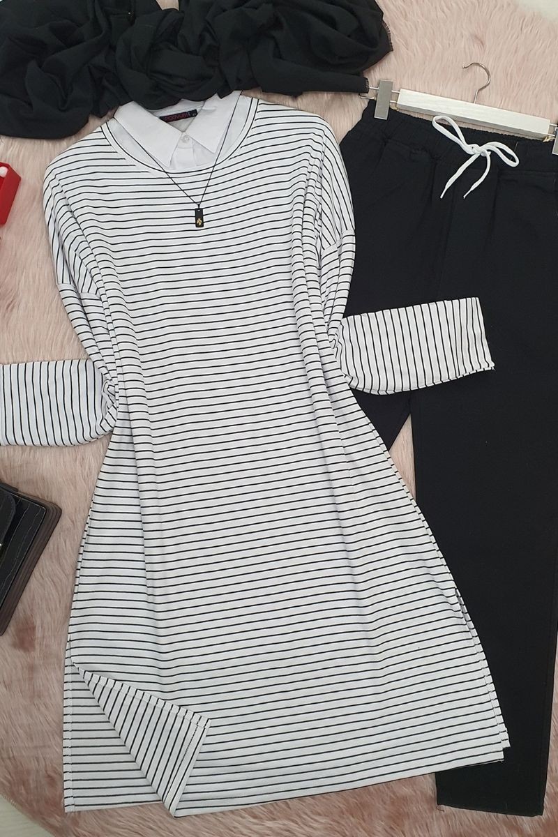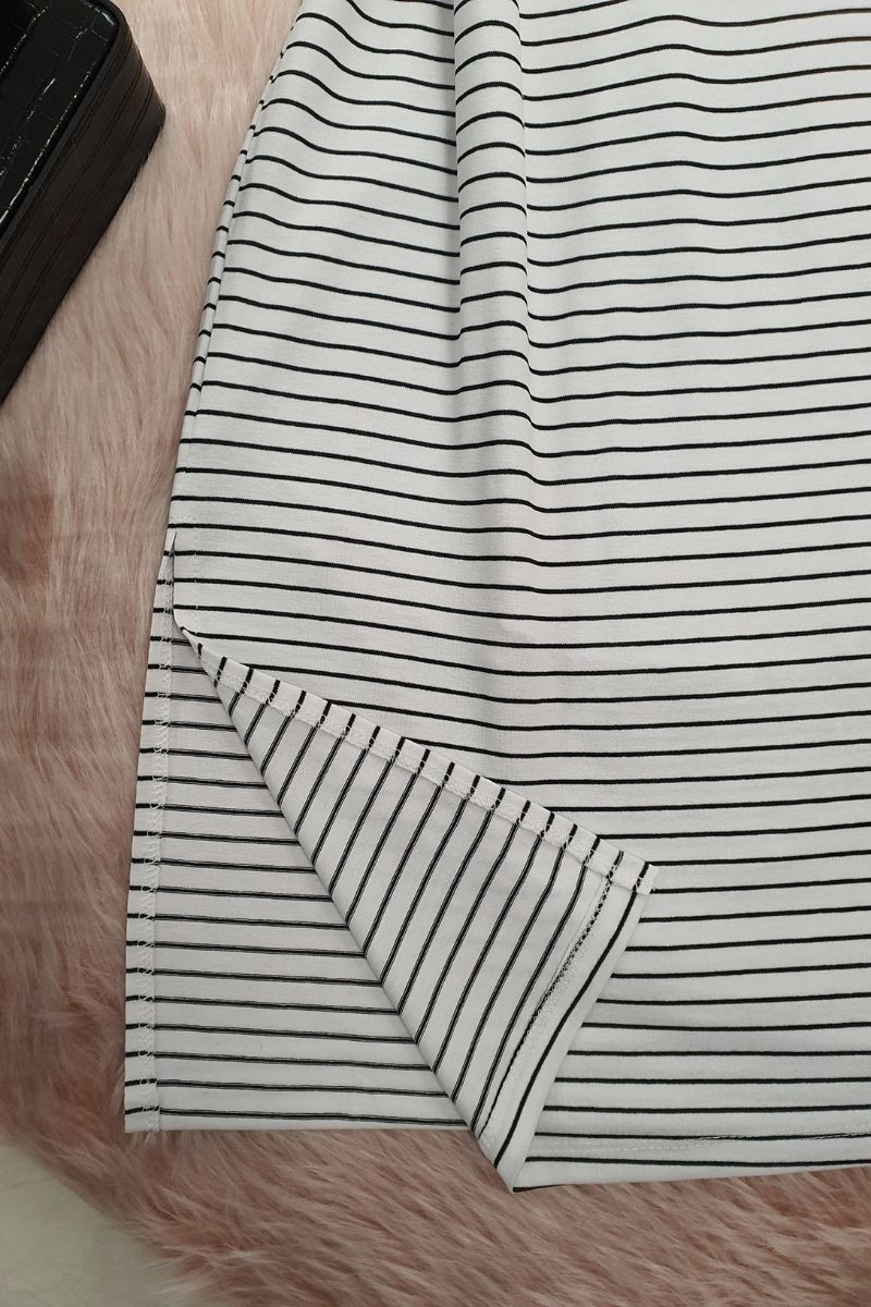 جاكيت طويل مخطط مع فتحات -أبيض