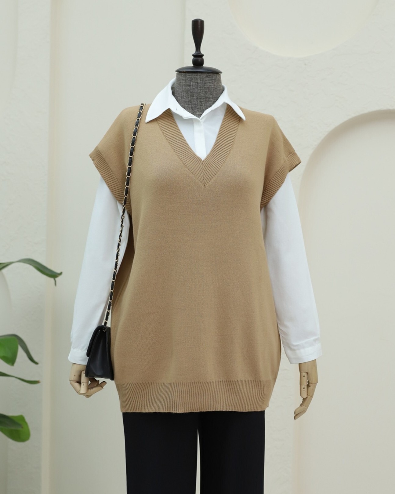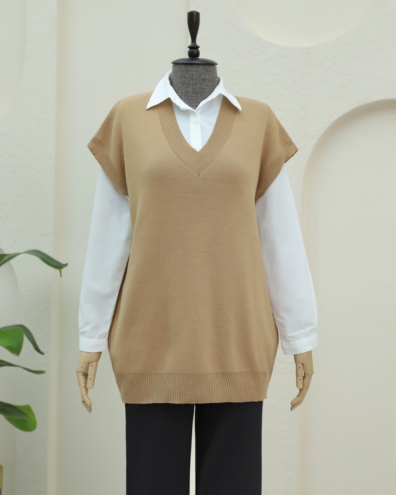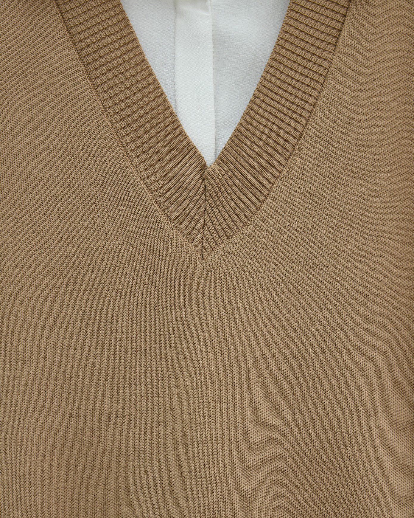 سترة محبوكة كبيرة الحجم برقبة على شكل حرف V -تدرجات البيج