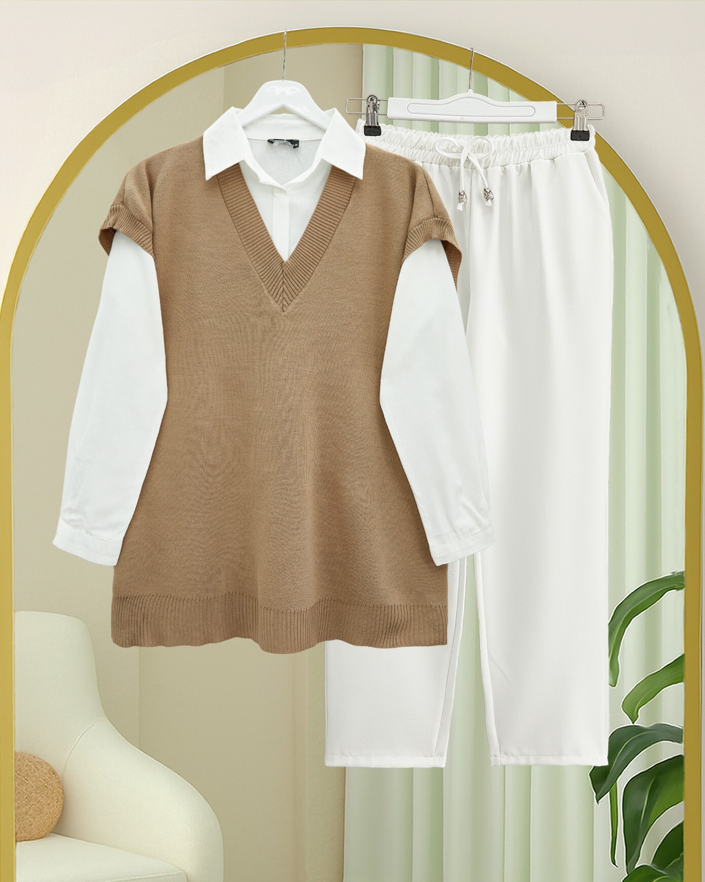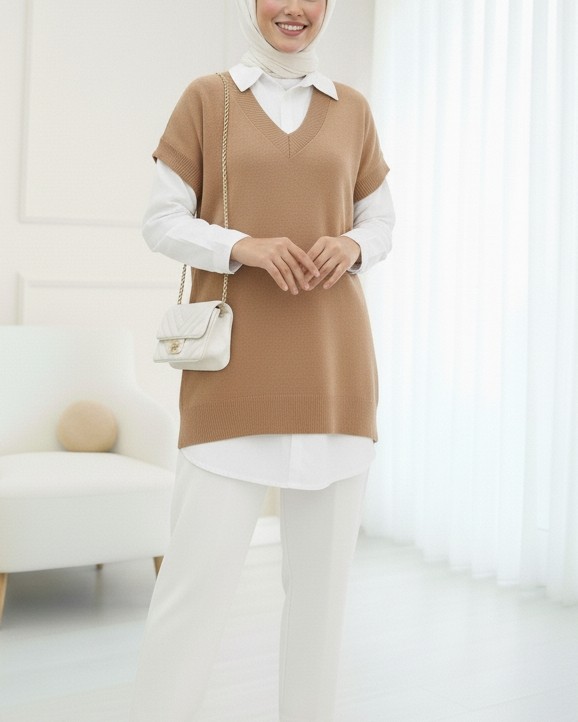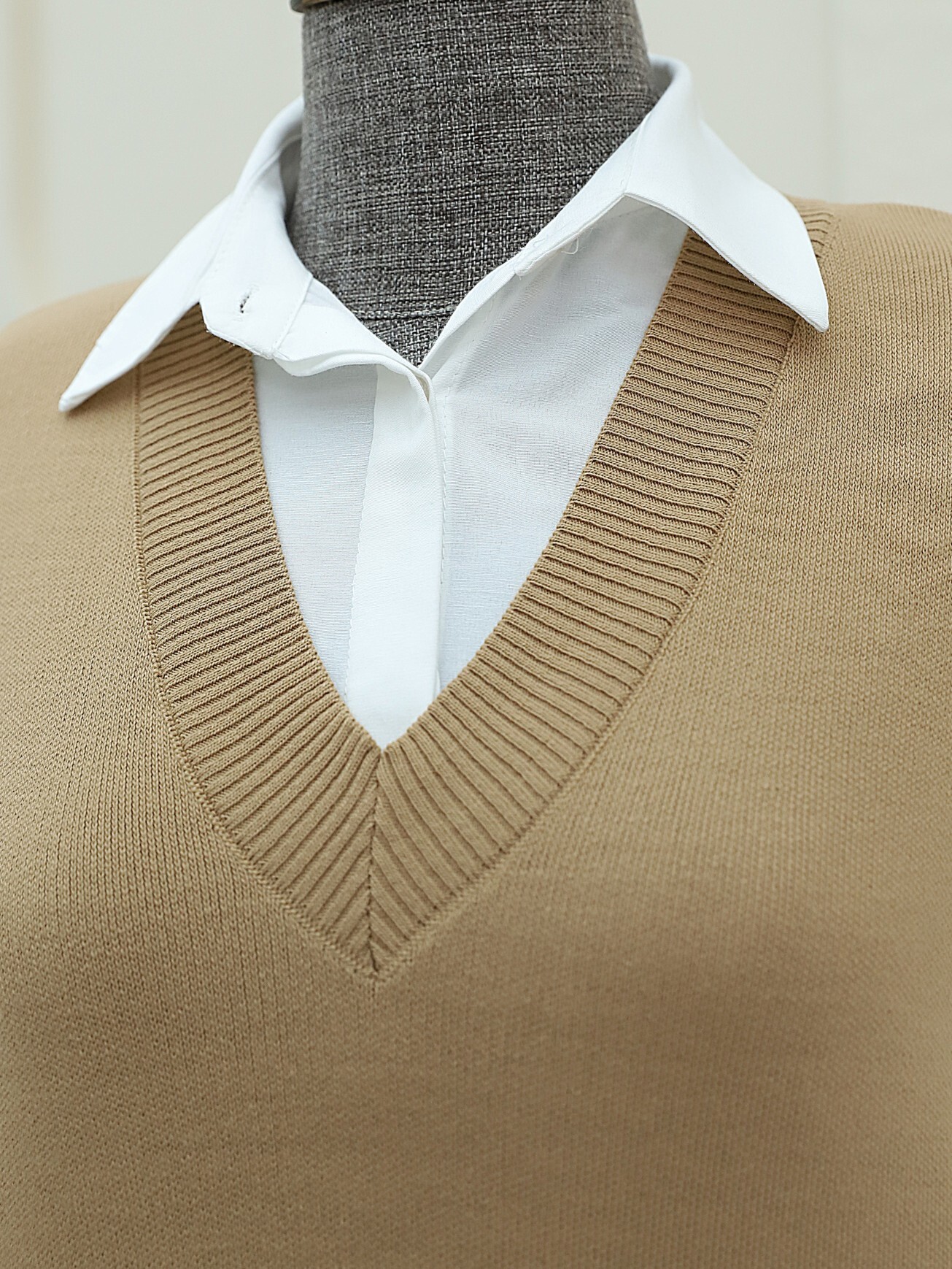 سترة محبوكة كبيرة الحجم برقبة على شكل حرف V -تدرجات البيج