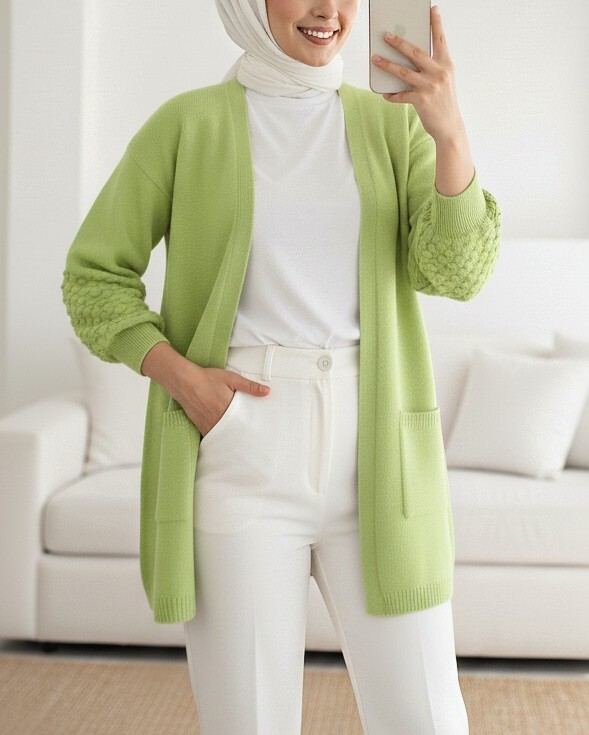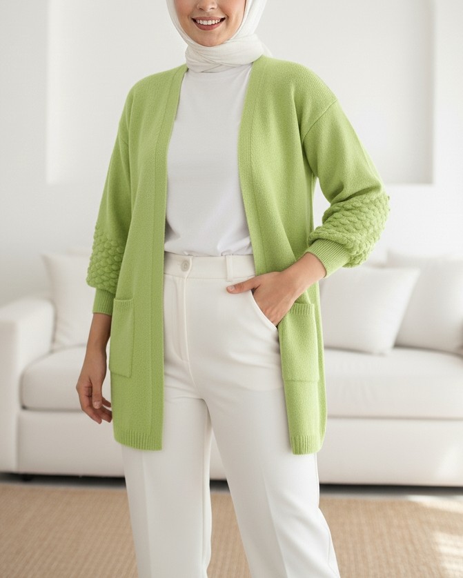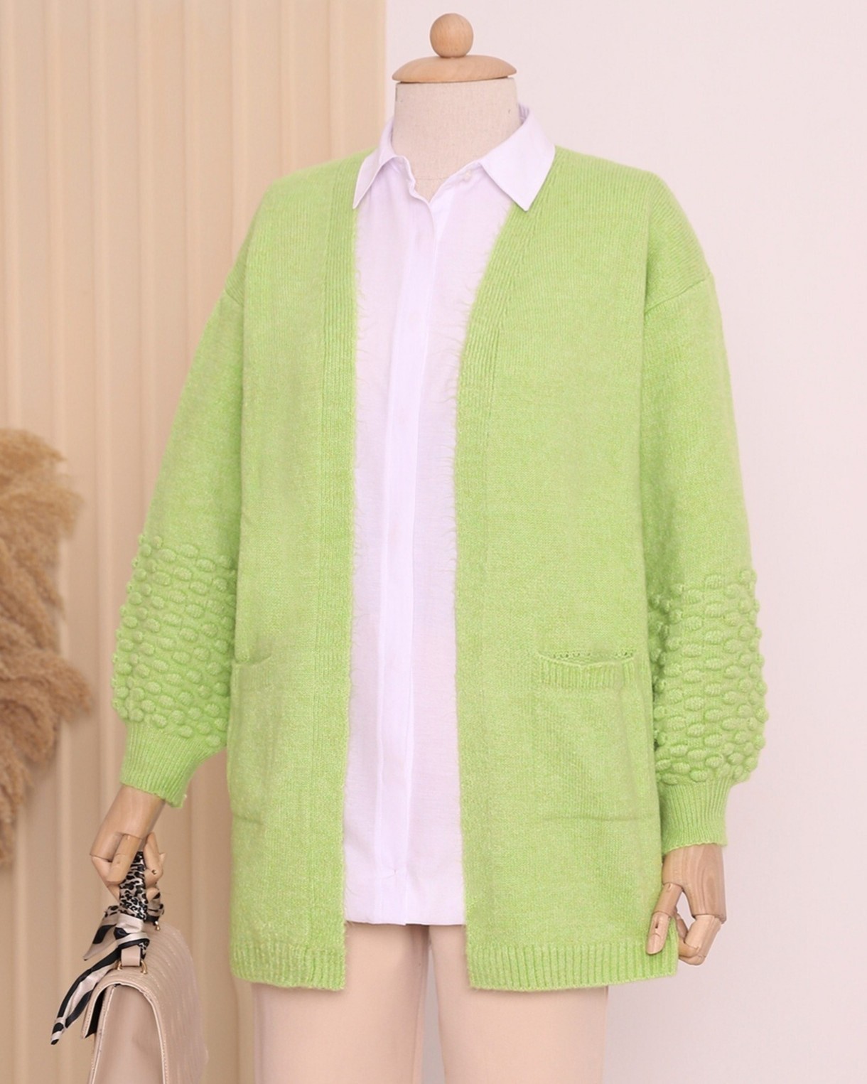كارديجان بجيب بومب بأكمام بالون -الفستق الأخضر