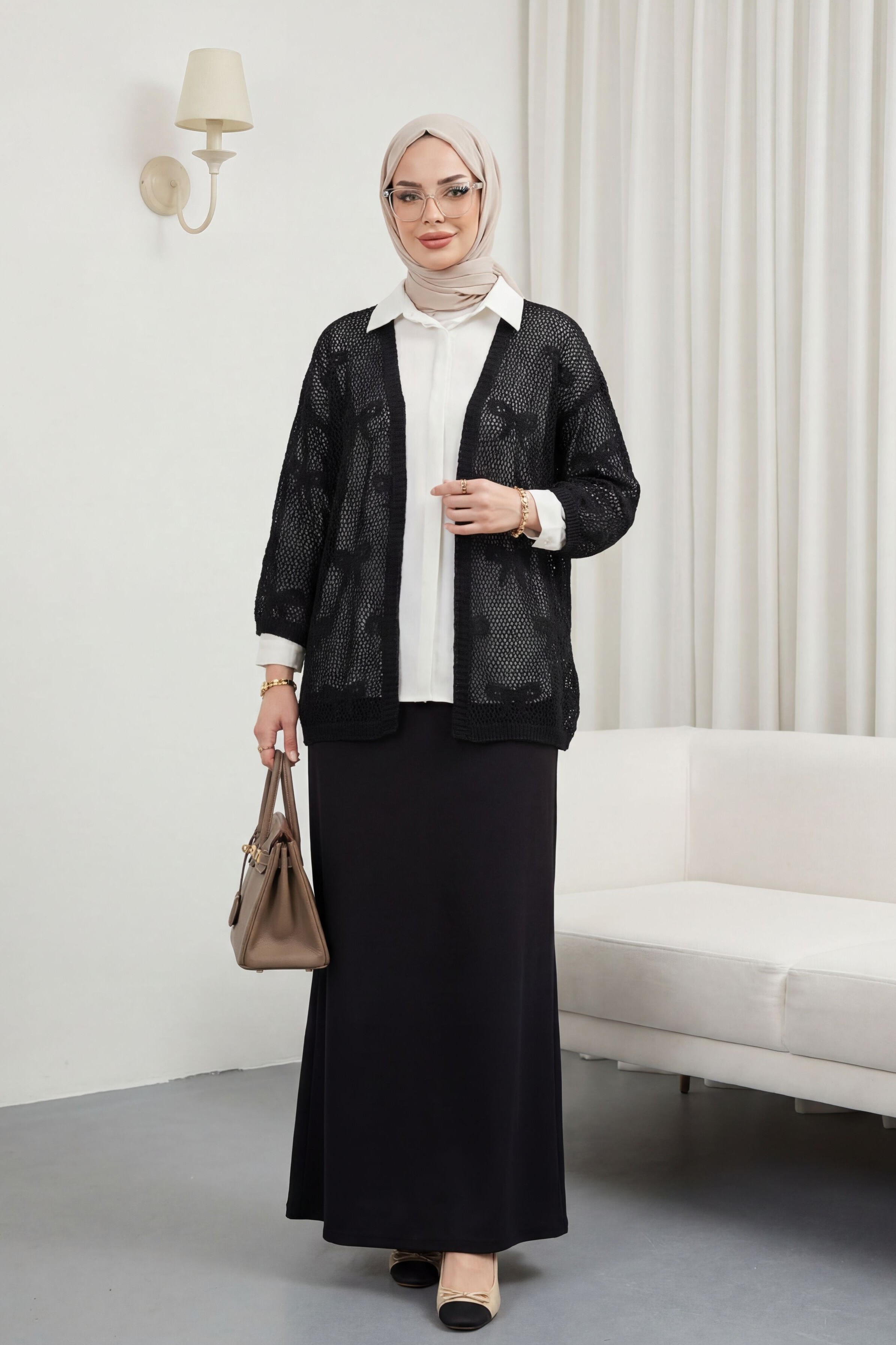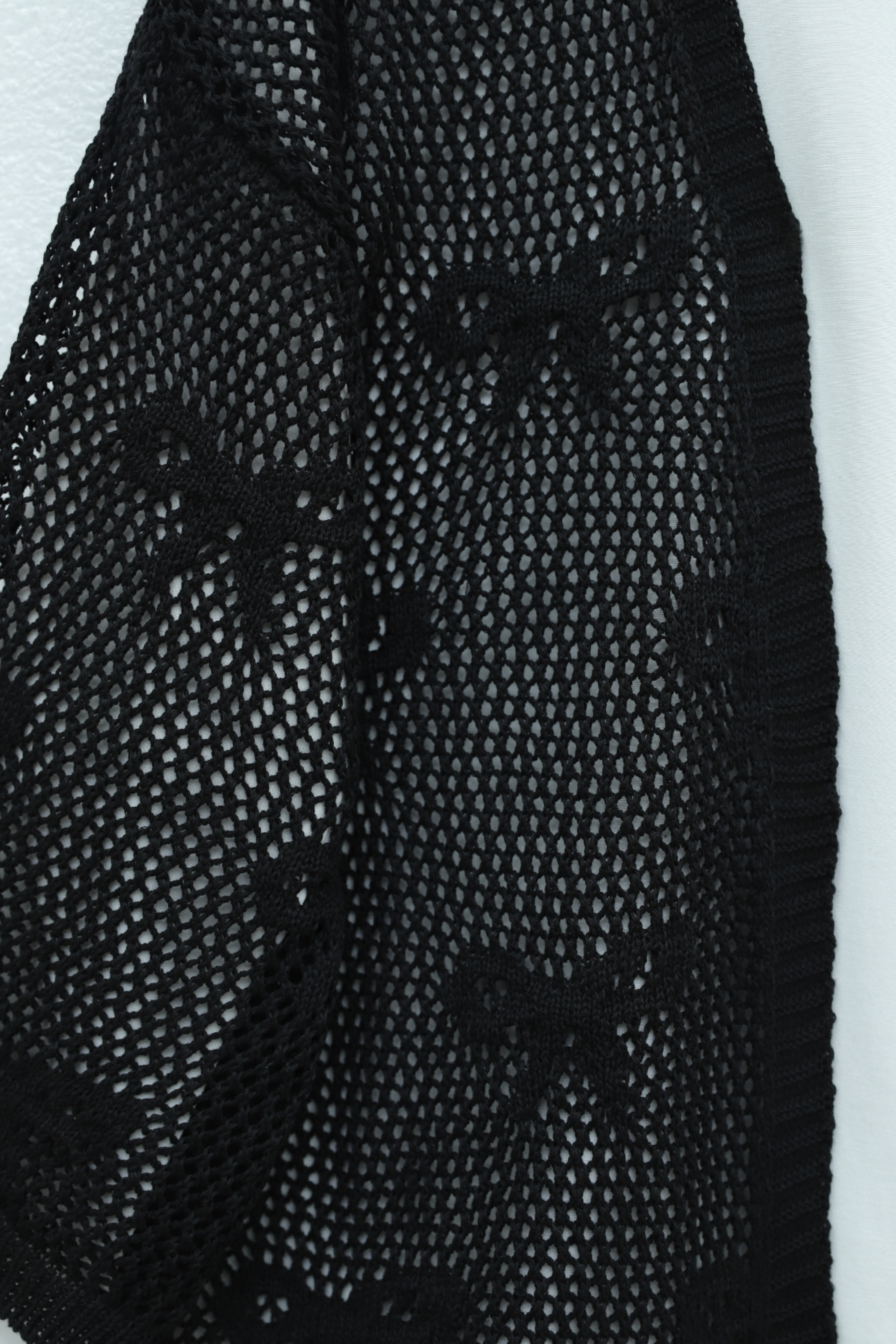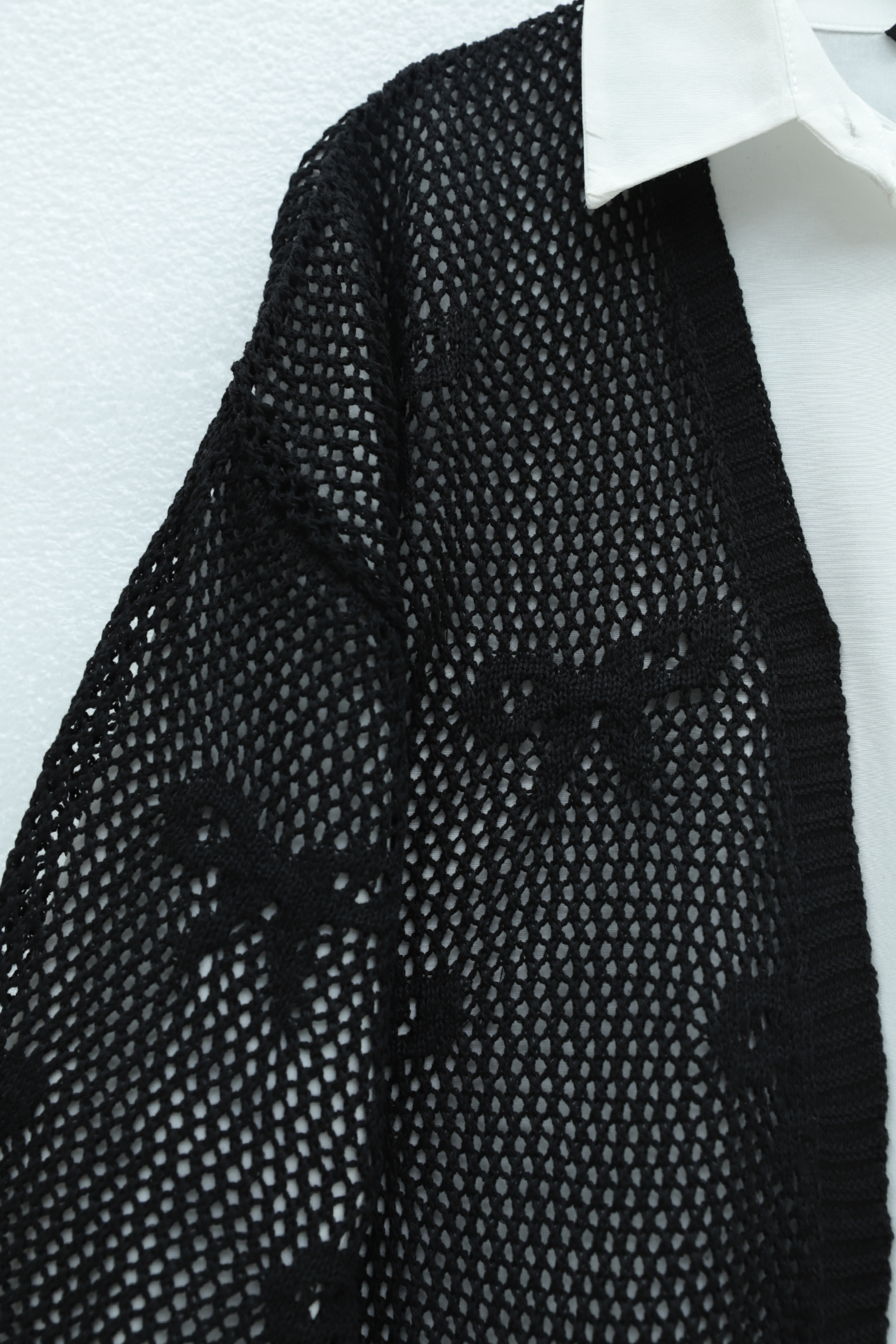 كارديجان محبوك مفتوح بنقشة فيونكة -أسود
