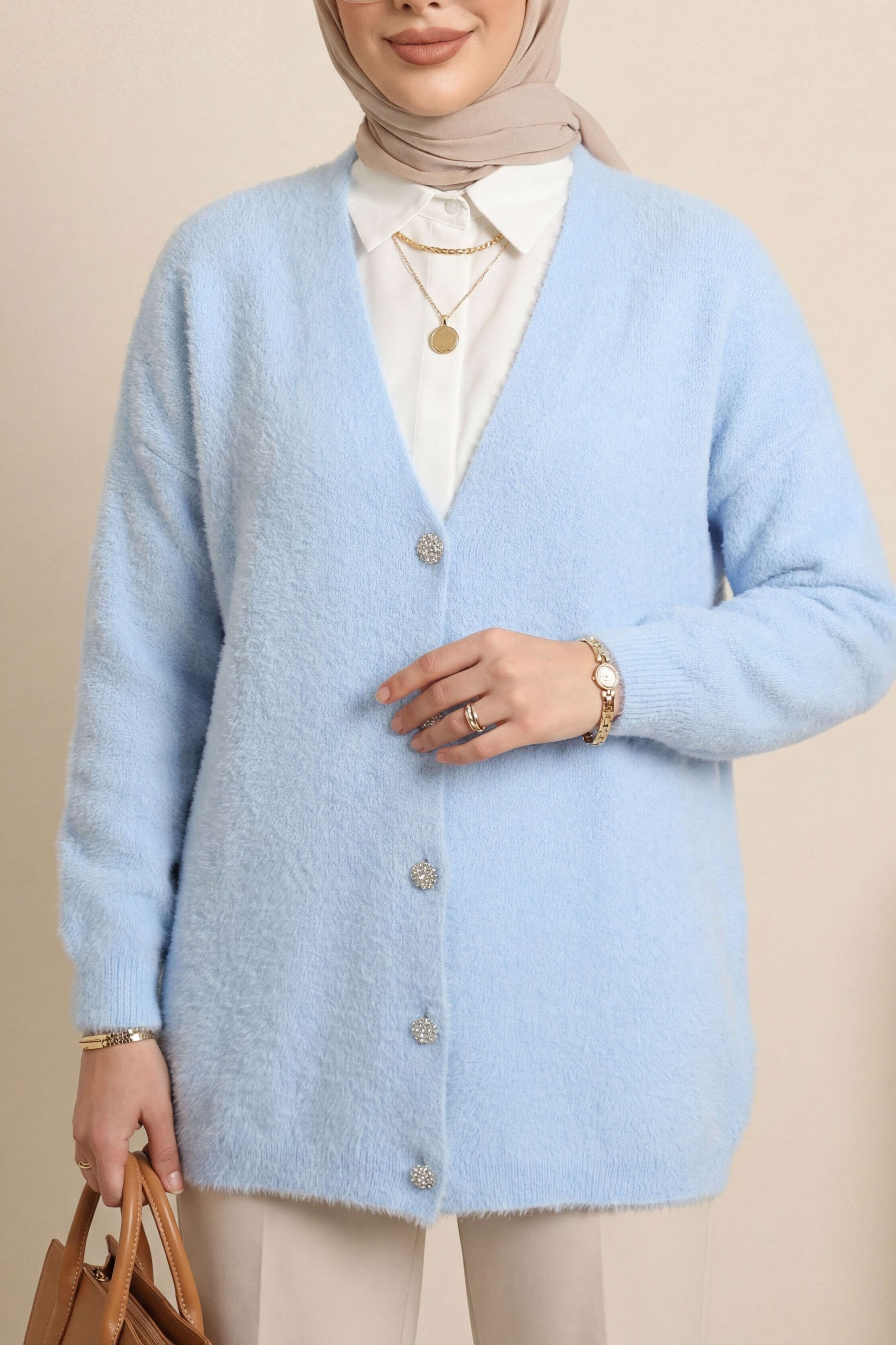 بنطال جينز بخصر مرتفع وواسع من الأسفل -أزرق فاتح