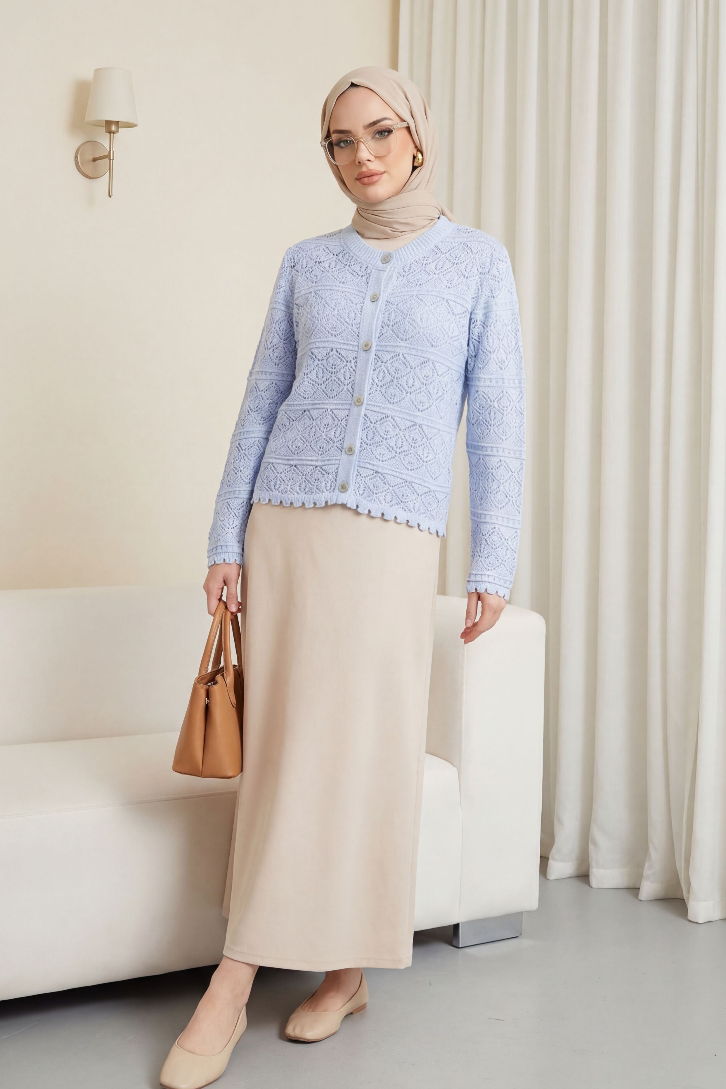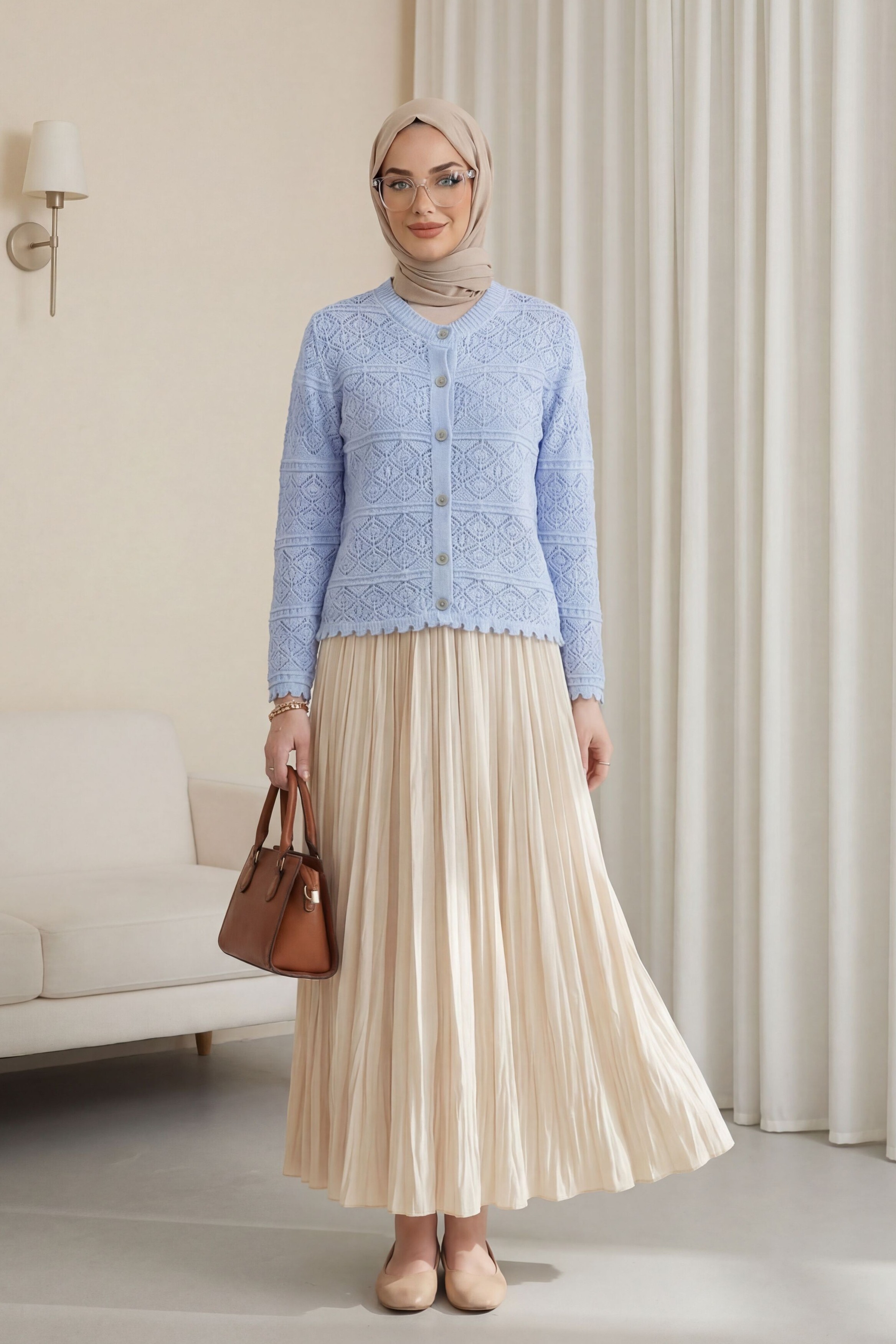 كارديجان محبوك مفتوح بأزرار -ريشي