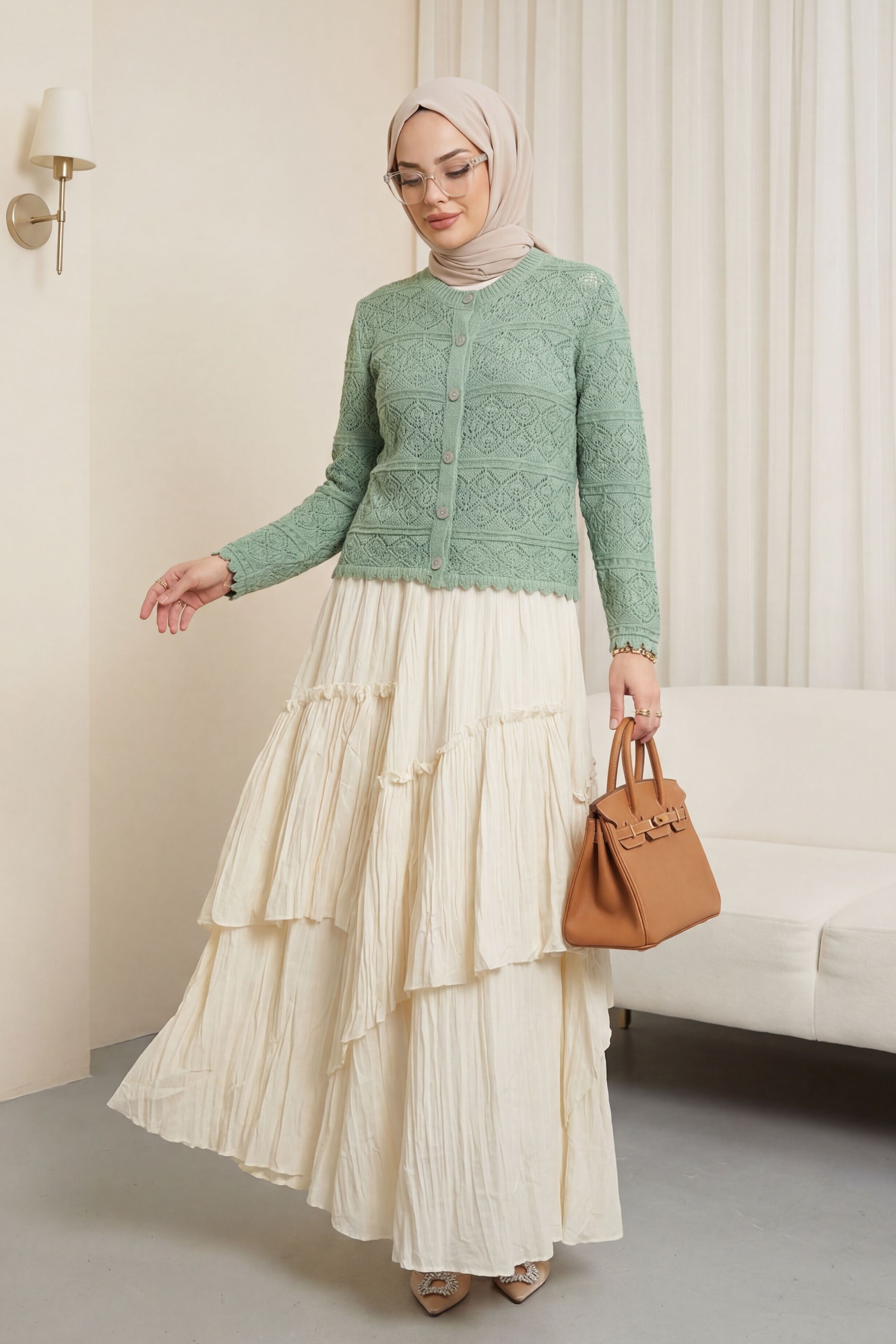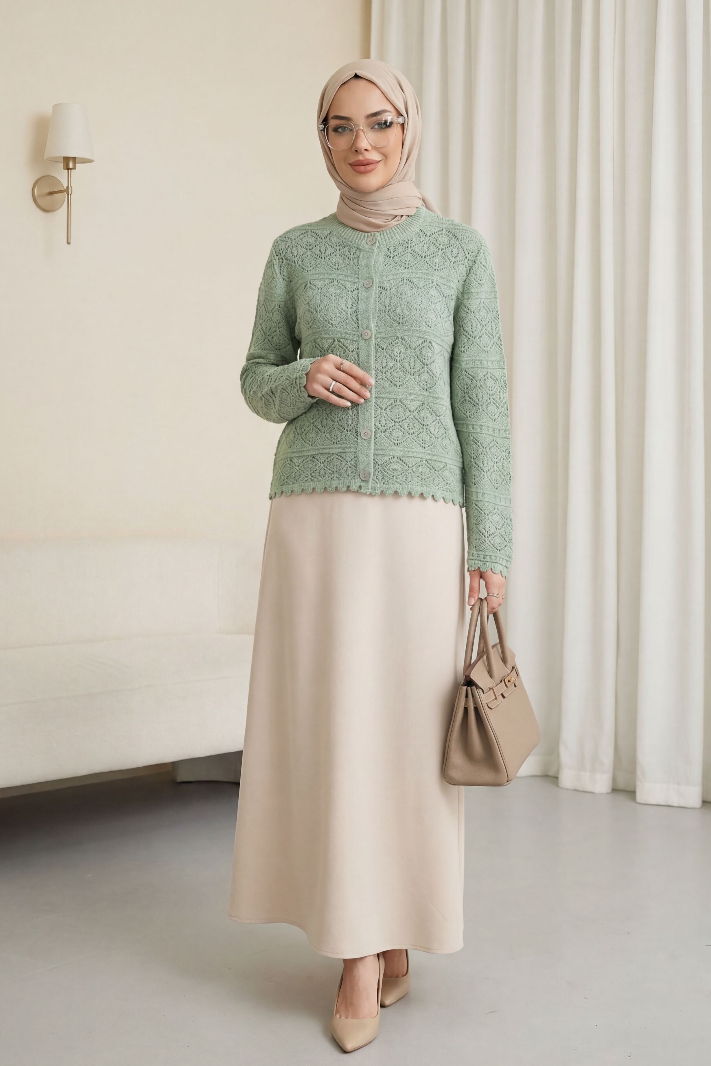 كارديجان محبوك مفتوح بأزرار -لون النعناع