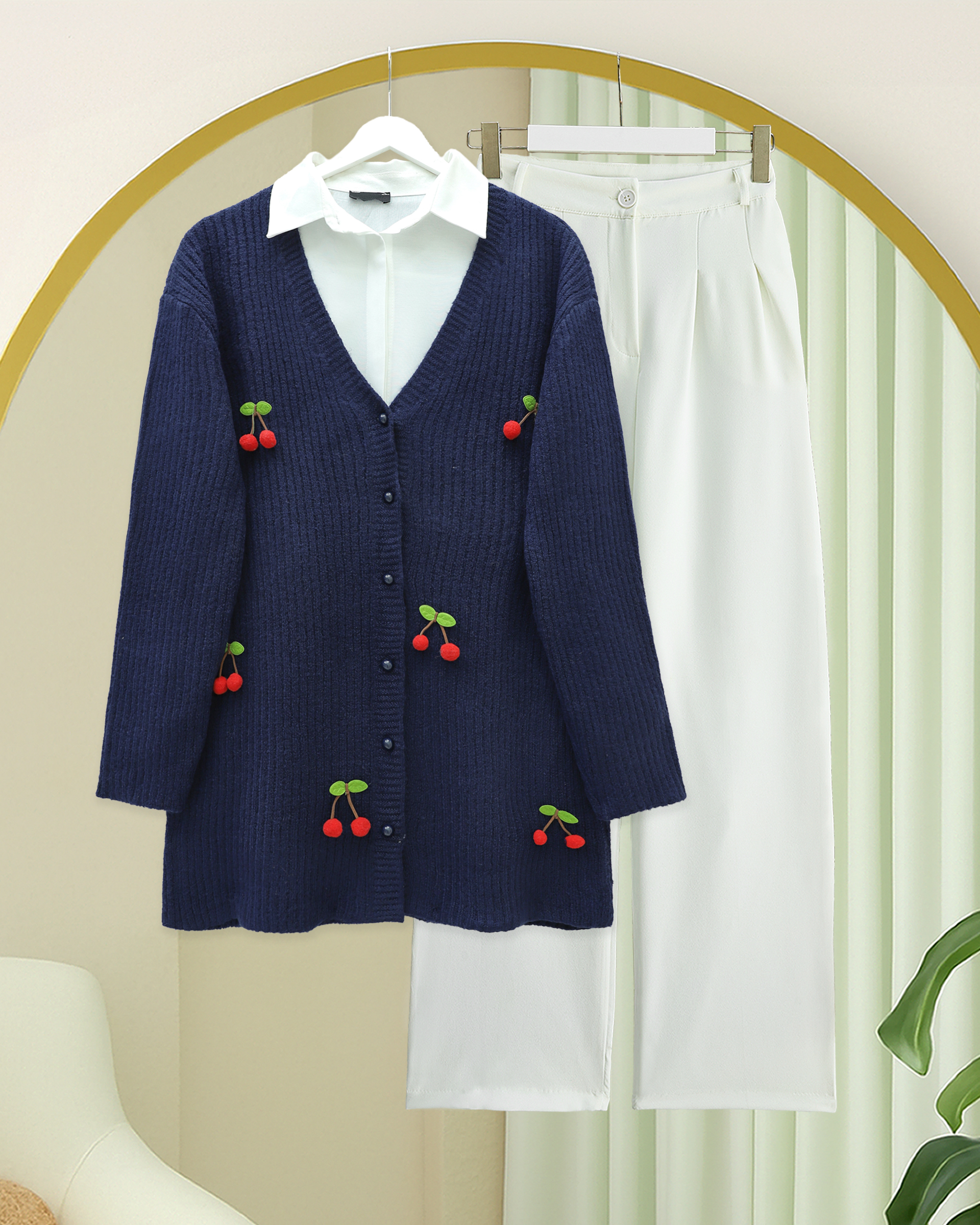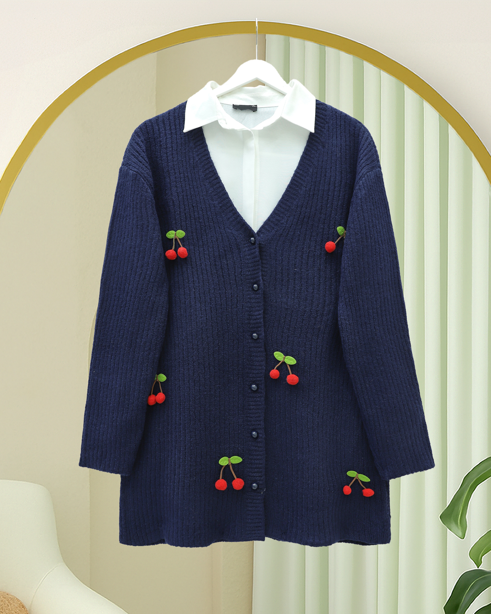 كارديجان محبوك بأزرار من أعلى الكرز -كحلي