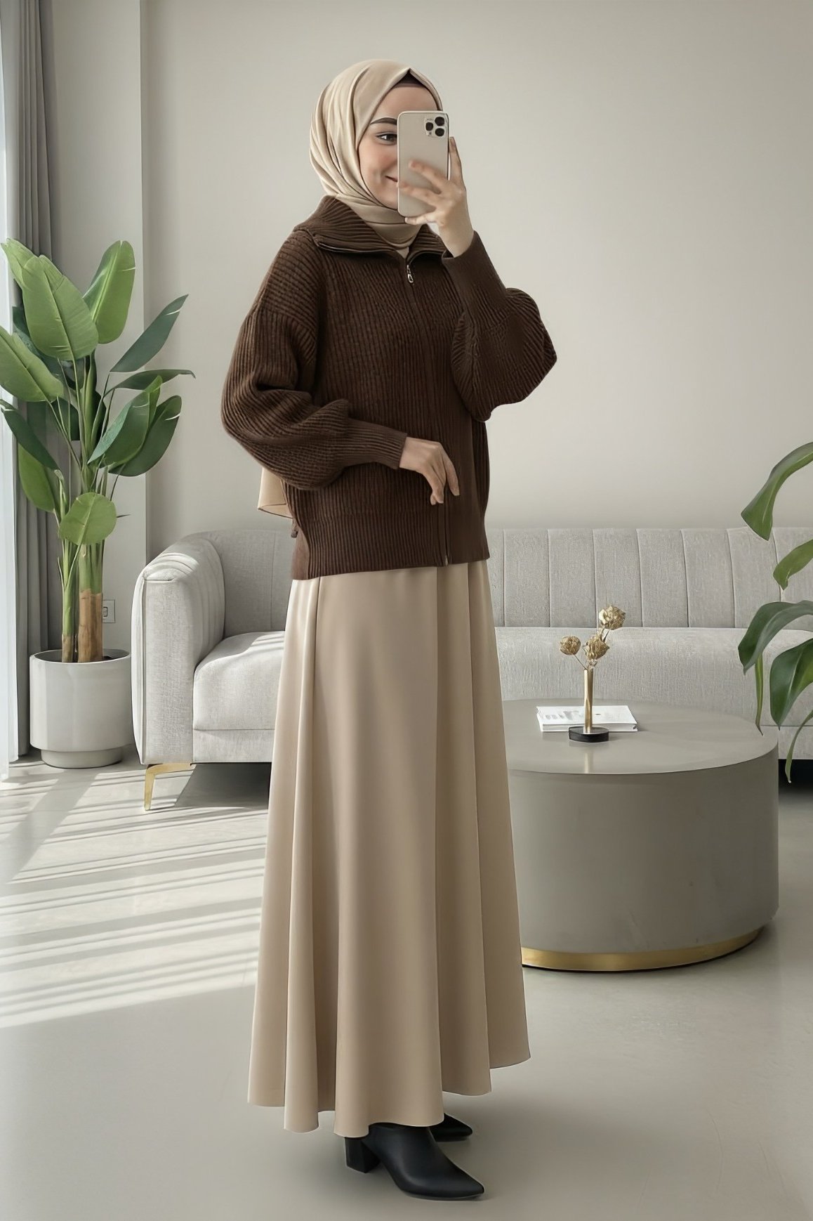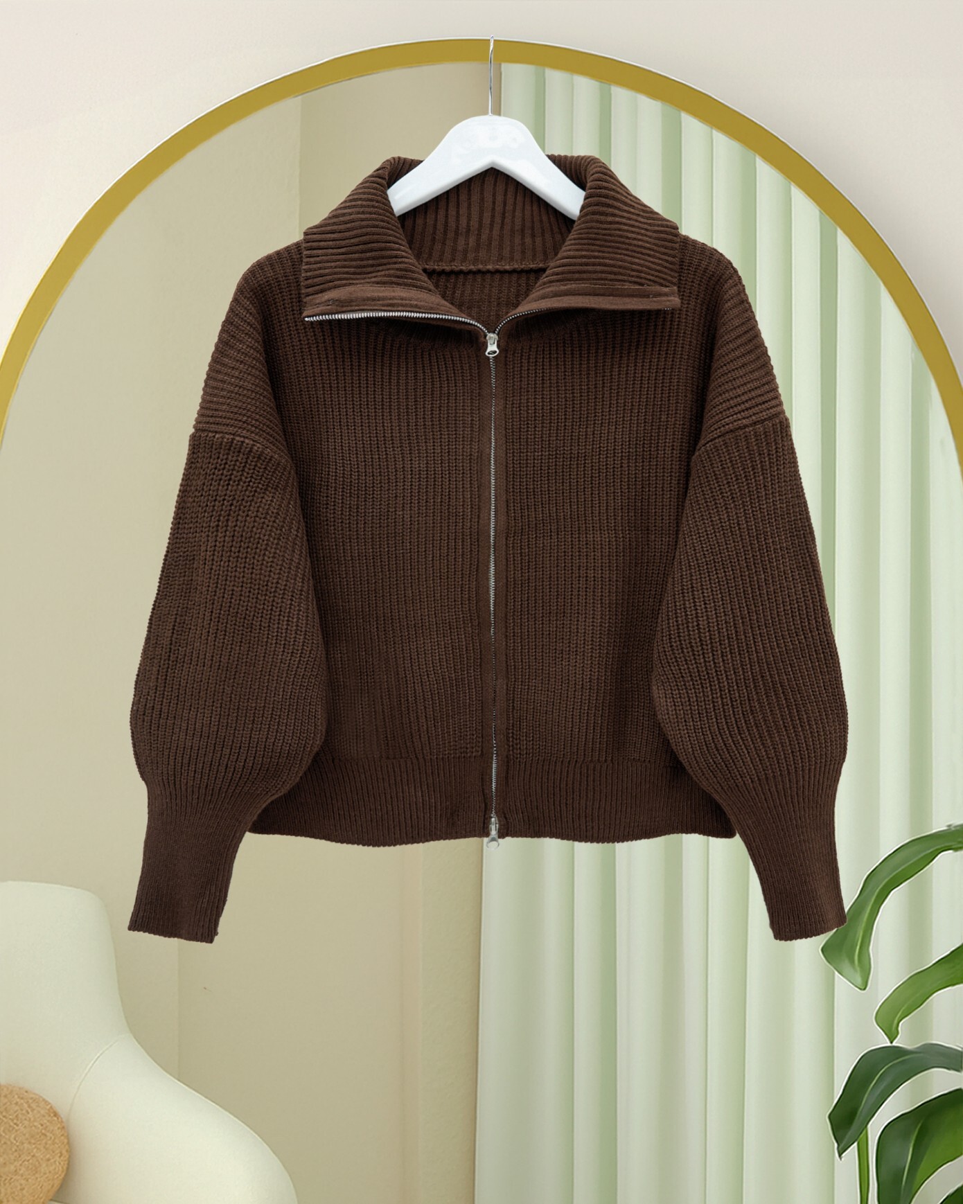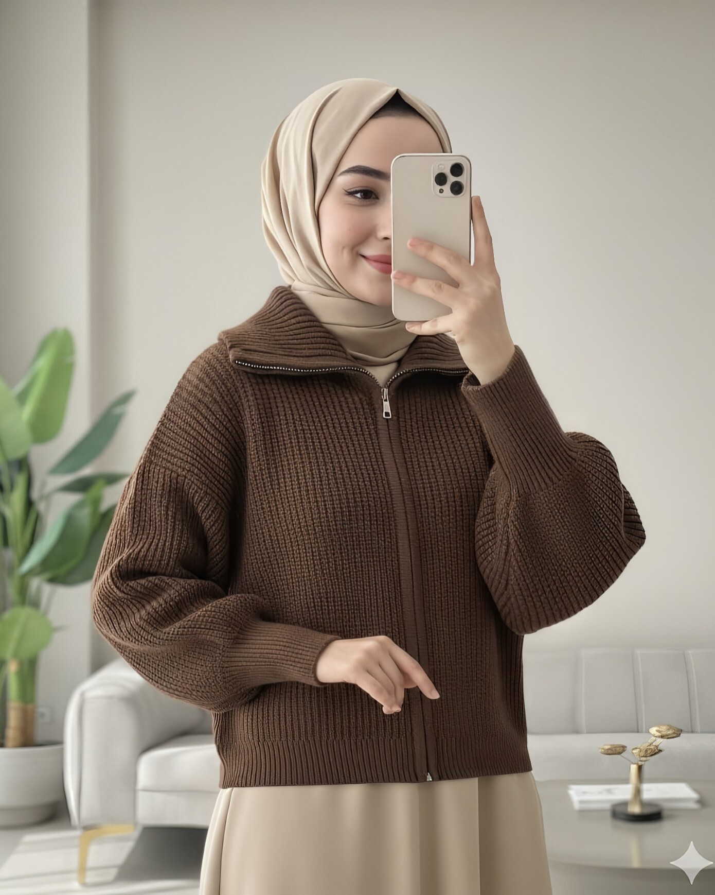 كارديجان محبوك بسحاب ونصف رقبة -بنى