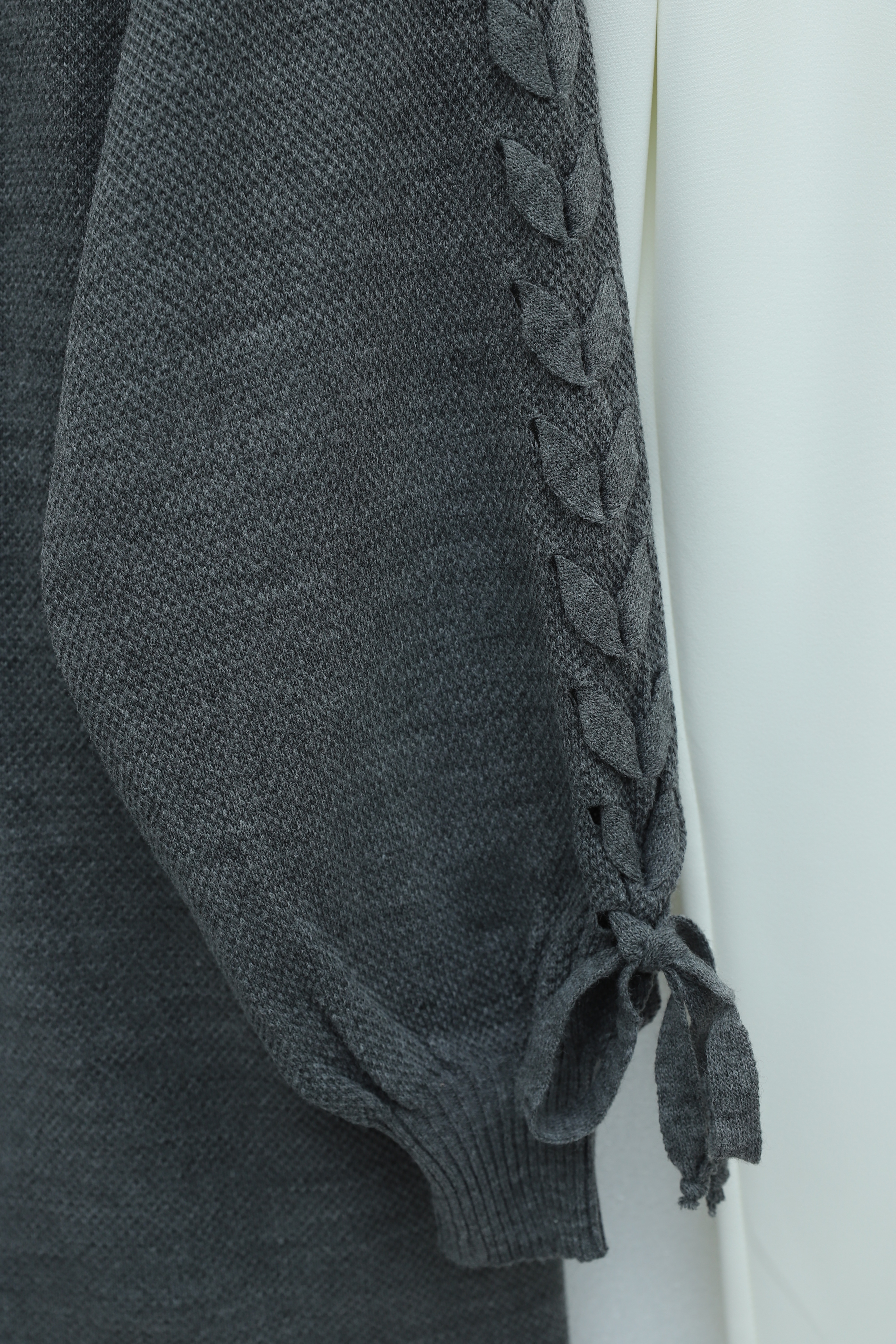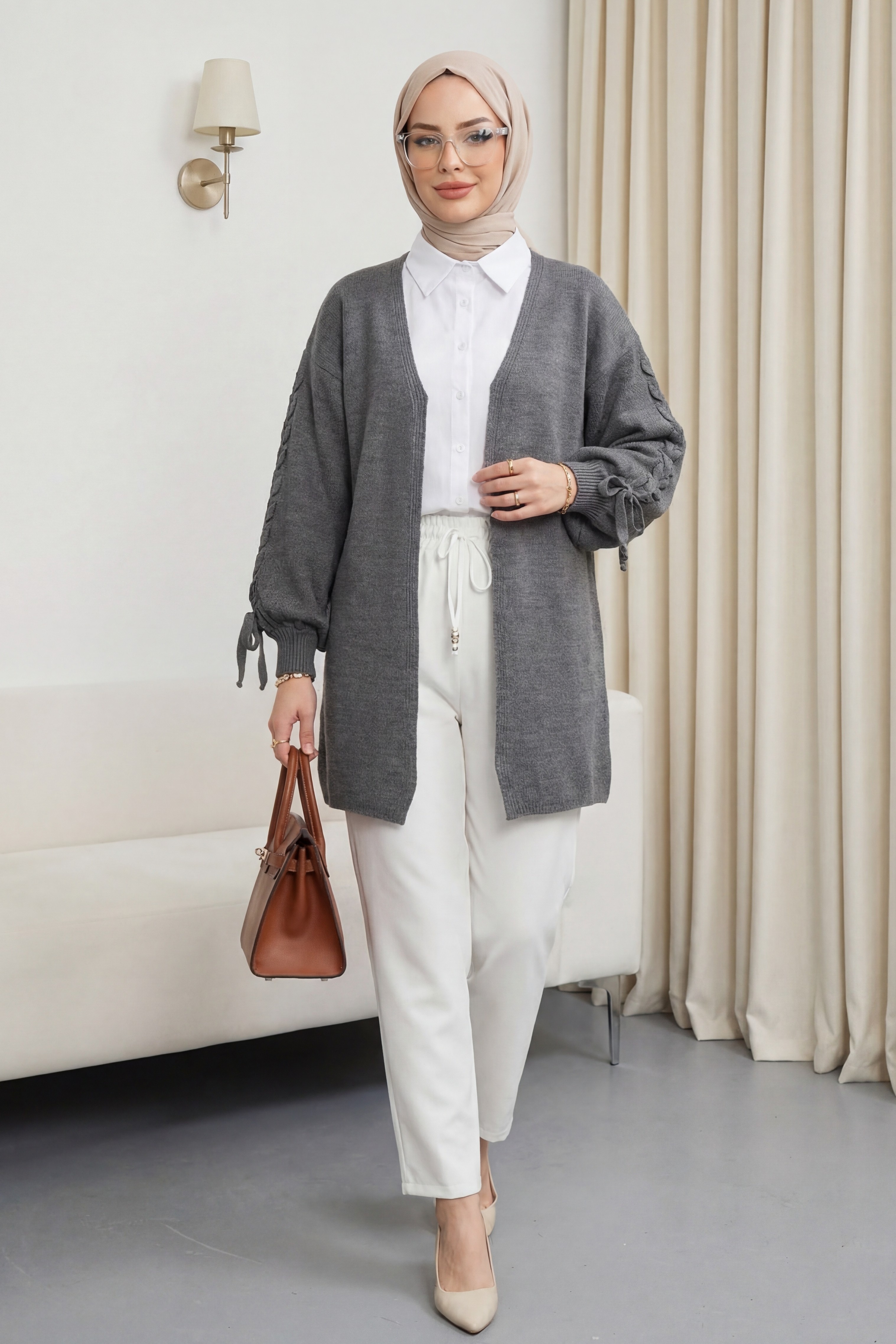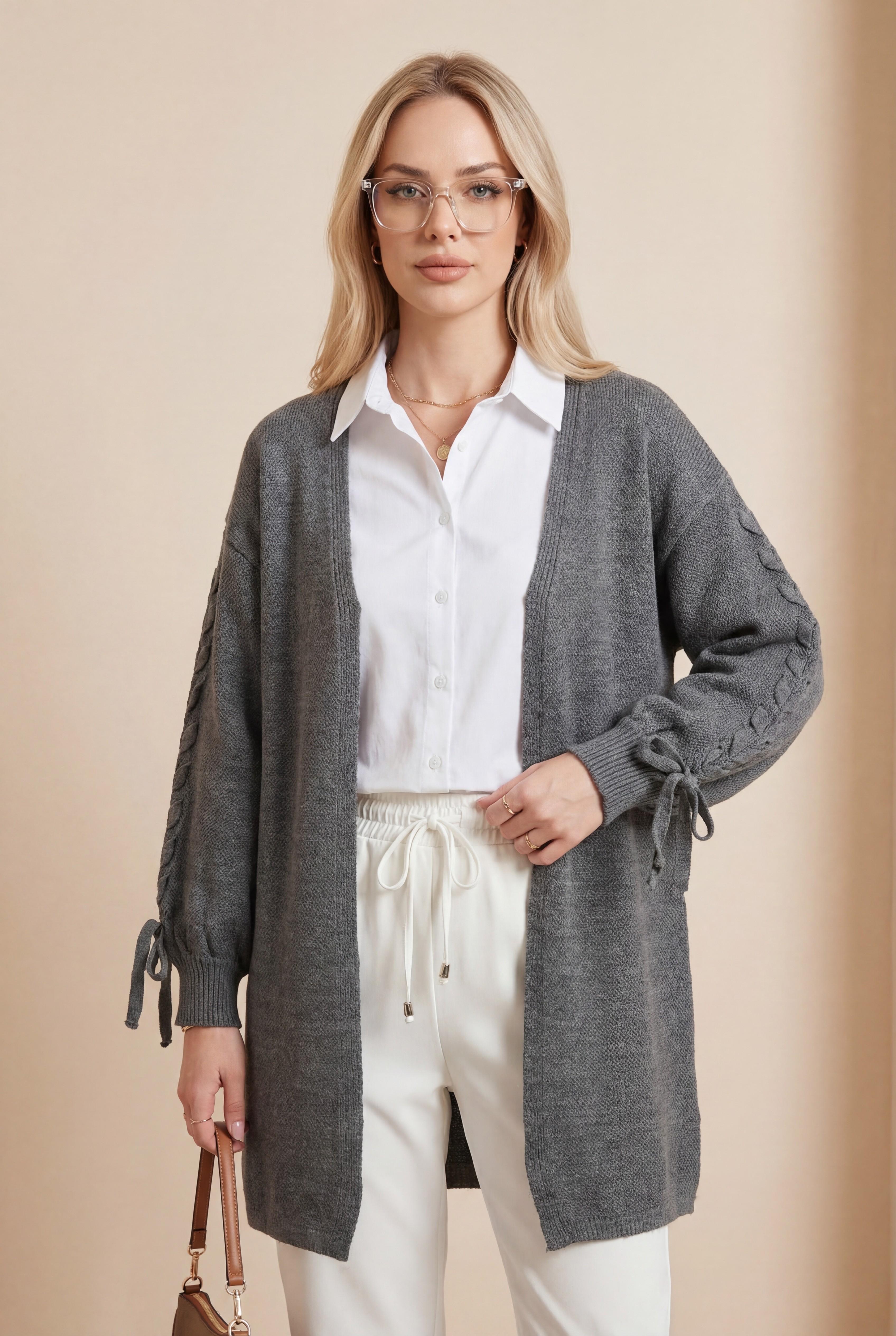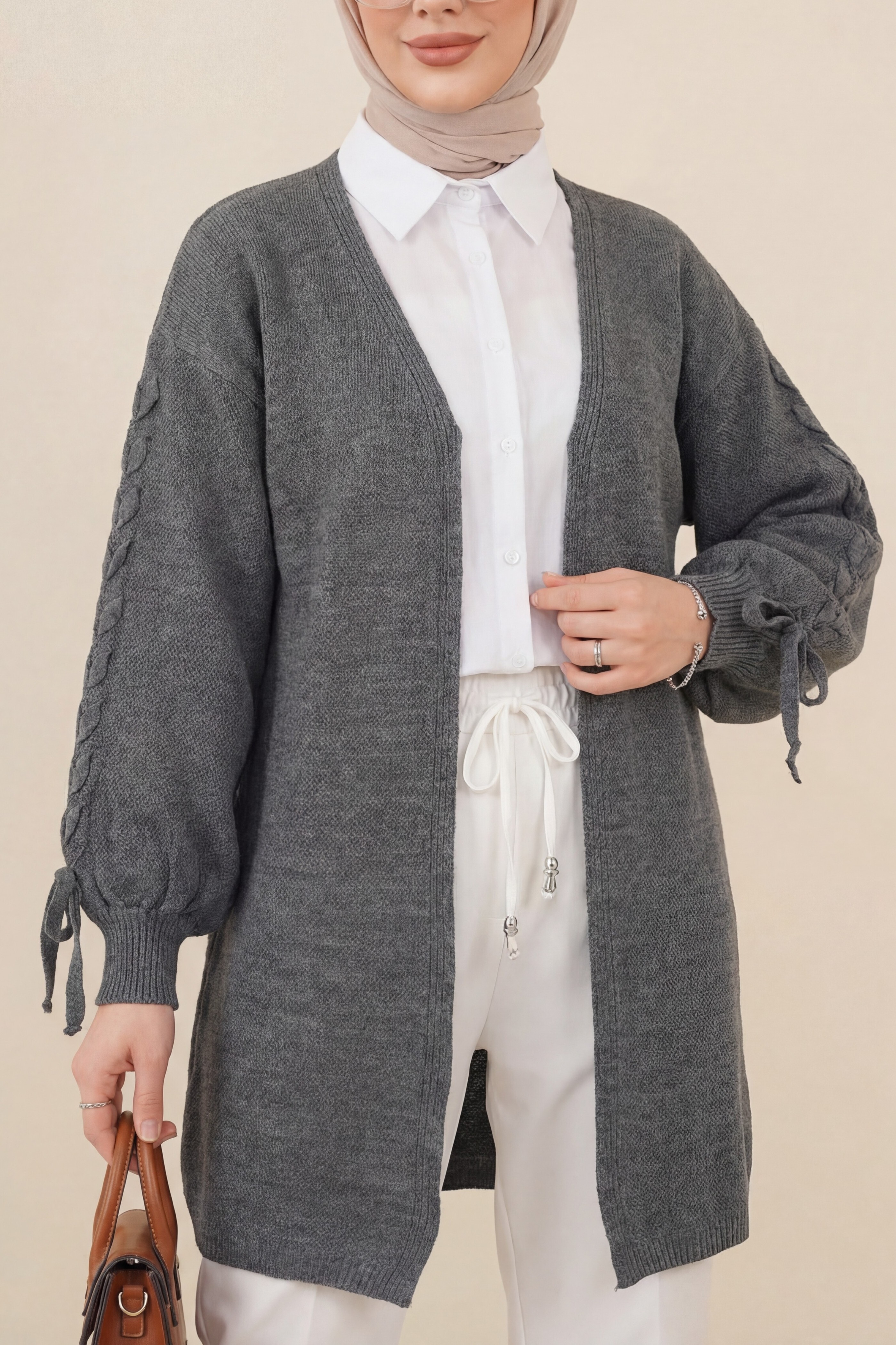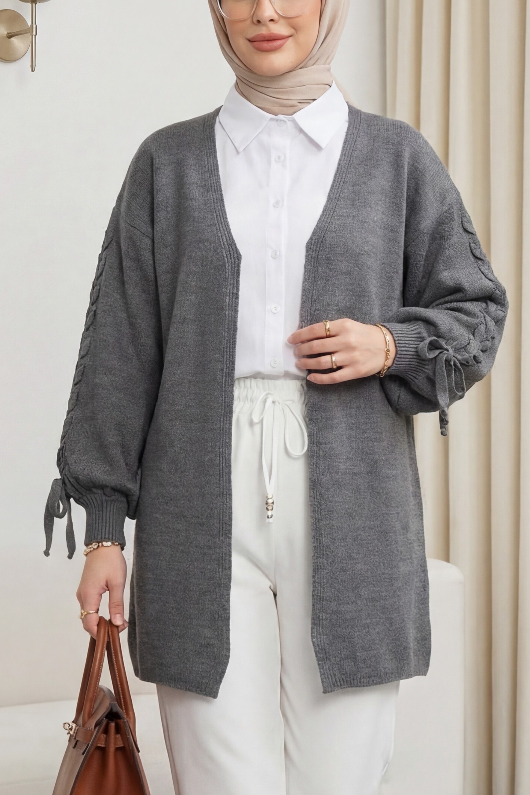 كارديجان محبوك فضفاض بأكمام مضفرة -لون مدخن